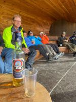 Das vor uns liegende Hochtal erstreckt sich endlos weit in die Ferne. Diese Naturfläche ist bekannt für den Aufenthalt von Moschusochsen. Intensiv suchen wir die Fläche ab mit bloßem Auge und mit Ferngläsern, wir können in der Ferne einzelne Schwarze große Punkte erkennen aber nicht sicher sagen ob es die gesuchten Ochsen sind. In der näheren Sichtweite halten sich leider keine der Tiere auf. Jürgen hat ein kleines Trostpflaster dabei und schenkt für uns alle einen Aquavit aus, den wir gemeinsam auf diesen rauen, windigen, nordischen Naturtag trinken. Anschließend packen wir alles zusammen und kehren den Berg hinab ziemlich schnell zurück zum Bus und nach wenigen Minuten sind wir auch schon an unserem Hotel angekommen. Nach einer kurzen Dusche treffen wir uns alle wieder zum Abendbuffet das ebenso abwechslungsreich wie am Tag zuvor uns einen schönen Tagesausklang beschert.