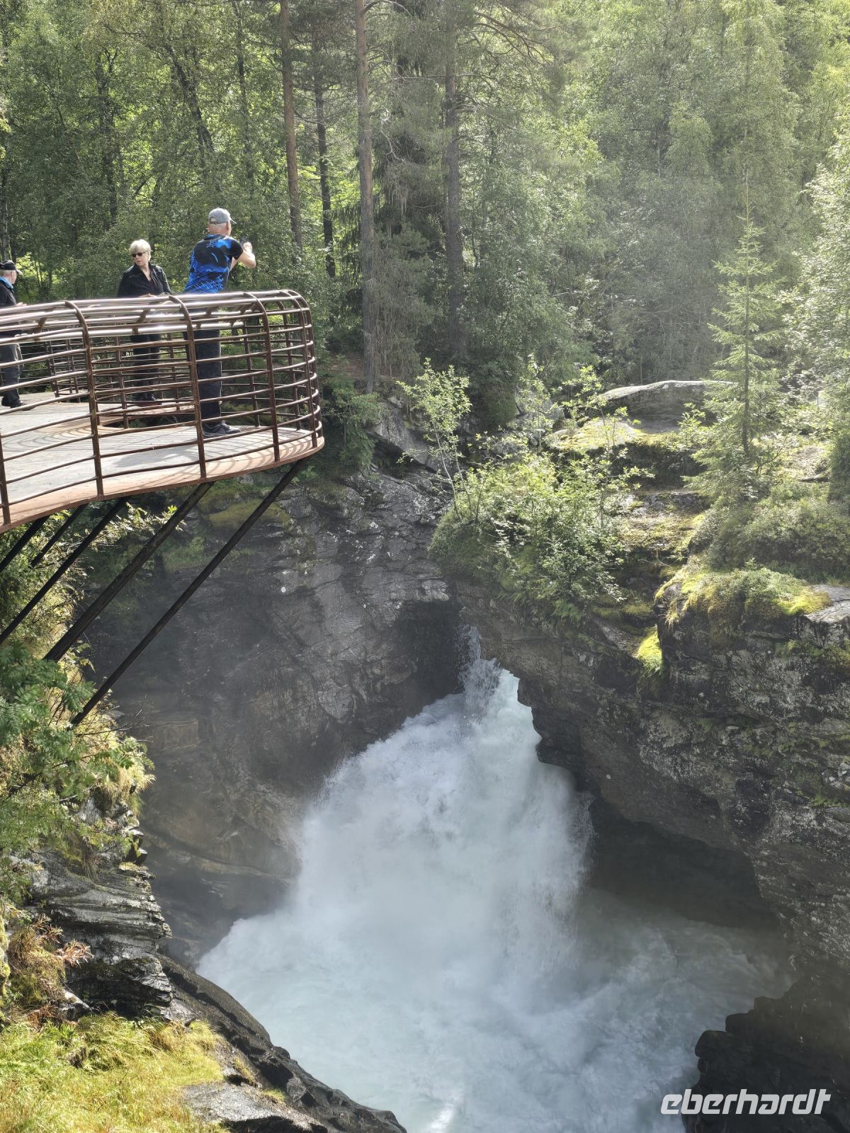 Wir nehmen dieselbe Strecke mit dem Bus wieder zurück und machen den nächsten Stopp bei der Gudbrandsjuvet, eine enge Schlucht durch die sich der Fluss Valdolla zwängt und hier die tatsächliche Gewalt seines Wassers demonstriert.
