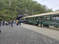 Die Fahrt geht weiter und wir genießen die Atmosphäre in den traditionellen Wagen, mit Blüschstoffen bezogenen Sitzen und lassen uns, dieses Mal ohne große Mühen, durch die Bergwelt kutschieren.