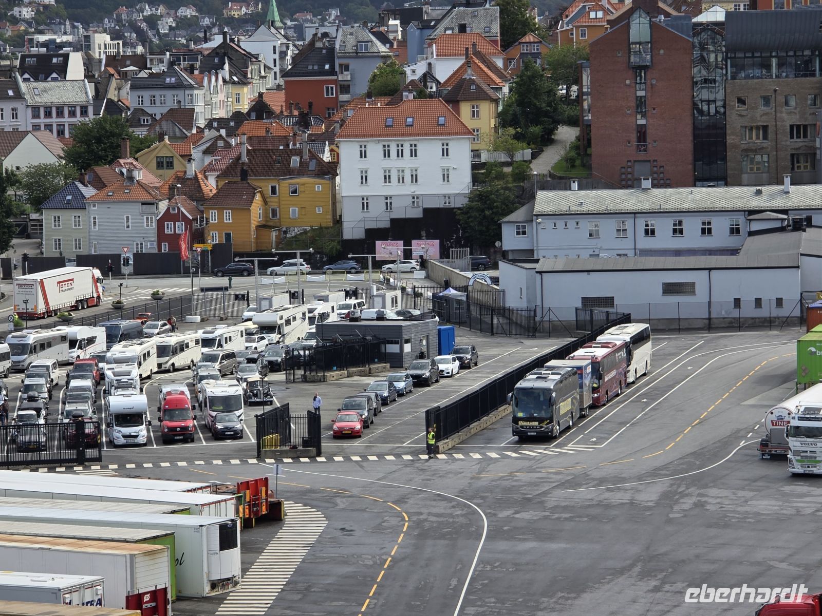 Was an diesem Morgen sind wir fast schon euphorisch. Endlich ein Tag mit Sonne und kein Regen Wir können es kaum glauben. Also machen wir uns nach dem Frühstück sofort auf den Weg die Stadt Bergen nochmal zu besuchen bei freiem Blick und trockenen Straßen. Alex lässt uns wieder bei den Strandkaien aussteigen, mittlerweile kennen wir uns etwas aus in der Stadt, und jeder macht sich auf eigene Faust für einen zweiten Besuch der Innenstadt auf den Weg.