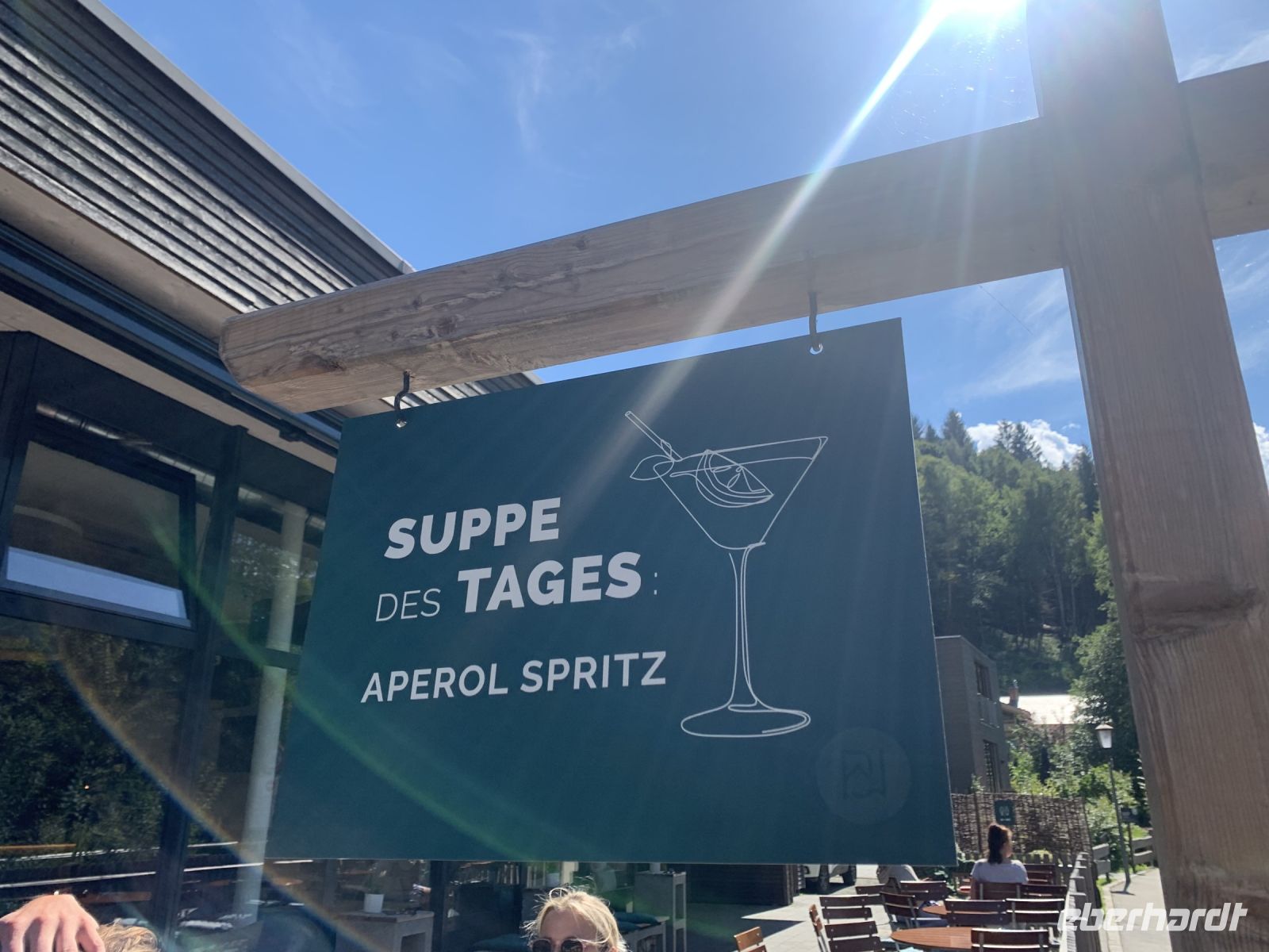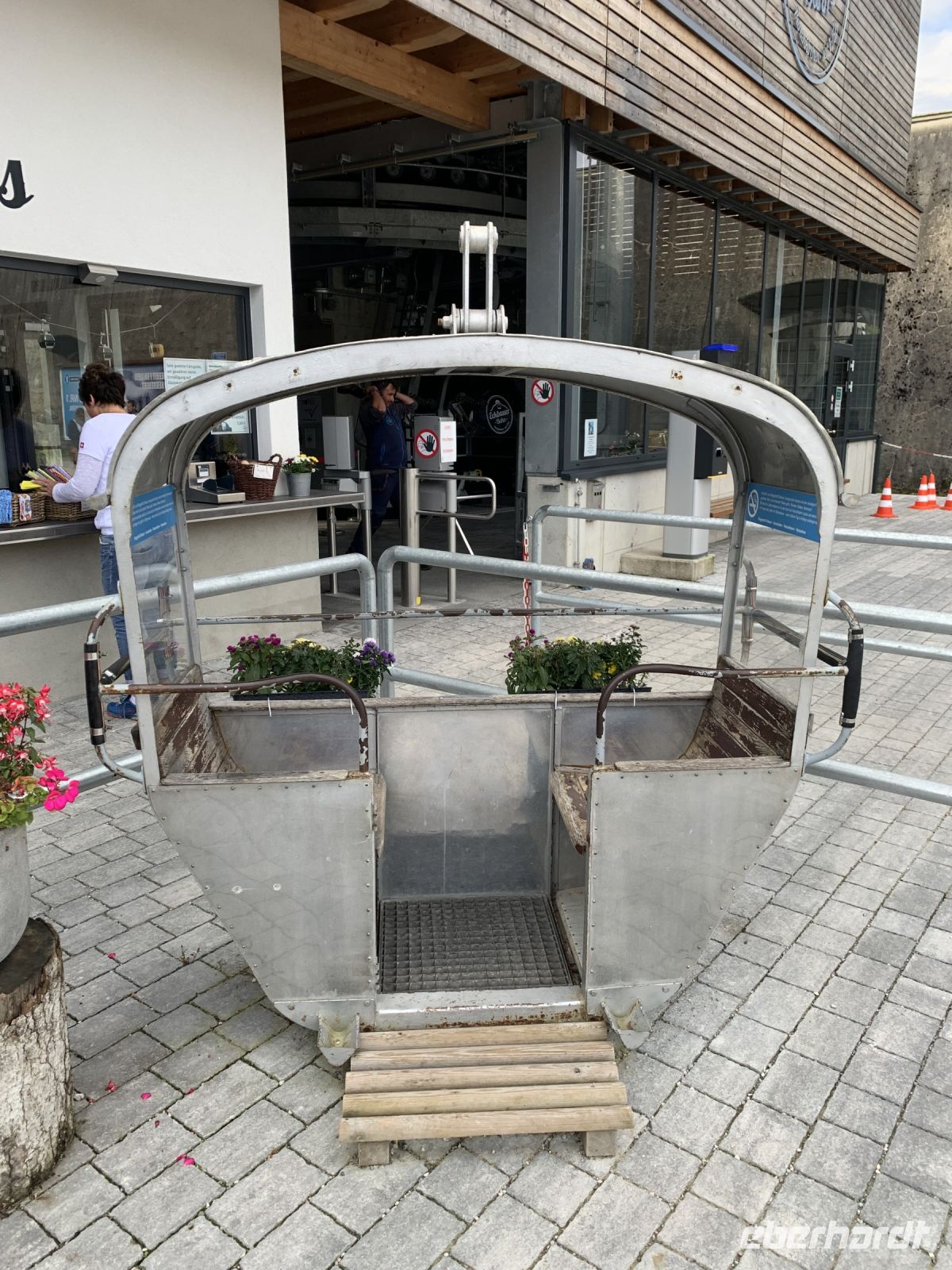 Wir spazieren die wenigen Meter vom Hotel erneut zu den Olympia-Schanzen und zur Eckbauerbahn. Ganz ruhig schweben wir in den modernen Gondeln hinauf auf den Eckbauer (1.237 Meter) und genießen dabei bereits die grandiose Aussicht auf die Bergwelt rund um Garmisch-Partenkirchen. Die Zugspitze ist etwas in den Wolken, aber schon allein das Wetterstein-Panorama ist überwältigend.