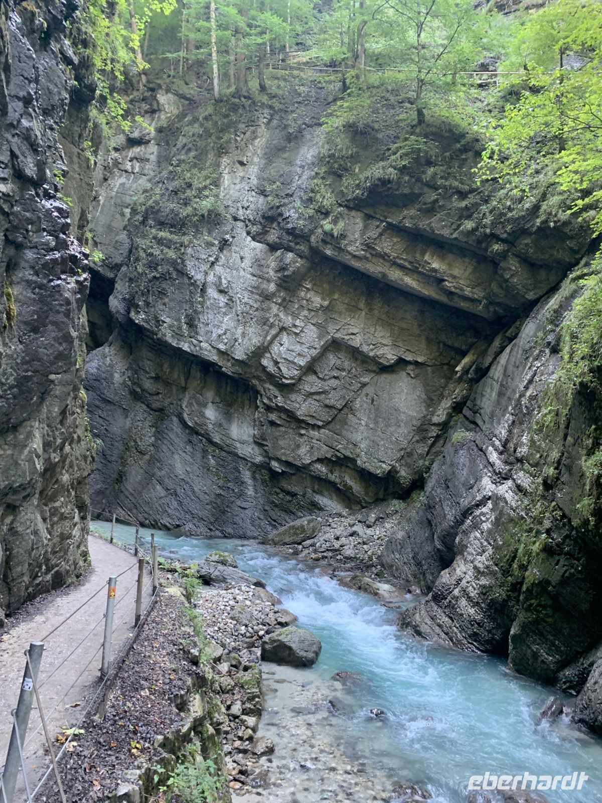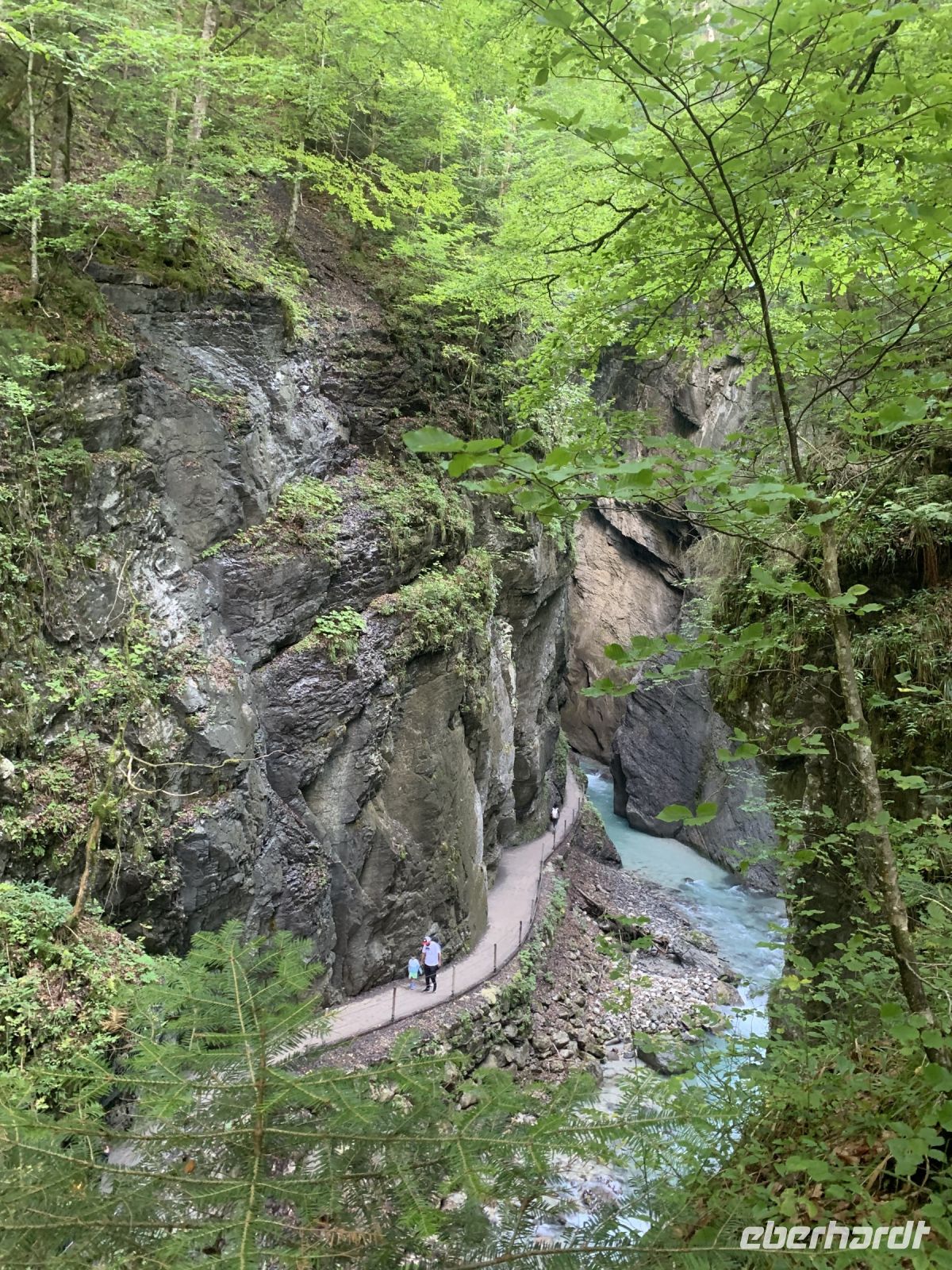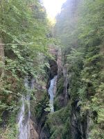 Die Zimmer sind glücklicherweise schon bereit zum Check-In und somit können wir uns ein bisschen frisch machen. Gemeinsam unternehmen wir eine erste kleine Wanderung vorbei an den Olympia-Schanzen zur gigantischen Partnachklamm. Sie ist eine 700 Meter lange und von der Partnach teilweise über 80 Meter tief eingeschnittene Felsenschlucht im Reintal, die bereits 1912 touristisch erschlossen und zum Naturdenkmal ernannt wurde. Unsere Wanderung führt uns hinauf zur Kaiserschmarrn-Alm und über die Eiserne Brücke wieder zurück in die Klamm und schließlich zum Hotel.