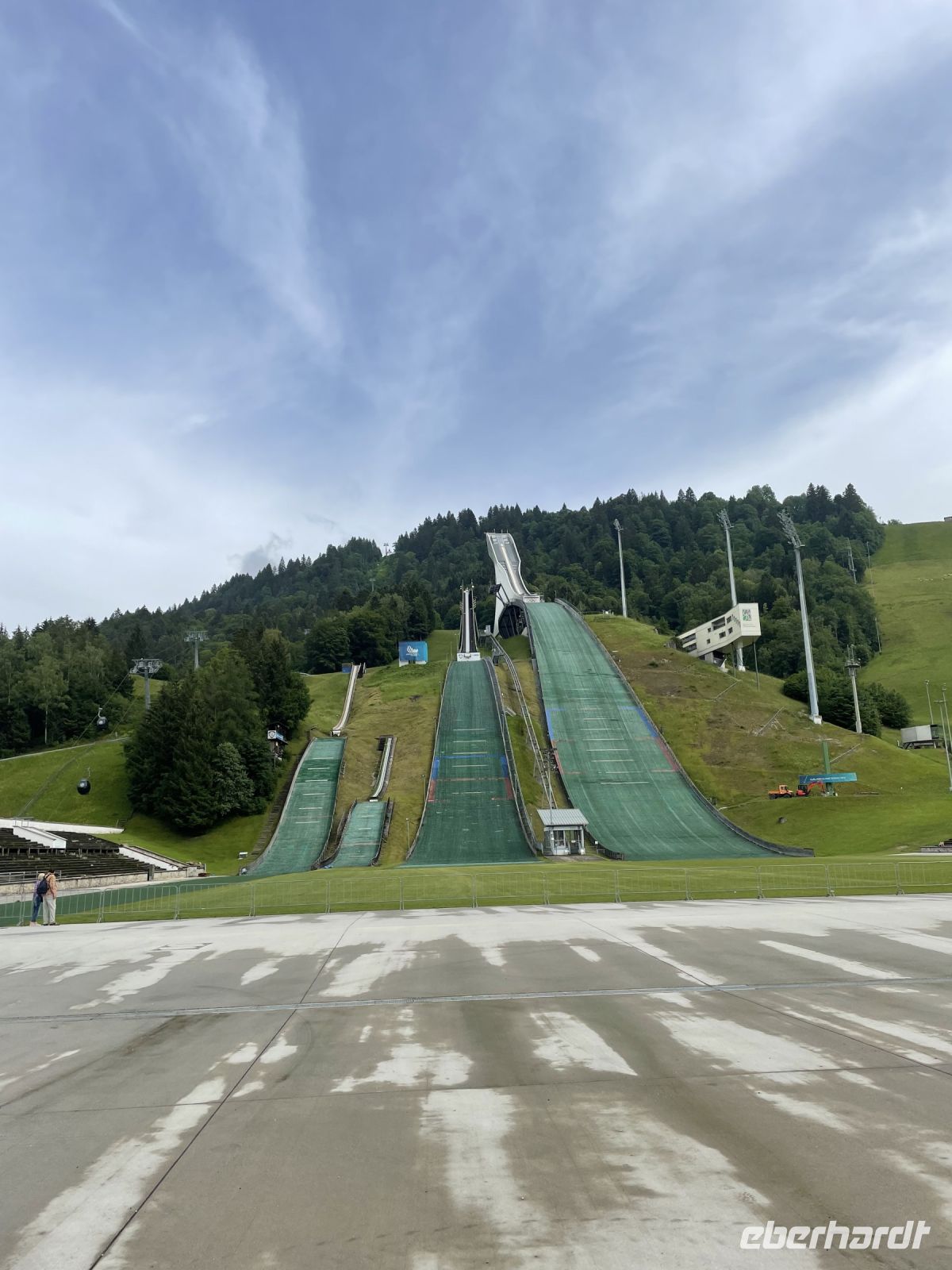 Gegen 13 Uhr ist unsere kleine Wandergruppe mit nur 7 Gästen, unserem Bergführer Alpenrudi und mir komplett. Im Biergarten des Hotels gibt es eine kleine Erfrischung und dann starten wir gemeinsam zu einer ersten kleinen Aufwärmrunde in die Partnachklamm unweit der Olympiaschanzen und unserem Hotel.