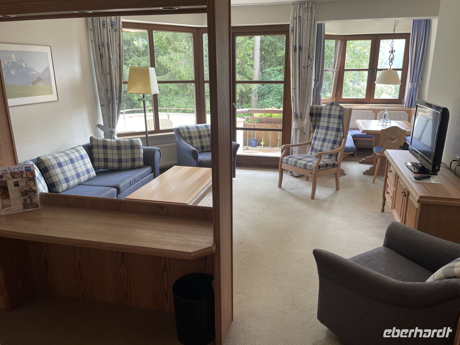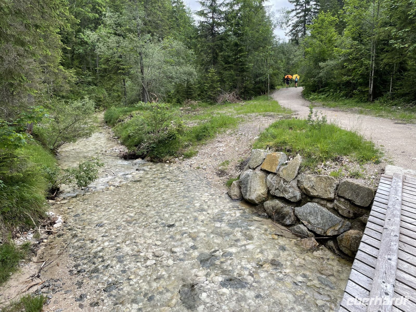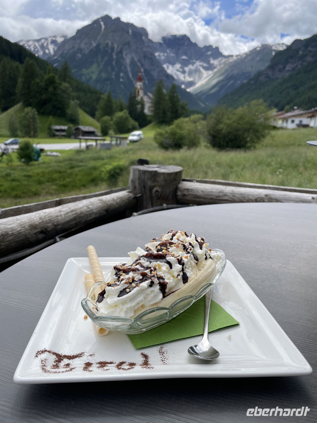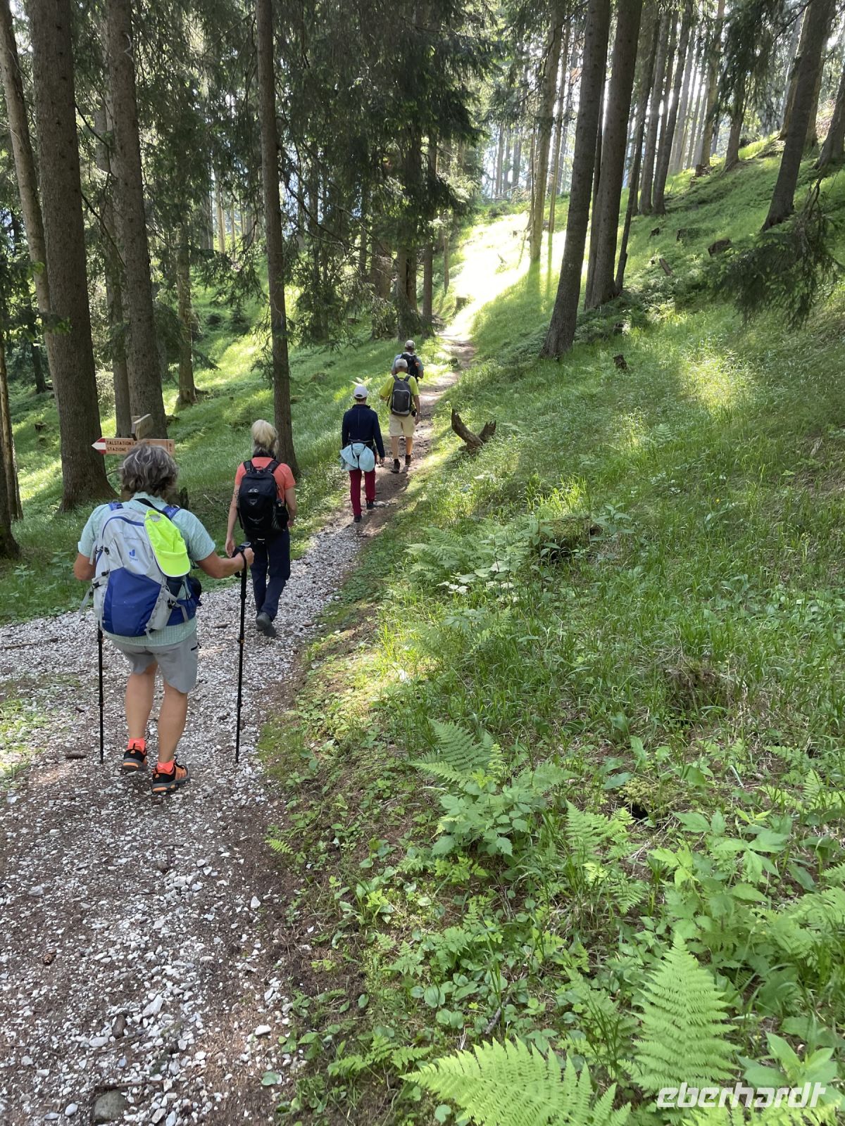 Leider ist der Weg hinauf zur Kaiserschnarrnalm gesperrt, sodass wir nur noch ein Stück ins Tal hineingehen; zurück geht’s auf dem gleichen Weg. Noch ein Kaffee in einem Biergarten und anschließend checken wir im Hotel ein.