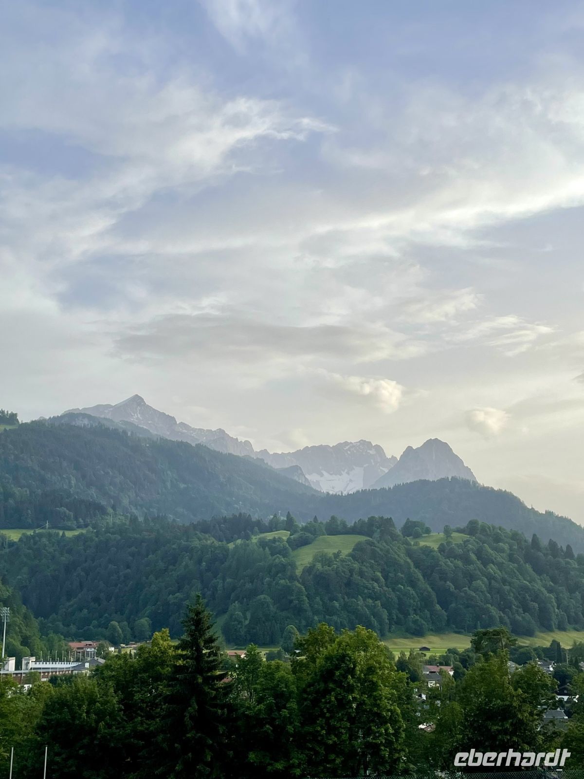 Wir starten gemütlich in den Tag: mit einem vielfältigen Frühstück und mit der Seilbahnfahrt auf den Eckbauer - wir wollen es ja zum Start unserer Alpenüberquerung nicht übertreiben.