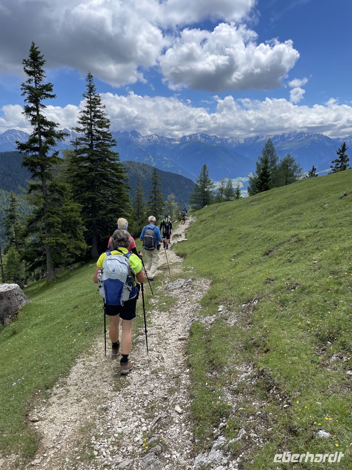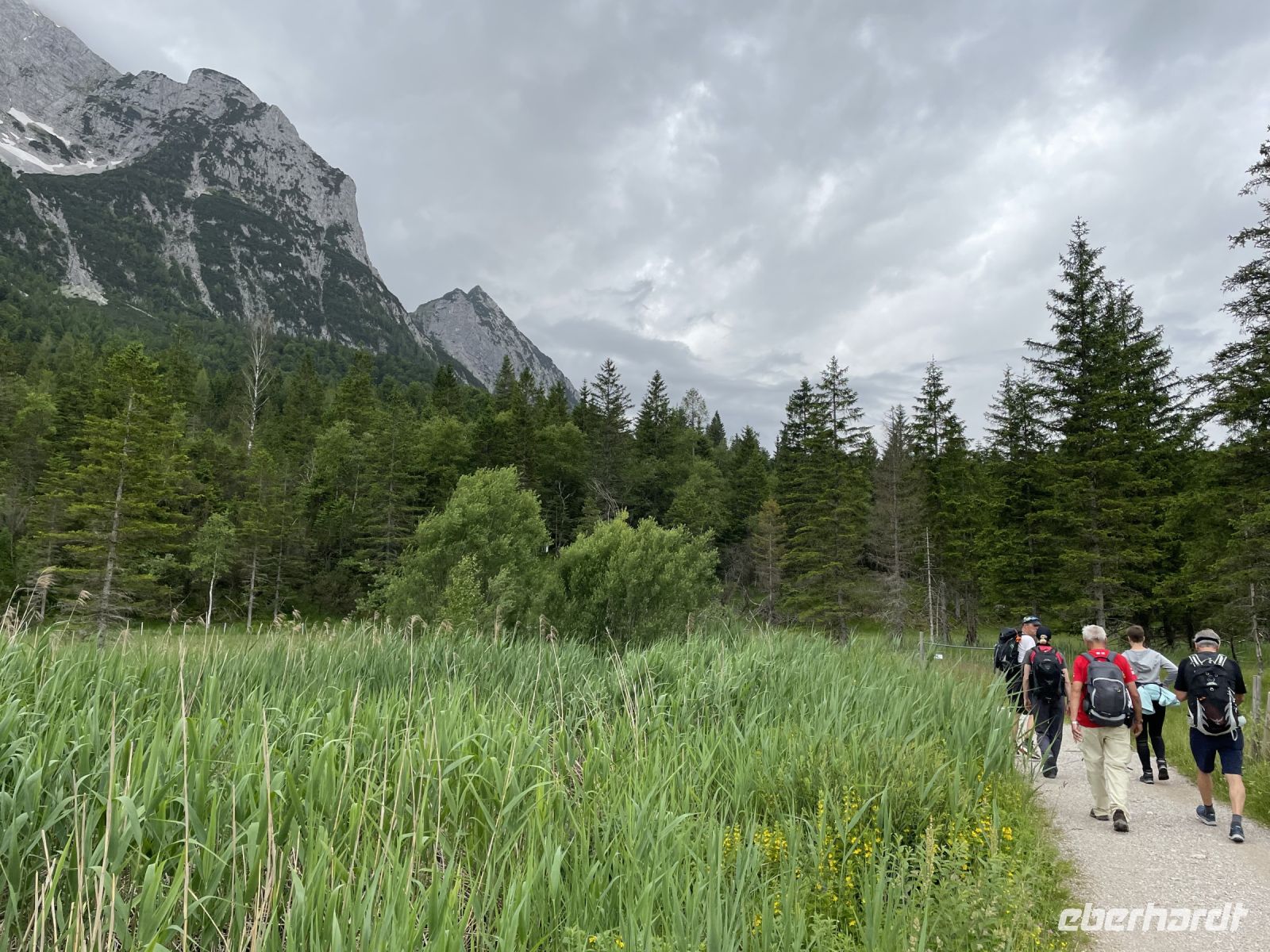 Entlang eines wildromantischen Baches wandern wir gemütlich bis zum Ferchensee und umrunden diesen teilweise. Da das Gasthaus hier heute Ruhetag hat, gehen wir weiter bis zum Lautersee und kehren hier urig ein. Immer die mächtigen Berge im Blick stimmt und diese Tour auf unser Vorhaben der kommenden Tage ein. Für den Abstieg nach Mittenwald nutzen wir den Weg durch das schöne Laintal. In Mittenwald haben wir dann noch etwas Zeit zum Bummeln und Schlemmen, bevor wir mit einem Transfer nach Seefeld/Tirol gebracht werden.