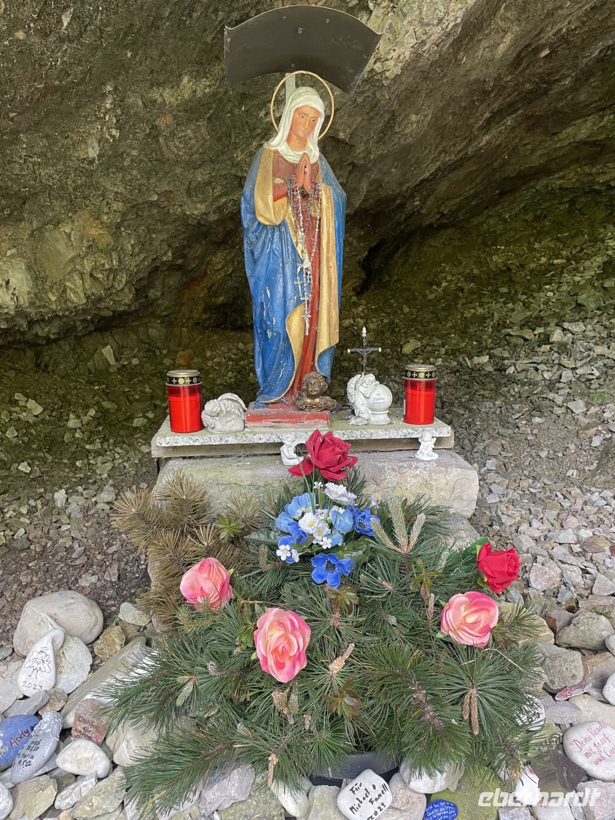 Bei der Gastgeberfamilie Weichinger geht es uns richtig gut. Wir möchten eigentlich gar nicht weg – aber wir haben noch viel vor. Pünktlich 9 Uhr stehen wir an der Serles-Seilbahn bereits und sind die ersten Wanderer, die sich ab der Bergstation auf den Weg machen. Immer mit dem Blick auf den 2.717 Meter hohen Serles – von Goethe „der Hochaltar der Alpen“ genannt, wandern wir bei Traumwetter in Richtung Maria Waldrast. An diesem Wallfahrtskloster des Servitenordens machen wir eine Rast, füllen unsere Trinkflaschen mit dem wohl besten und gesündesten Wasser der Welt auf und Rudi spricht sein tägliches Morgengebet.