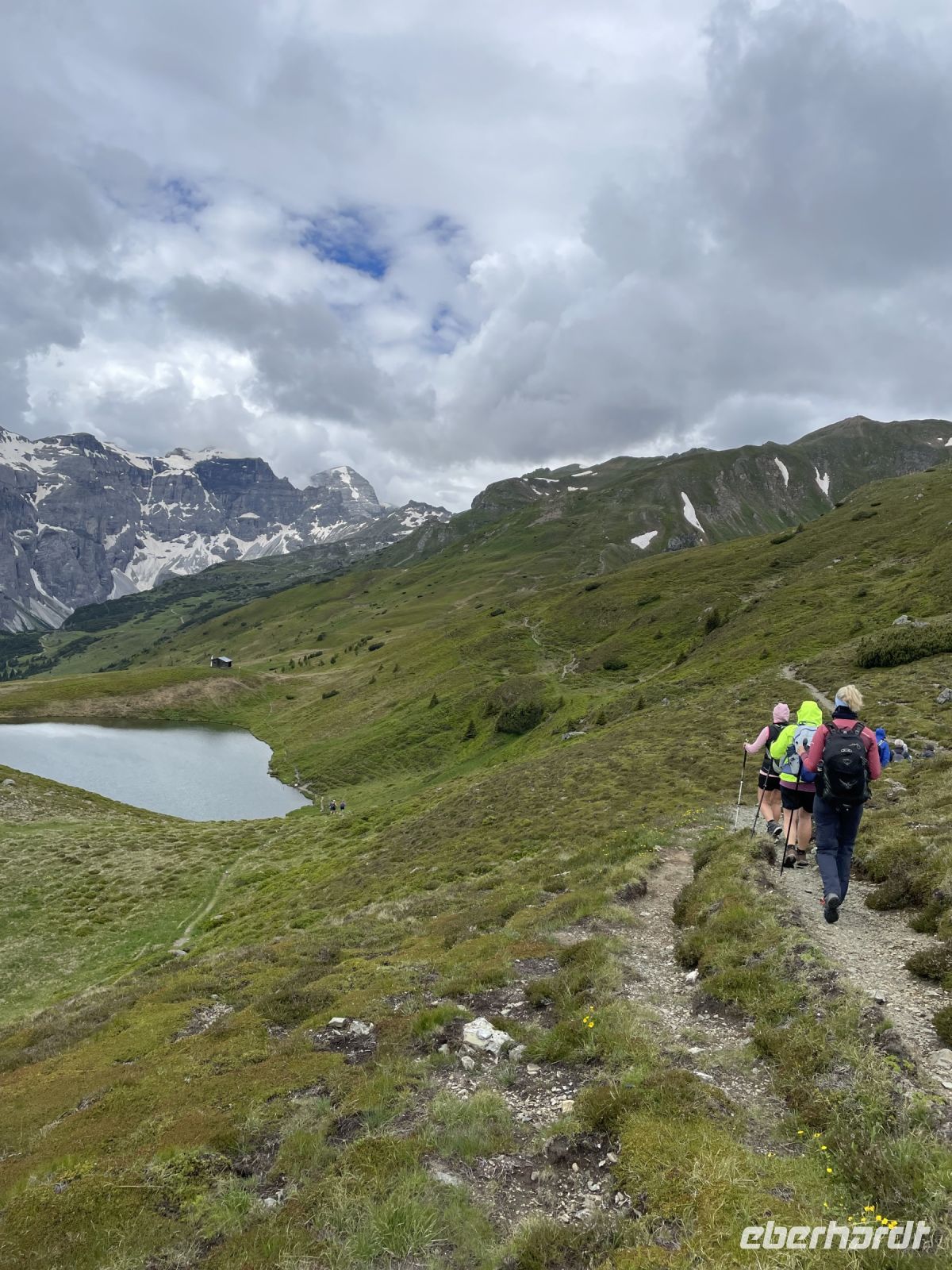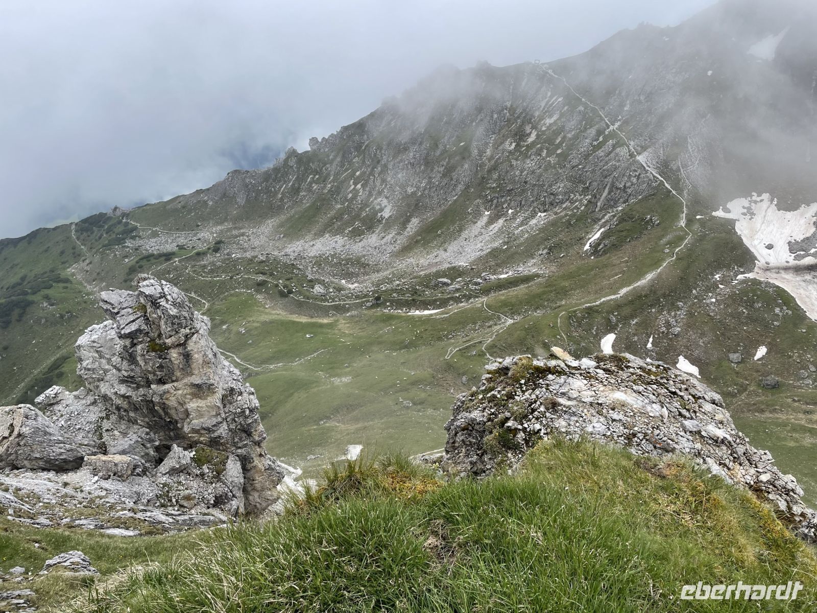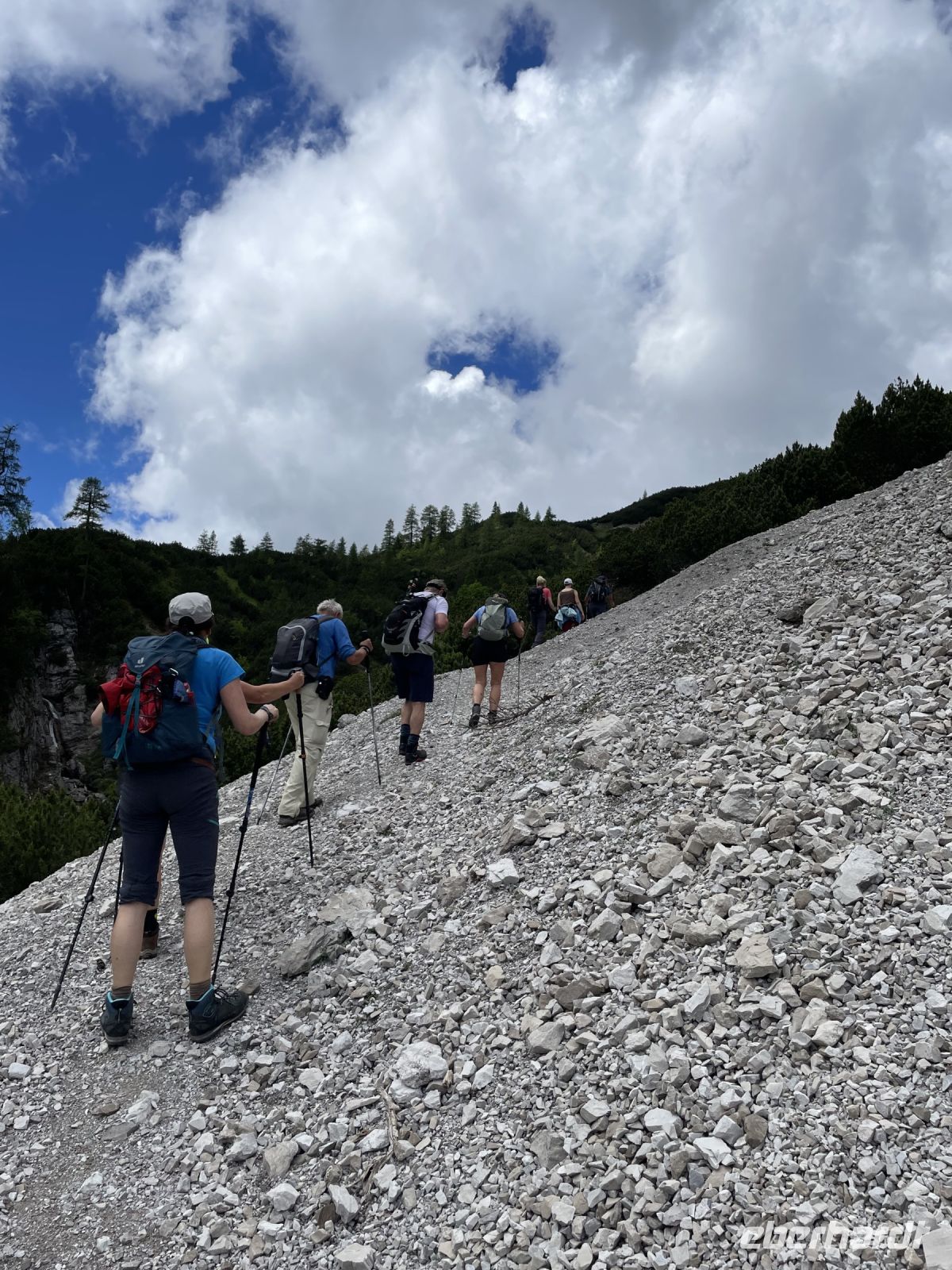 Der Abstieg fordert unsere volle Aufmerksamkeit und Trittsicherheit. Es geht über Geröllfelder, immer im Bann der mächtigen Berge um uns herum.