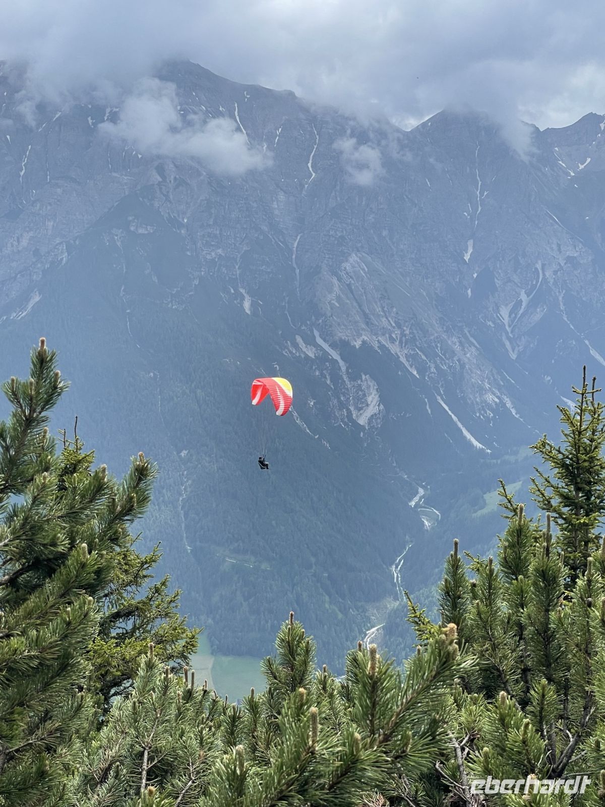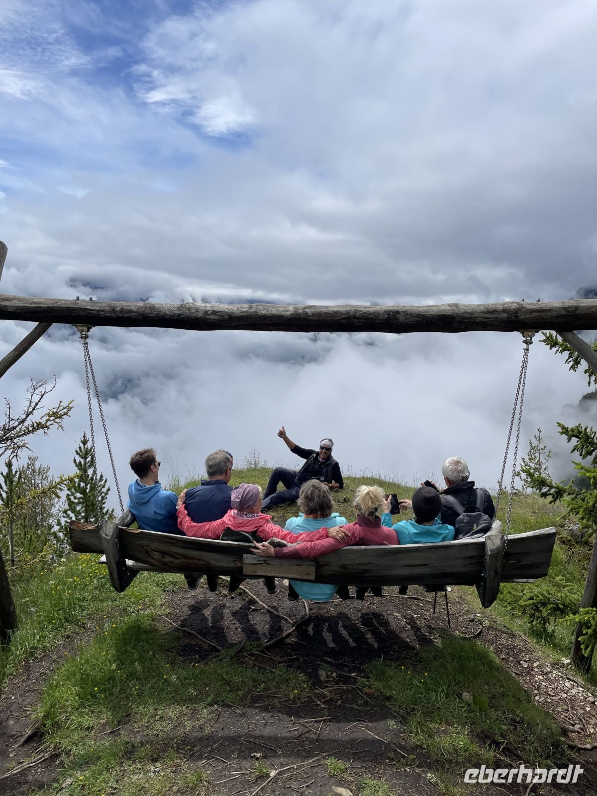 Über einen Panoramaweg und fast auf Augenhöhe mit den zahlreichen Gleitschirmfliegern erreichen wir wieder die Bergstation der Kreuzjochbahn und schweben hinunter ins Tal. Mit dem öffentlichen Bus geht es wieder zurück zum Hotel, wo wir pünktlich zu Kaffee und Kuchen eintreffen.