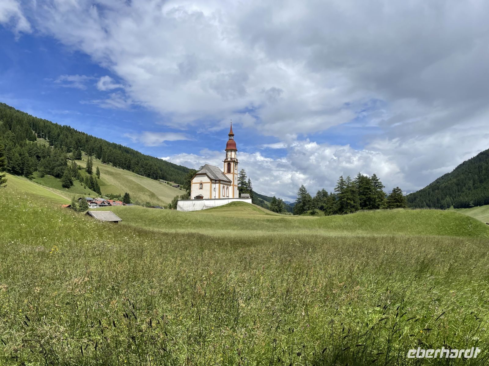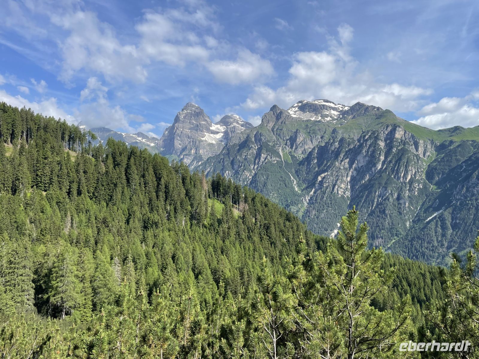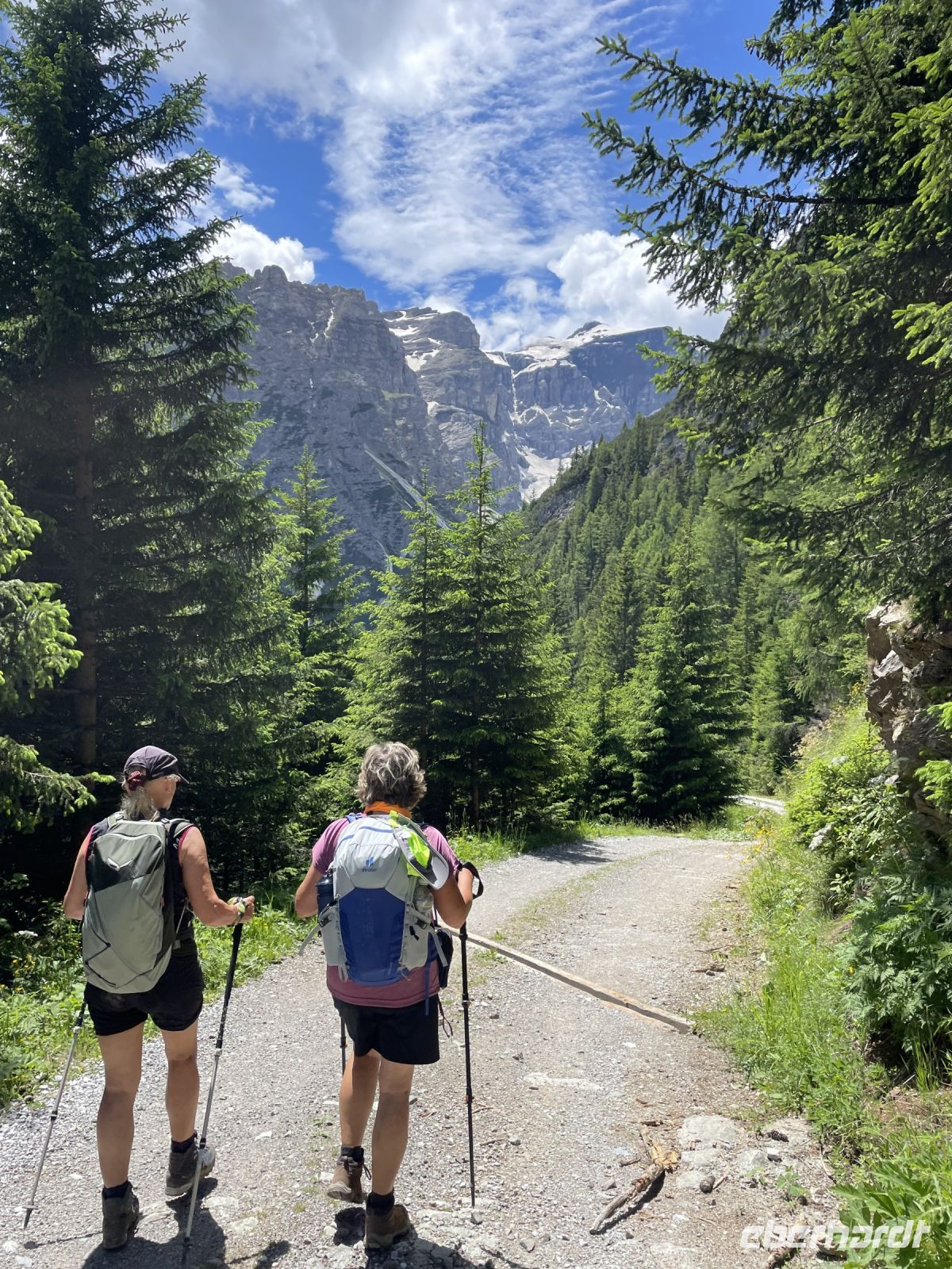 Bevor wir heute zum letzten Mal die Wanderschuhe schnüren, feiern wir den Geburtstag unserer lieben Susi und auch den von Bergführer Rudi. Standesgemäß gibt es eine große Torte zum Frühstück. Unser Hotel Bergkristall liegt ideal – direkt an der Talstation der Ladurns Seilbahn, die uns hinauf zur Ladurner Hütte bringt. Der Tag verspricht super zu werden und so genießen wir schon während der Auffahrt ein grandioses Bergpanorama.