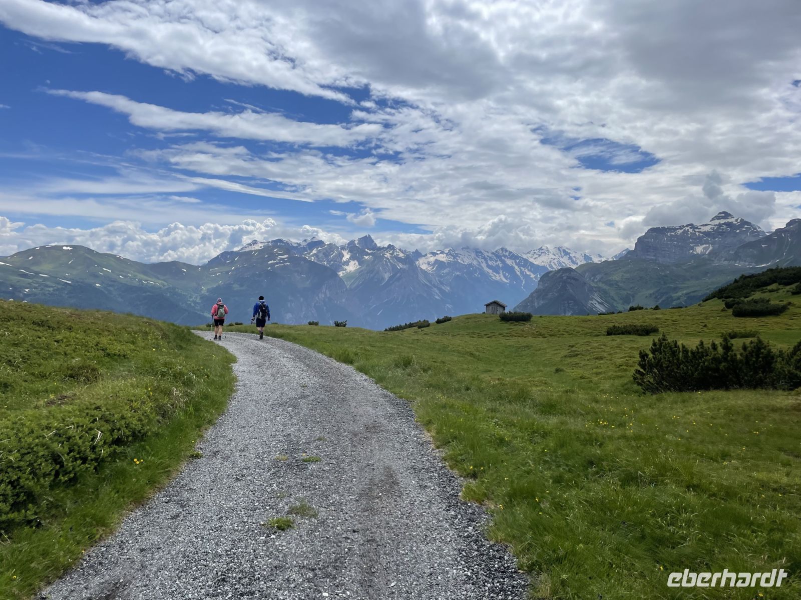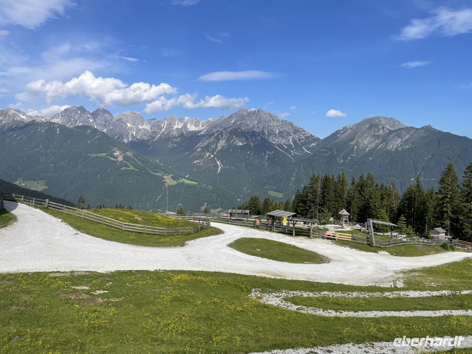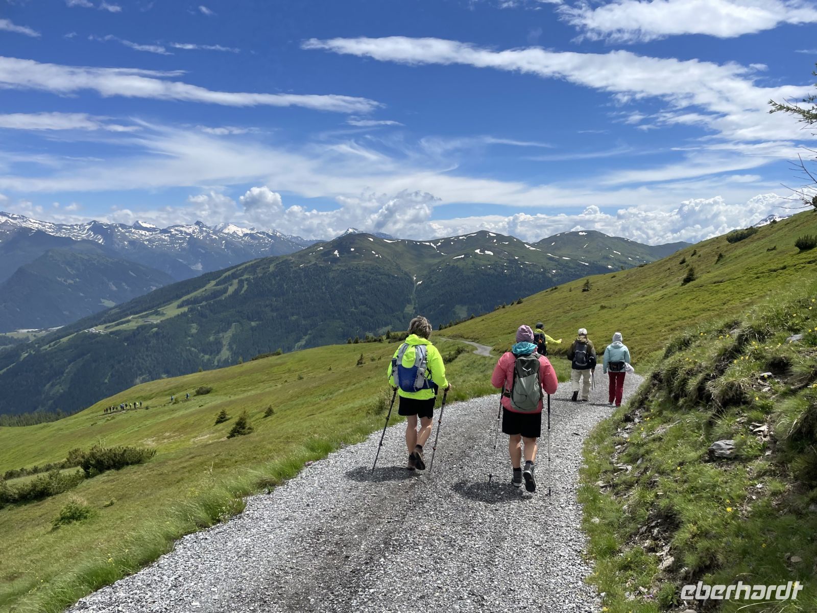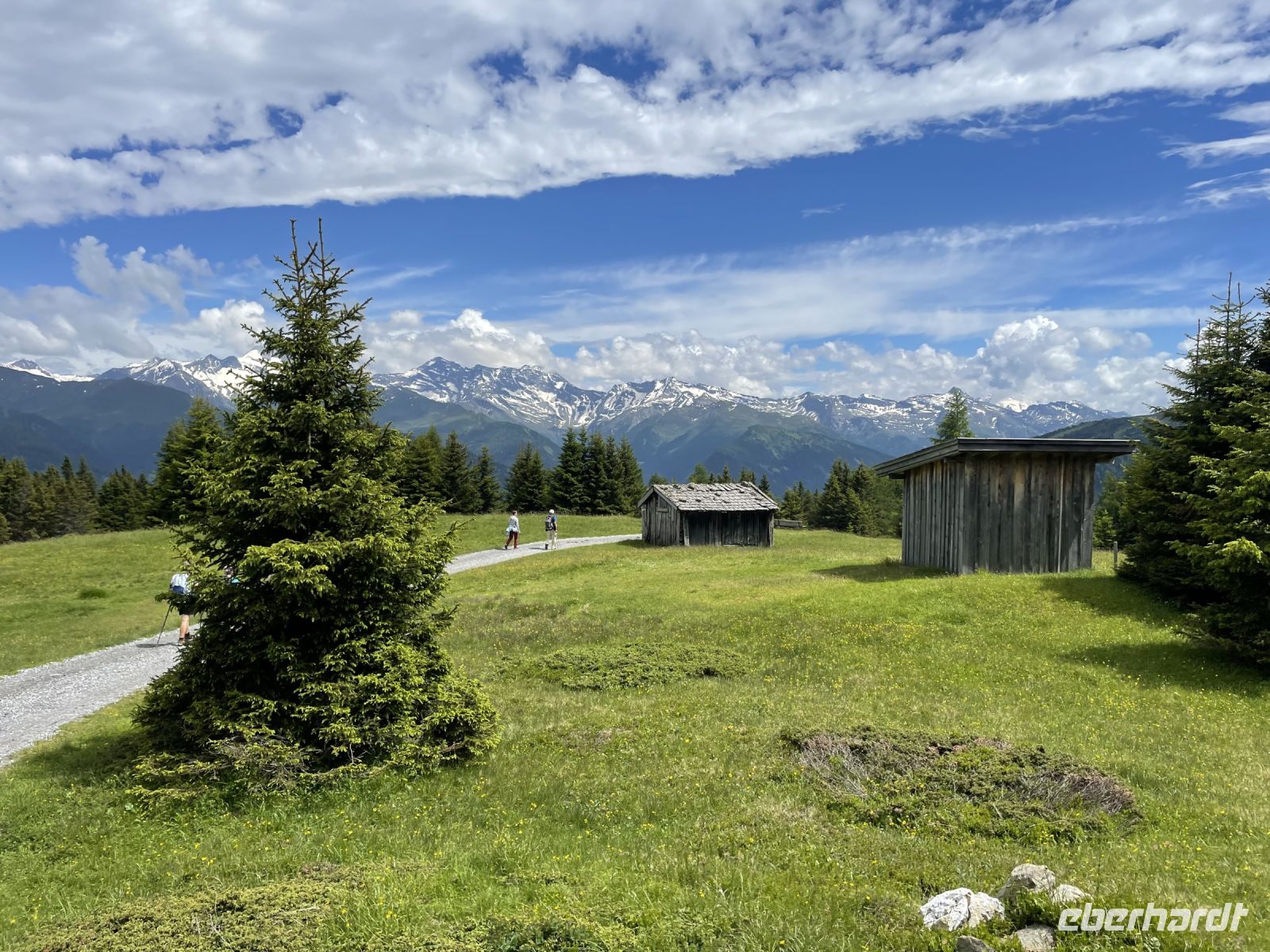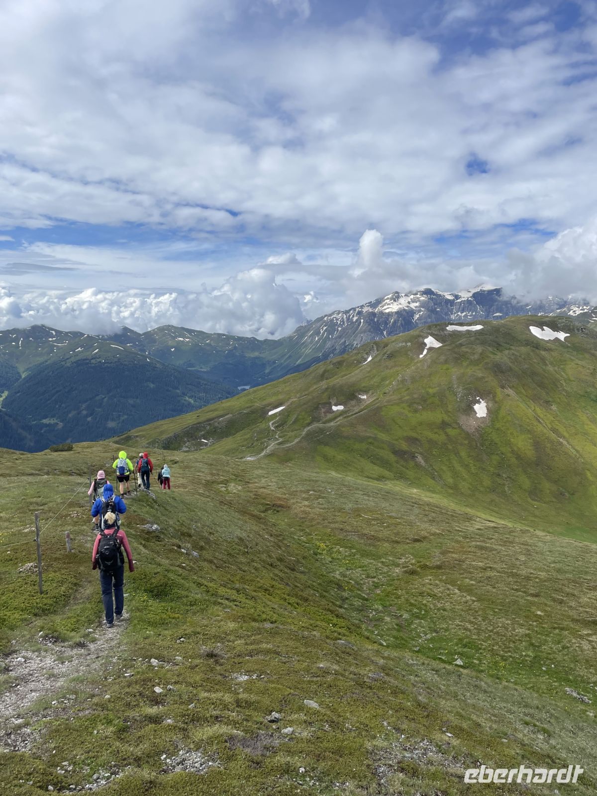 Wir spazieren zur Bergeralmbahn und schweben gemütlich hinauf zur Bergstation. Schon hier haben wir wieder eine grandiose Sicht und können hinüber zur Blaserhütte und den Blumenberg Blaser schauen. Nach einem kurzen Aufstieg haben wir schon den ersten Gipfel erreicht - das Nösslachjoch (2.221 Meter). Wir wandern über herrlich satte Almwiesen und inmitten der unberührten Natur bis zum Eggerberg (2.280 Meter), unser zweiter Gipfel heute.