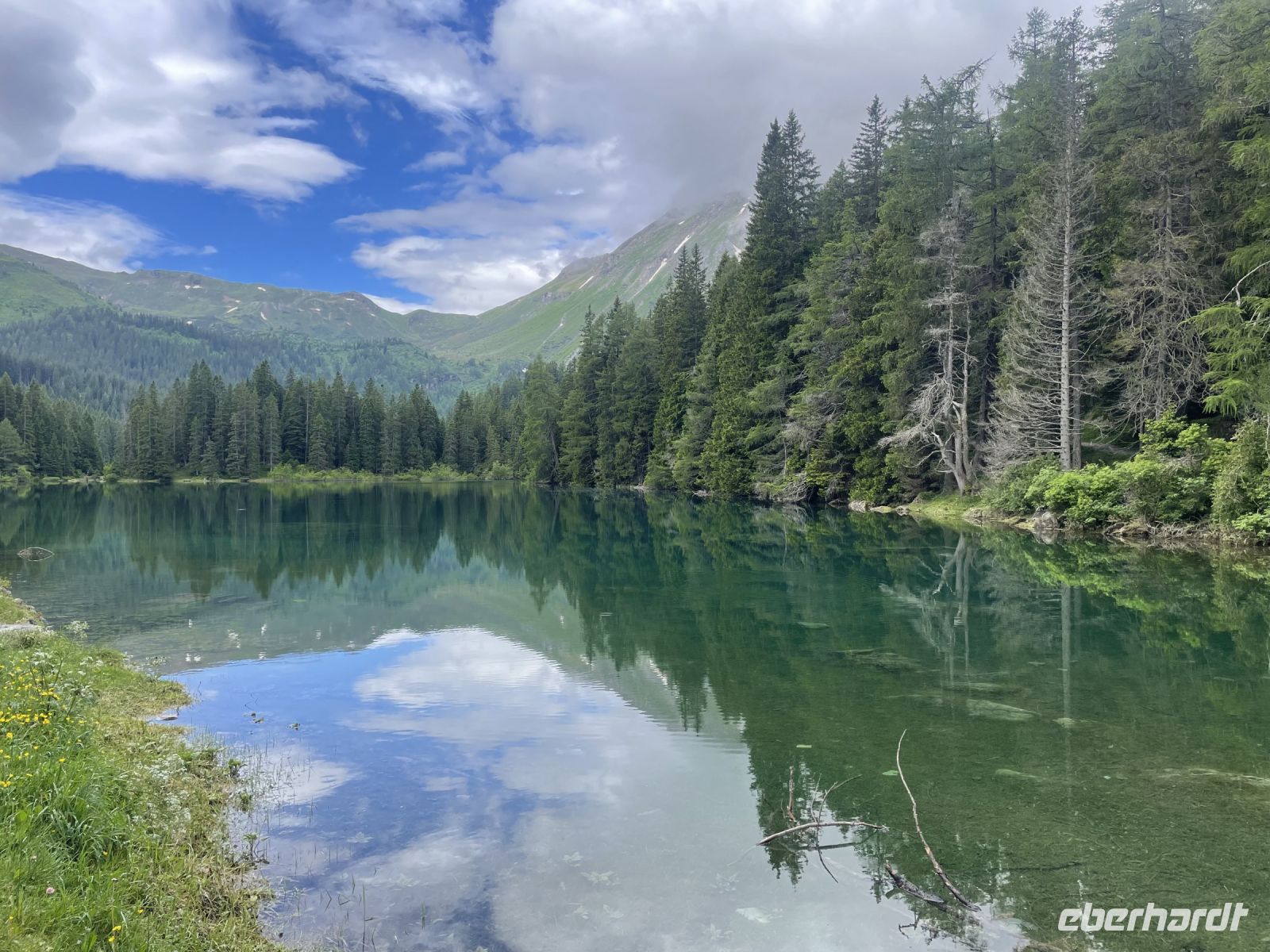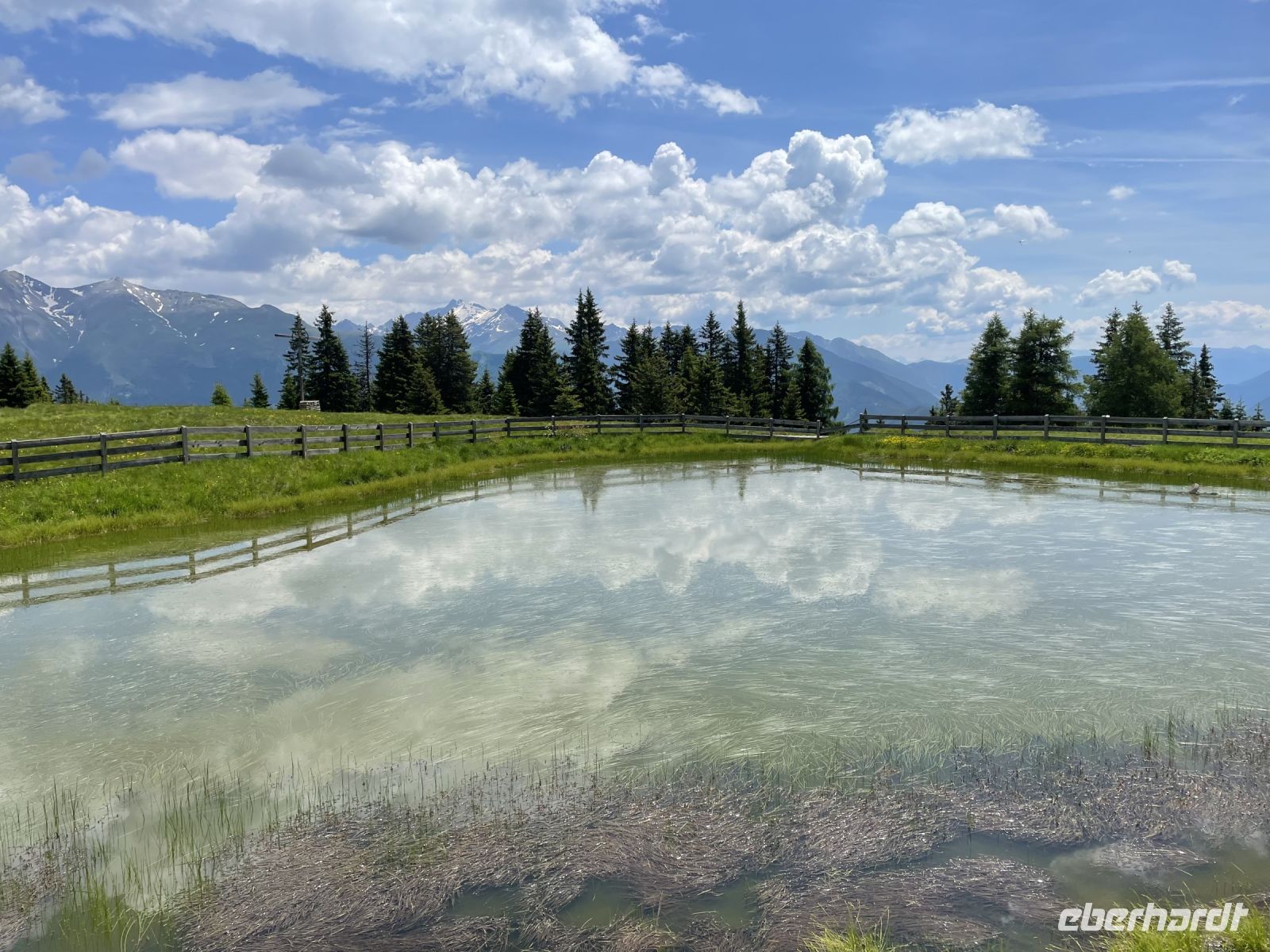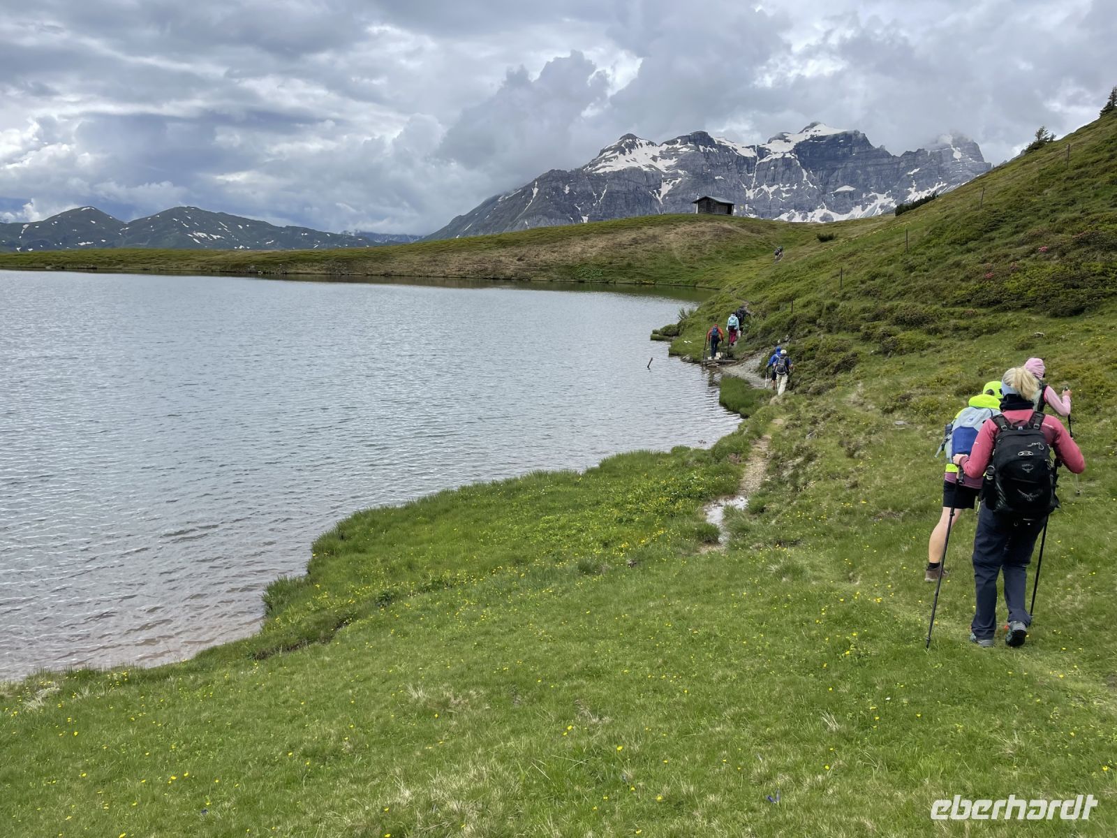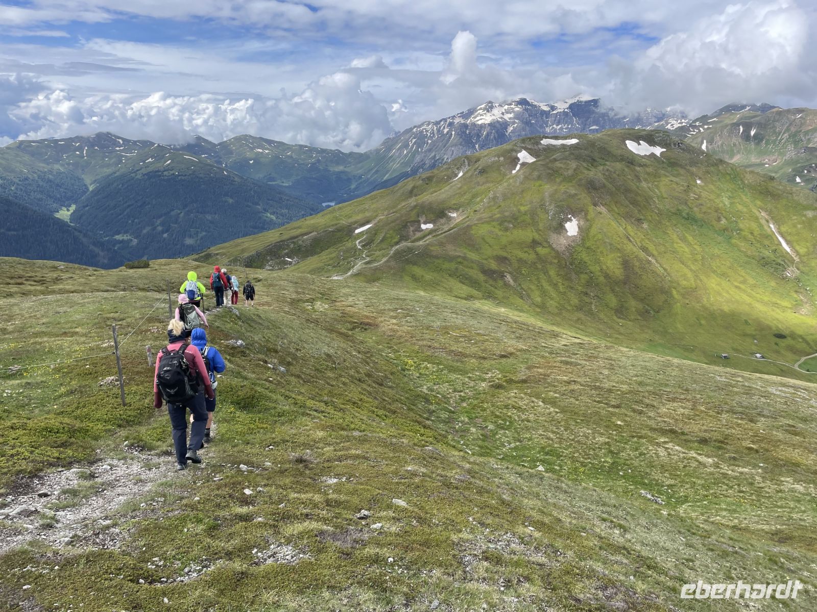 Über das Eggerjoch (2.132 Meter) steigen wir steil hinauf zum Leitnerberg (2.309 Meter), der höchste Punkt unserer gesamten Tour. Es pfeift ein frischer Wind, daher steigen wir nun hinab zum malerischen Lichtsee. Dieser liegt in einer Mulde unterhalb des Trunajochs auf ca. 2.110 Metern Höhe und besitzt eine hervorragende Wasserqualität. Nun kommt pünktlich zur Mittagsjause auch die Sonne raus und wir genießen die herrliche Natur, die traumhaften Ausblicke und die wärmenden Sonnenstrahlen.