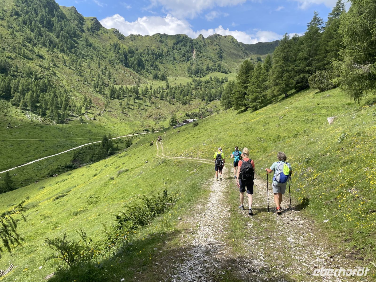 Ab hier erfolgt der Abstieg zur Pfarrachalm, in der wir einkehren und eine zünftige Jause einnehmen.