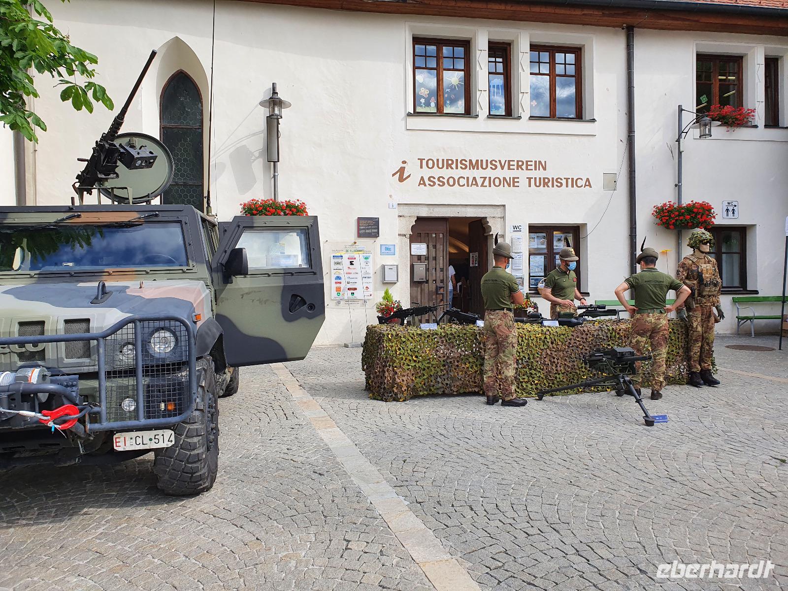 Jede Reise geht einmal zu Ende und heute nun war es auch für uns soweit. Beim Frühstück verabschiedeten wir uns von Steffie, unserer Wanderleiterin und wir dankten ihr für ihre fürsorgliche Betreuung und gute Organisation der einzelnen Touren. Nach dem ausgiebigen Frühstück machten sich einige Gäste auf den Weg hinunter nach Sterzing. Und da wartete noch eine Überraschung auf uns. Die italienischen Gebirgsjäger präsentierten sich mit ihren Fahrzeugen und Waffen und es gab einen Musikumzug und anschliessend ein Platzkonzert am Zwölferturm. Wir genossen das Ambiente, kauften noch ein wenig ein und spazierten dann wieder hinauf zu unserem Hotel. Dort wurden wir mittags abgeholt und zum Wipptaler Hof an der Brennerautobahn gebracht. Von dort ging es mit dem Eberhardtbus zusammen mit Urlaubsgästen vom Gardasee und aus dem Stubaital nach Hause. Unsere beiden Fahrer waren bereit, zurück vorbei am Achensee und Tegernsee zu fahren. So konnten wir Wanderer unsere Strecke noch einmal geniessen und ein Ehepaar direkt zum parkenden Auto gebracht werden. Das war ein wunderbarer Abschluss, bei Sonnenschein diese zauberhafte Landschaft noch einmal vom Bus aus zu sehen. Ab Holzkirchen fuhren wir auf der Autobahn und ganz pünktlich erfolgen die Ausstiege und die Haustürtransfere.