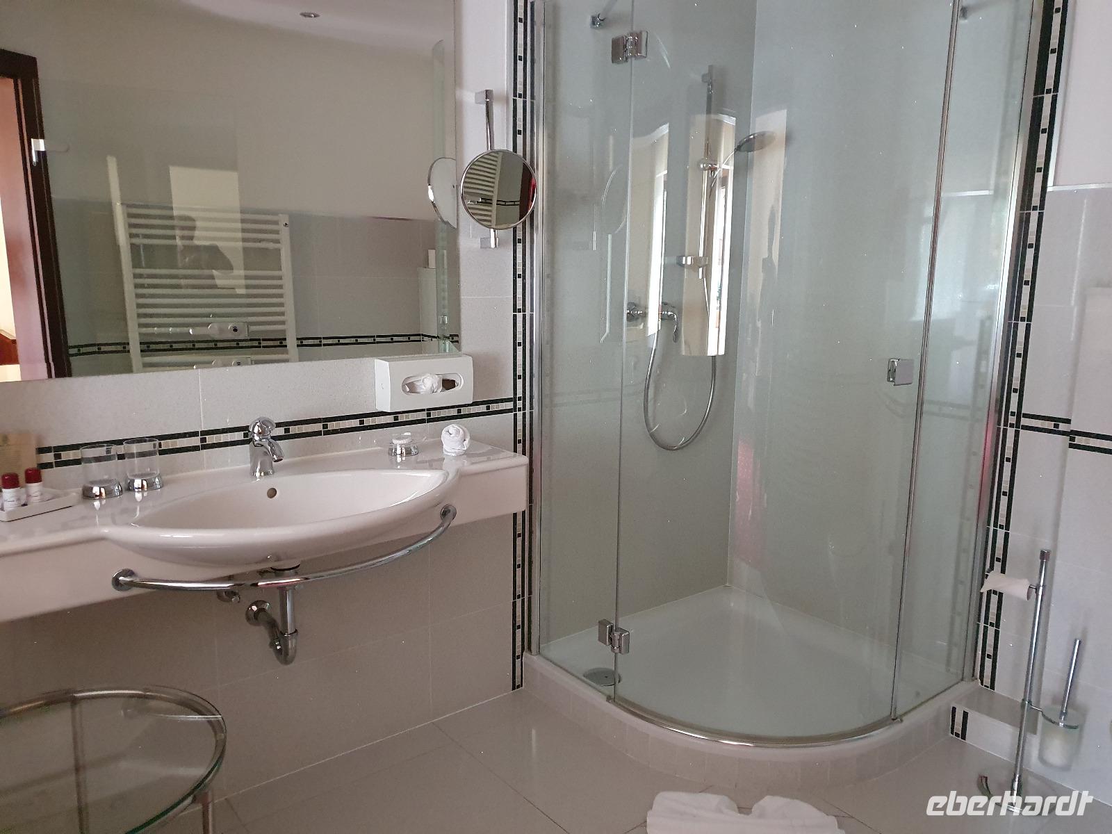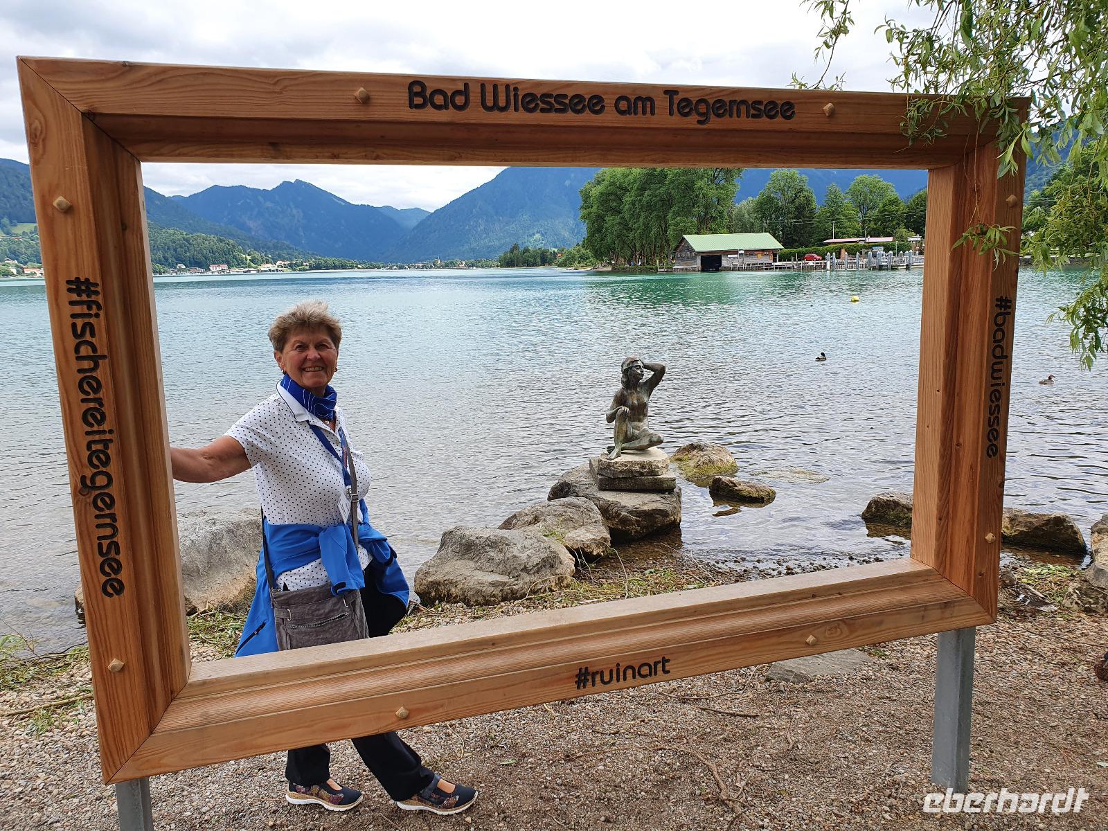 Die meisten Wanderer hatten die Busanreise gewählt und dazu den Haustürtransfer. So begann die Reise ganz entspannt im Bus mit den Eberhardt Urlaubern, die nur einen Hotelaufenthalt gebucht hatten. Vorbei an Plauen, Nürnberg und München fuhren wir gen Süden. Zu unserer Überraschung waren wir bereits 13.30 Uhr, wie geplant, am Tegernsee und konnten gleich im Hotel Terrassenhof in Bad Wiessee einchecken. Wir erfuhren alles wichtige vom Chef der Rezeption und konnten umgehend unsere Zimmer für die ersten beiden Nächte beziehen. Da das Hotel direkt am See lag, gab es die Möglichkeit zum Schwimmen und/oder für einen ersten Spaziergang auf der Seepromenade. Herrlich, diese frische Luft und der zauberhafte Ausblick über den See. So verging der erste Nachmittag beim Bummel durch die Geschäfte, Kaffeetrinken, Eis essen und der Erkundung unseres Urlaubsortes Bad Wiessee. Zum Abendessen sass unsere Gruppe zusammen im Quirin Stüberl und dort machten wir uns nach dem Essen miteinander bekannt und begrüßten eine Familie, die mit dem Pkw angereist war. Unsere Wanderführerin Steffie informierte ausführlich über die einzelnen Etappen der Alpenüberquerung, verteilte die Stempelhefte und nun konnte der Urlaub beginnen.