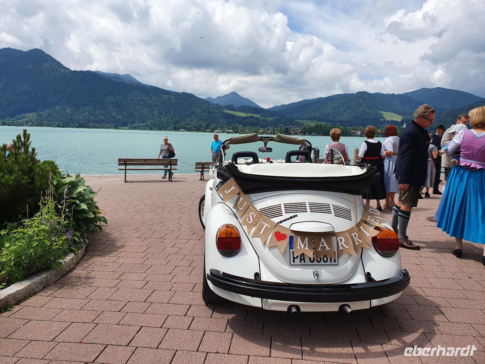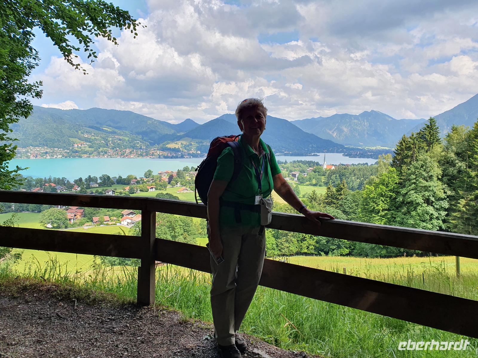 Nach dem Frühstück fuhren wir mit dem Linienbus zum offiziellen Startpunkt der Alpenüberquerung am Bahnhof in Gmund. Von dort ging es los, zunächst durch Gmund, über den Mangfall und dann stetig bergan. Der Wanderweg verläuft ca. 100 m über dem See und so hatte man immer wieder wunderbare Ausblicke. Zur Mittagszeit erreichten wir Tegernsee und wurden von einer Blaskapelle und Peitschenschlägern empfangen. Eine schöne Überraschung und dann sahen wir auch die dazugehörige Hochzeitsgesellschaft. Unsere Mittagspause machten wir ganz zünftig im Braustüberl und wir fanden auch gleich Platz an verschiedenen Tischen. Das Wetter war perfekt und zurück nach Bad Wiessee nahmen wir das Schiff und hatten so einen schönen Blick auf die Orte am See. Wieder in Bad Wiessee war Freizeit und die nutzten die Wanderer ganz unterschiedlich. Ein Grossteil ging mit uns auf der Wiesseer Talseite hinauf zum Freihaus Brenner, wo auch eine Hochzeit gefeiert wurde, und zurück über den herrlichen Aussichtspunkt Prinzenruh. Rechtzeitig vor dem Abendessen waren alle wieder im Hotel und nach dem Essen machten wir uns nochmals auf den Weg ins Zentrum, wo es Musik am See gab. Nun mussten die Koffer gepackt werden und der Rucksack für die erste große Tour unserer Alpenüberquerung.