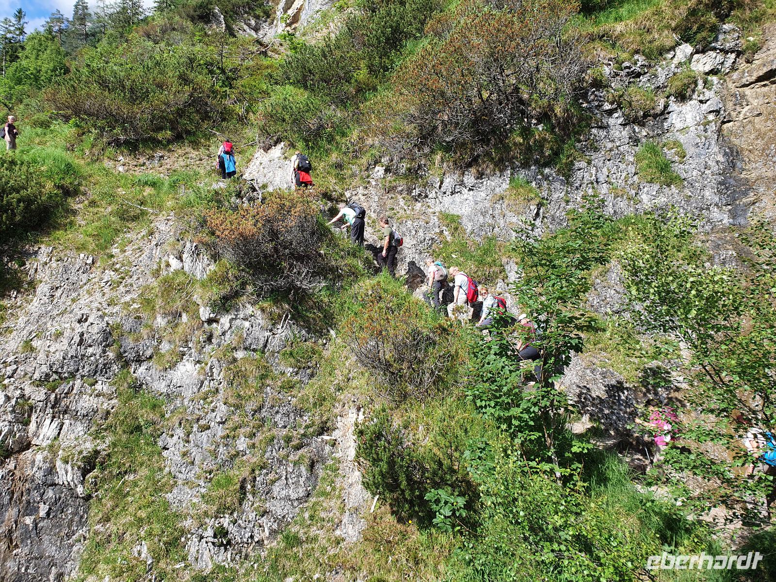 Die heutige Etappe war nochmals etwas gemütlicher und begann direkt beim Hotel. Durch Wiesen gelangten wir zum Gamsalmsteig immer am Ufer des Achensees entlang. Der Weg war traumhaft schön angelegt und brachte auch kleine Herausforderungen wenn es an schmalen, gesicherten Passagen vorbei ging, oder steil bergan über Stufen und dann gleich wieder steil bergab zur Gamsalm. Über dem See lagen anfangs noch die Wolken des Regens vom Vorabend. Aber die Sonne ließ sie bald verschwinden und der Blick reichte dann bis nach Pertisau. An der Gamsalm legten wir eine kleine Pause ein und der weitere Weg wurde etwas breiter. Allerdings kamen uns auch deutlich mehr Wanderer entgegen. Pertisau erreichten wir zur Mittagszeit und so kehrten wir im Garten des Hotels Christina ein. Unser Hotel für die nächste Nacht lag in Maurach und dorthin fuhr ein Gast mit dem Linienbus, 3 wanderten mit Steffie die 5 km immer am See entlang und alle anderen nahmen mit mir das Achenseeschiff bis Seespitz. Von dort waren es dann auch noch ca. 2 km bis zu unserem Hotel Edelweiss. Alles war für unser Kommen vorbereitet. Wir wählten das Essen für abends aus und hatten dann noch reichlich Freizeit. Die meisten Wanderer besuchten das Sportgeschäft gleich neben dem Hotel und wurden auch fündig. Im Laufe des Tages hatten wir besprochen, dass 4 Gäste die nächsten beiden Touren nicht mit wandern und mit dem Linienbus zum nächsten Hotel fahren werden.