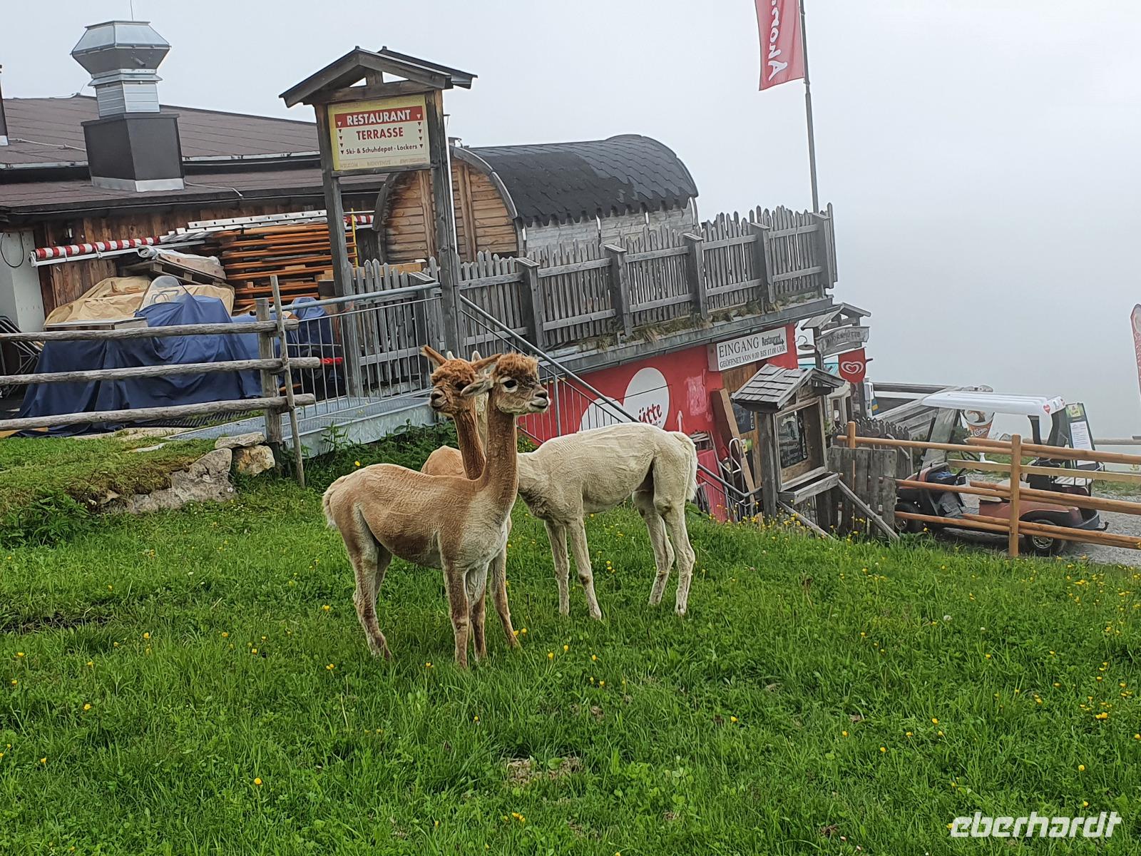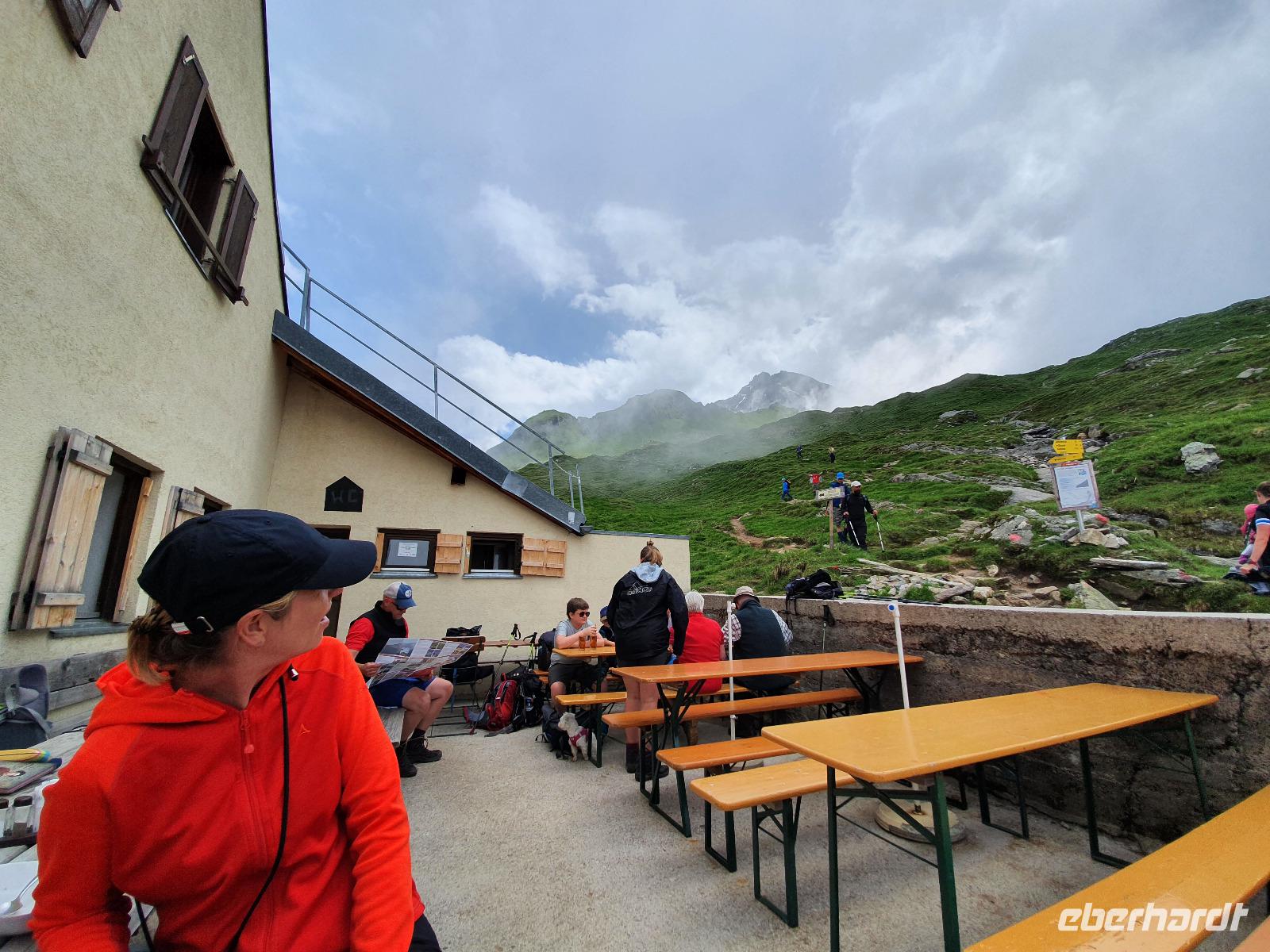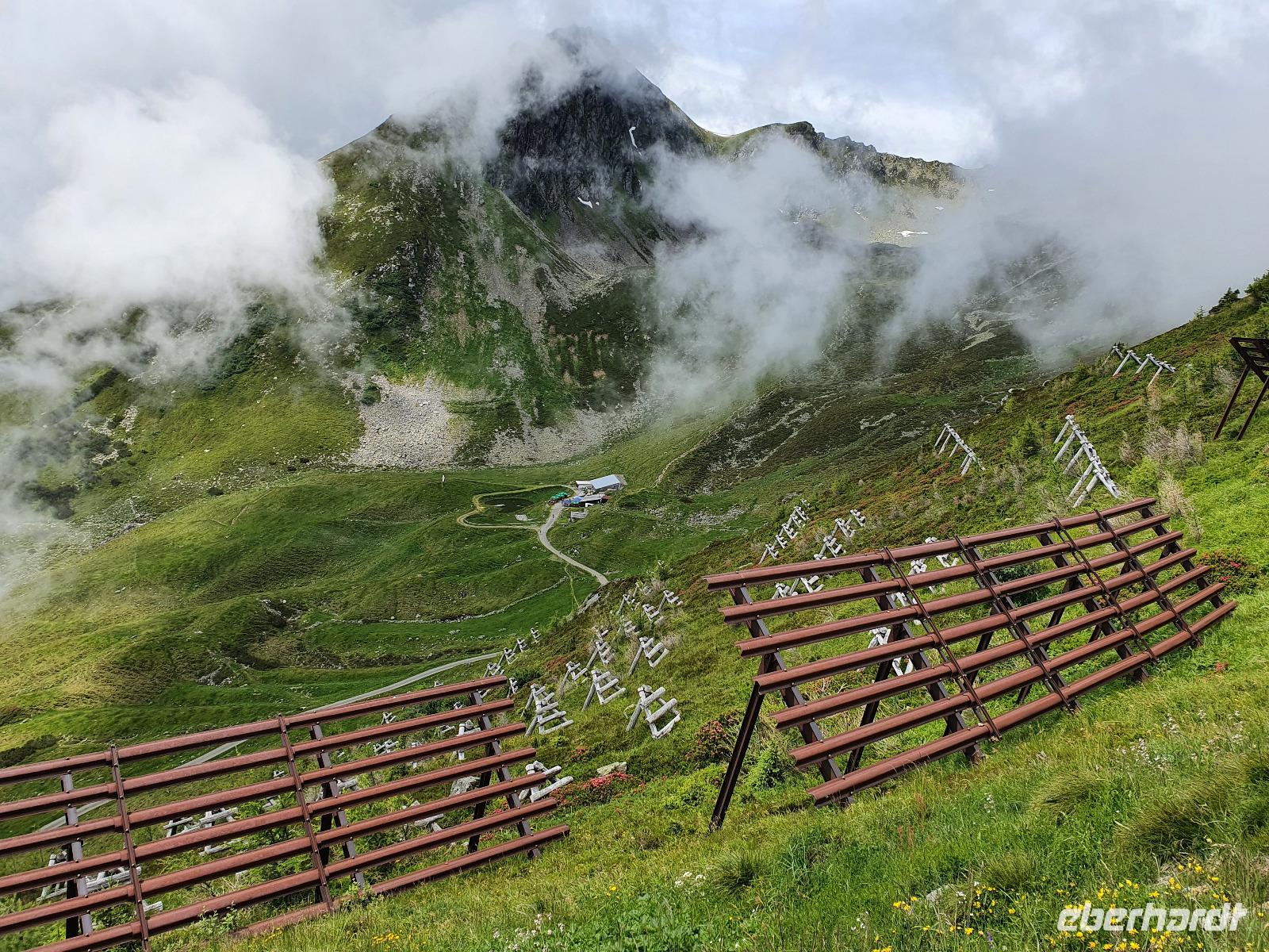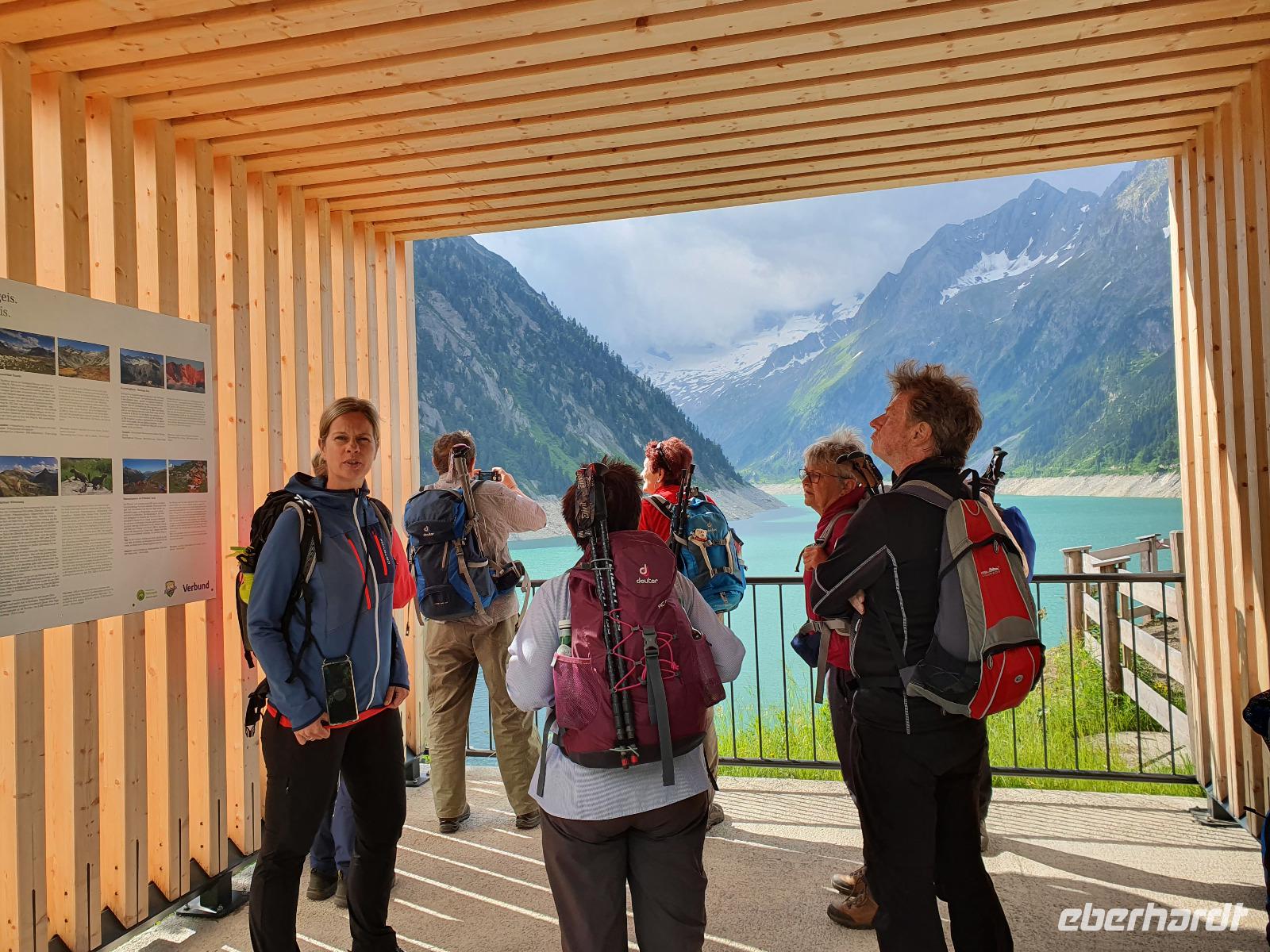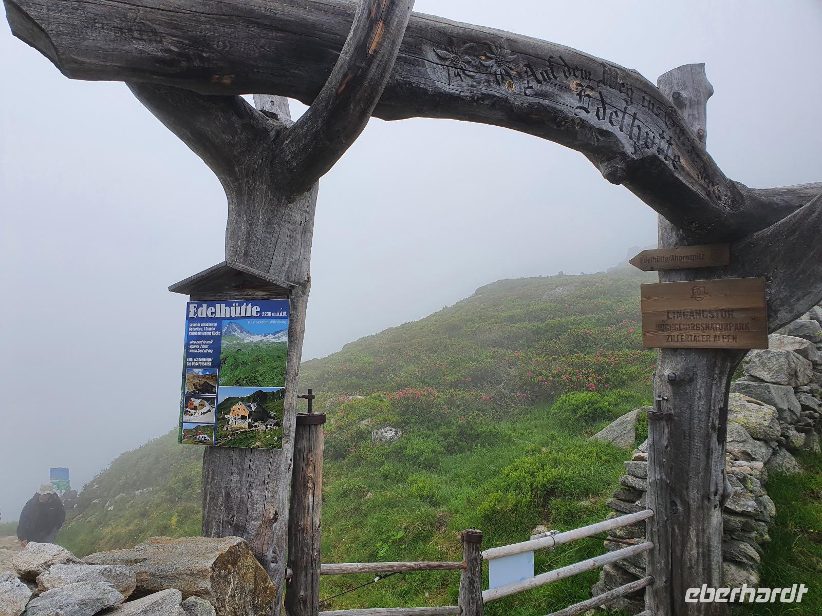 8 Gäste entschieden sich, mit uns per Seilbahn auf das Ahornplateau zu fahren. Oben gab es dann verschiedene Möglichkeiten an kleineren und größeren Wanderungen. 4 Singles schlossen sich Steffie und mir an und wir wanderten zur Edelhütte. Das war eine wunderschöne Tour mit Aussichten hinunter ins Zillertal und hinauf zur Ahornspitze. Nach einem recht steilen Anstieg erreichten wir die Hütte und hatten zu Mittag wieder eine reichliche Auswahl. Der Hüttenwirt machte ein Schwätzchen mit uns und trug uns Grüße für unsere Hotelchefin auf. Leider wurden die Wolken immer dichter und so war der Abstieg teilweise in Wolken, teilweise mit freier Sicht. Wieder unten am Ahornplateau machten wir eine Runde auf einem schönen Aussichtsweg und kehrten dann noch einmal im Panorama Restaurant auf Kaffee und Kuchen ein. Eine Dame hatte unsere Gruppe schon früher verlassen, weil sie einen aktuellen Test für die Einreise nach Italien brauchte. Wieder unten in Mayrhofen schien die Sonne und so bummelte jeder gemütlich zurück zum Hotel. Zum Abendessen gingen wir ins Hotel Berghof gleich neben unserem Hotel. Beim Abendessen gab es einen regen Austausch über das Erlebte am Ruhetag.