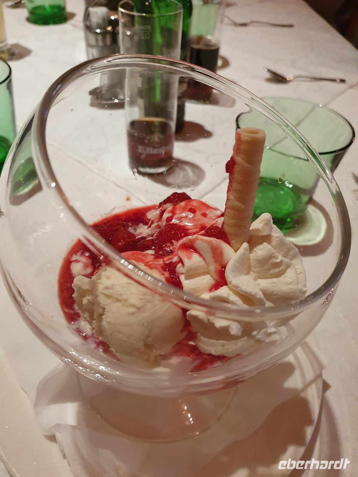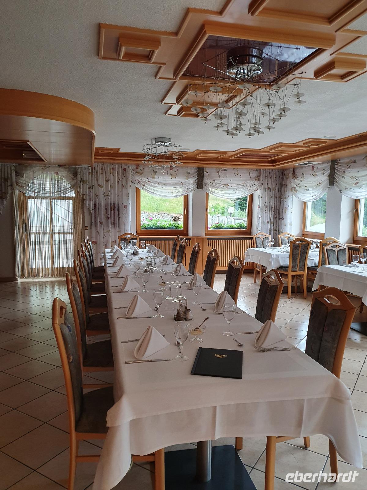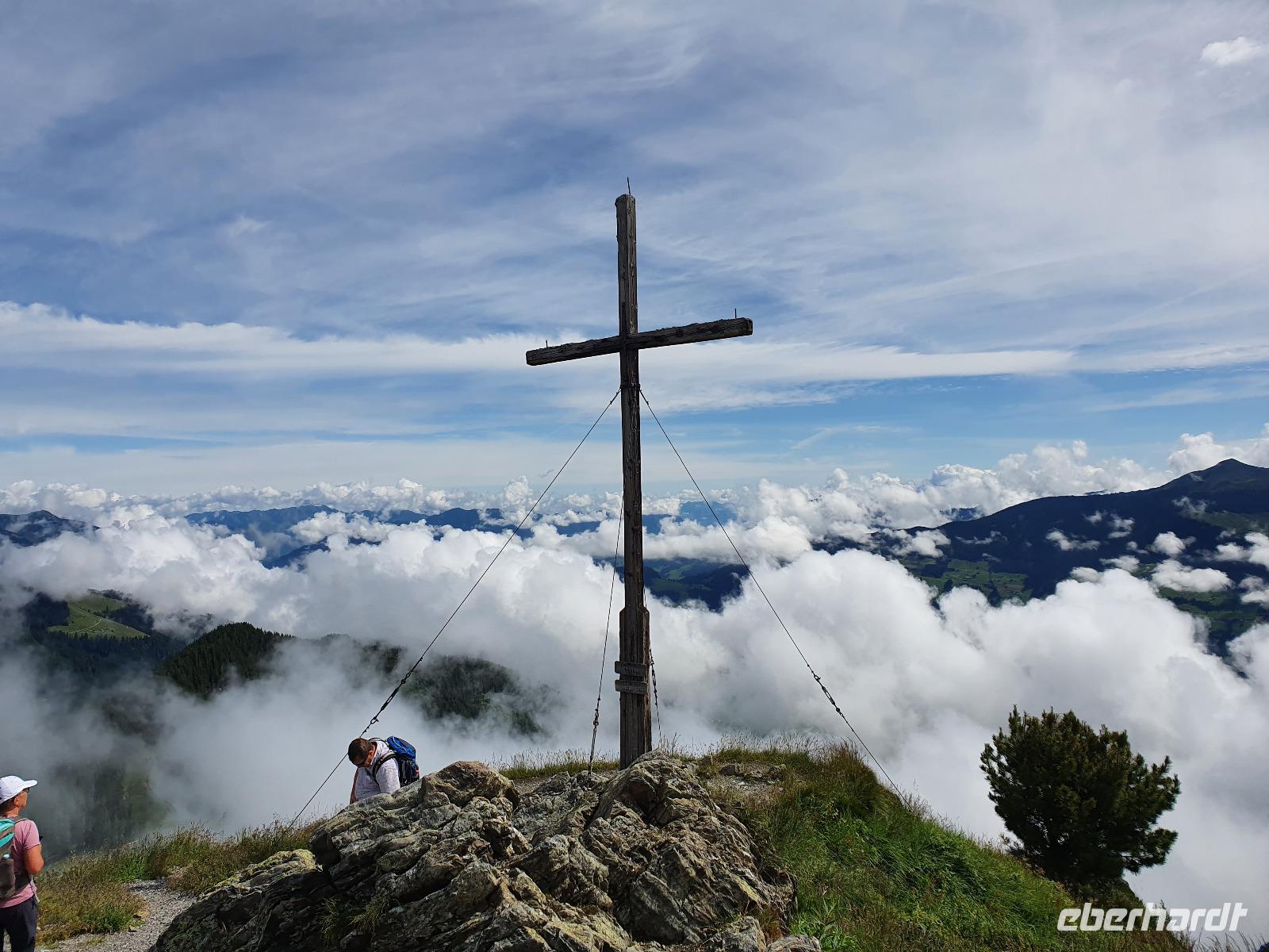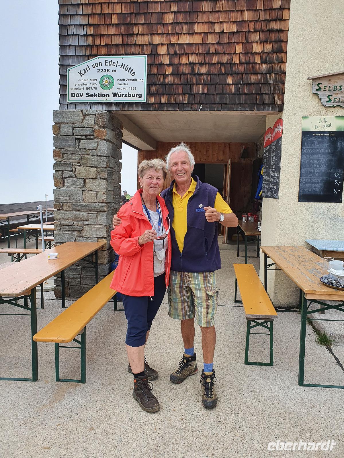 8 Gäste entschieden sich, mit uns per Seilbahn auf das Ahornplateau zu fahren. Oben gab es dann verschiedene Möglichkeiten an kleineren und größeren Wanderungen. 4 Singles schlossen sich Steffie und mir an und wir wanderten zur Edelhütte. Das war eine wunderschöne Tour mit Aussichten hinunter ins Zillertal und hinauf zur Ahornspitze. Nach einem recht steilen Anstieg erreichten wir die Hütte und hatten zu Mittag wieder eine reichliche Auswahl. Der Hüttenwirt machte ein Schwätzchen mit uns und trug uns Grüße für unsere Hotelchefin auf. Leider wurden die Wolken immer dichter und so war der Abstieg teilweise in Wolken, teilweise mit freier Sicht. Wieder unten am Ahornplateau machten wir eine Runde auf einem schönen Aussichtsweg und kehrten dann noch einmal im Panorama Restaurant auf Kaffee und Kuchen ein. Eine Dame hatte unsere Gruppe schon früher verlassen, weil sie einen aktuellen Test für die Einreise nach Italien brauchte. Wieder unten in Mayrhofen schien die Sonne und so bummelte jeder gemütlich zurück zum Hotel. Zum Abendessen gingen wir ins Hotel Berghof gleich neben unserem Hotel. Beim Abendessen gab es einen regen Austausch über das Erlebte am Ruhetag.