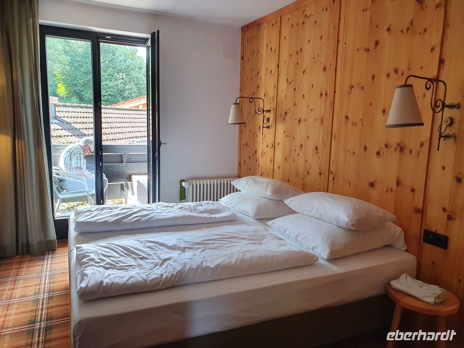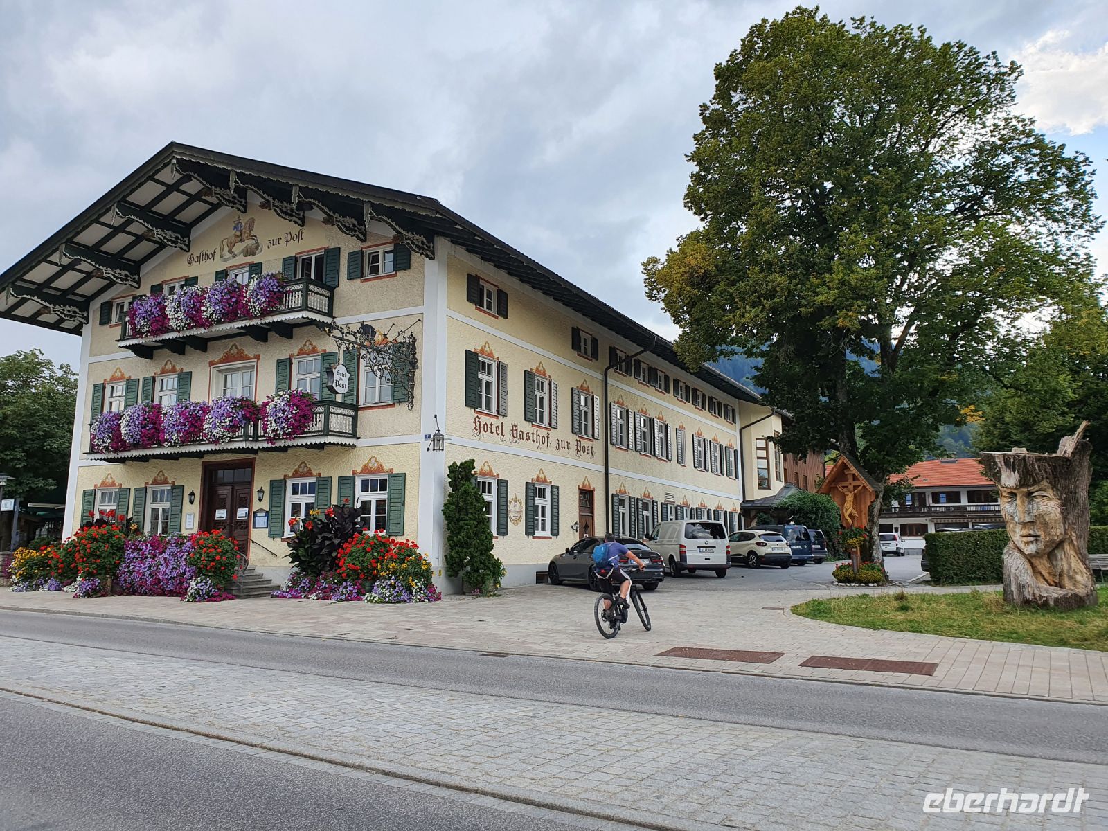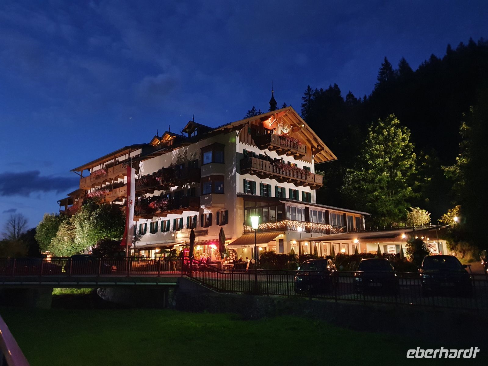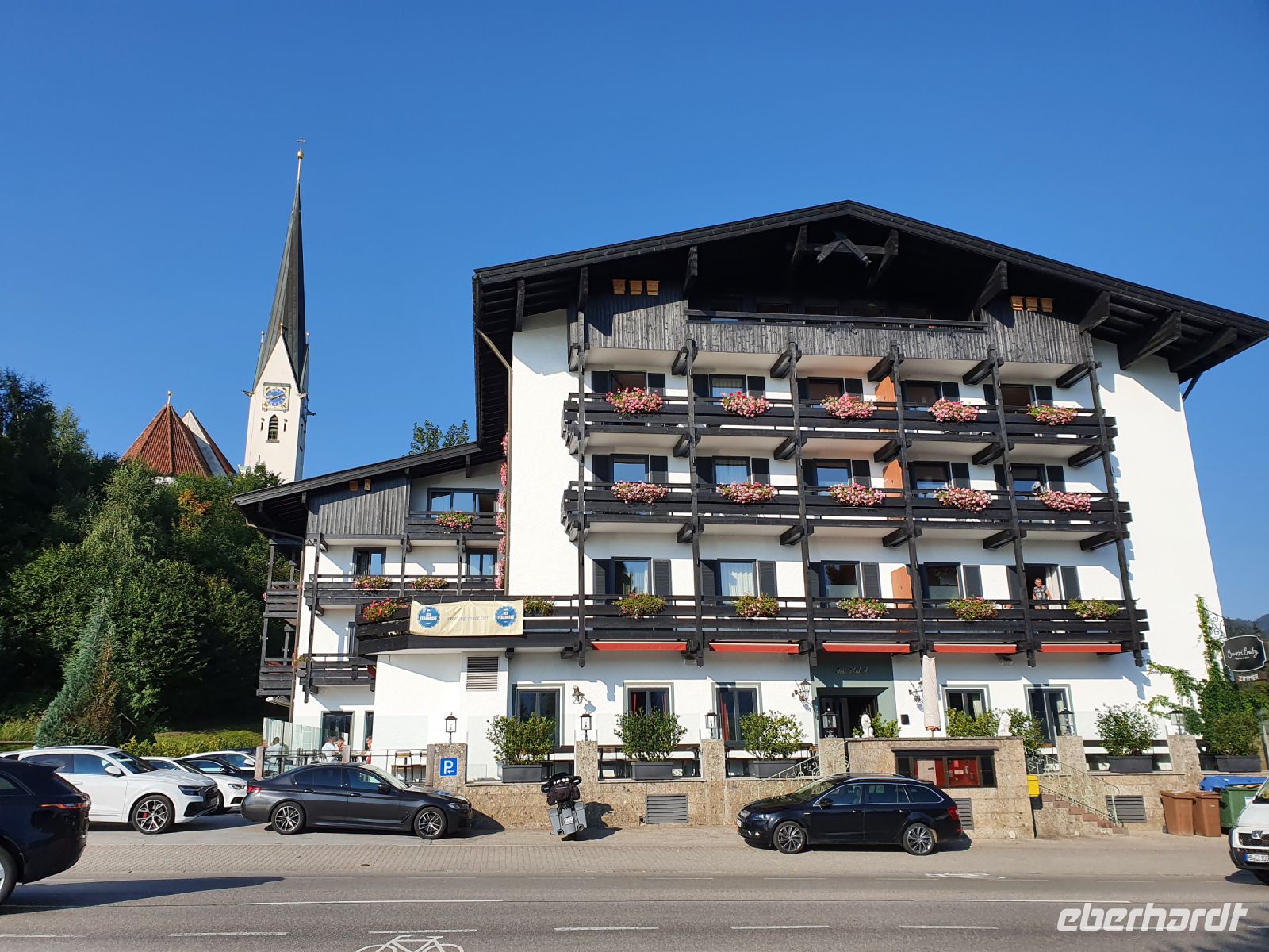 Zusammen mit den Bergurlaubern von Eberhardt Travel reisten wir im Bus von Dresden mit weiteren Zustiegen vorbei an Nürnberg und München nach Holzkirchen und dort holten uns zwei Taxis ab und brachten uns zum Hotel Bussi Baby in Bad Wiessee. Das Hotel wird von einem sehr jungen Team geführt und so ging das Einchecken digital und schnell. Wir bezogen unsere Zimmer und verabredeten uns zu einem ersten Erkundungsspaziergang. Inzwischen war die letzte Teilnehmerin, die mit dem Zug anreiste, auch angekommen und so konnte unsere Wandergruppe nach einer kurzen Vorstellungsrunde aufbrechen. Es ging zum Freibad am Tegernsee, weiter durch Alt Wiessee mit den wunderschönen, alten Bauernhäusern und Kühen auf der Weide zur Seepromenade des Tegernsees in Bad Wiessee. Wir spazierten am Ufer entlang bis zum Hotel Terrassenhof und wieder zurück ins Zentrum. Dort gönnten wir uns ein erstes italienisches Eis, erledigten Einkäufe und gingen zurück zum Hotel. Bevor wir zum Abendessen aufbrachen, gab es bei einem Grauburgunder alle wichtigen Informationen zur Alpenüberquerung mit den Schwierigkeitsgraden der einzelnen Etappen. Das Abendessen nahmen wir im Biergarten des Hotels Post ein und so fand unser erster Tag einen genussvollen Abschluss.