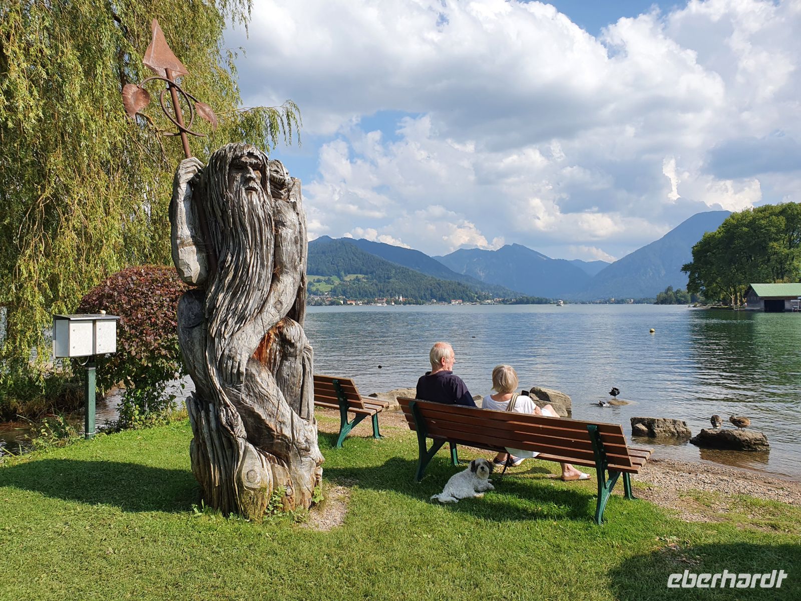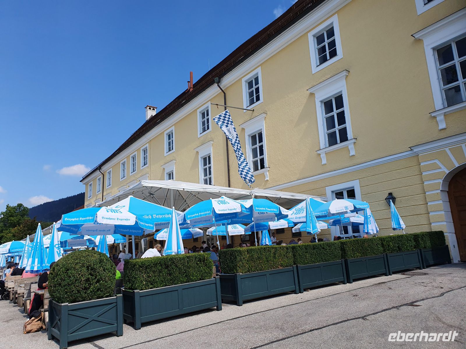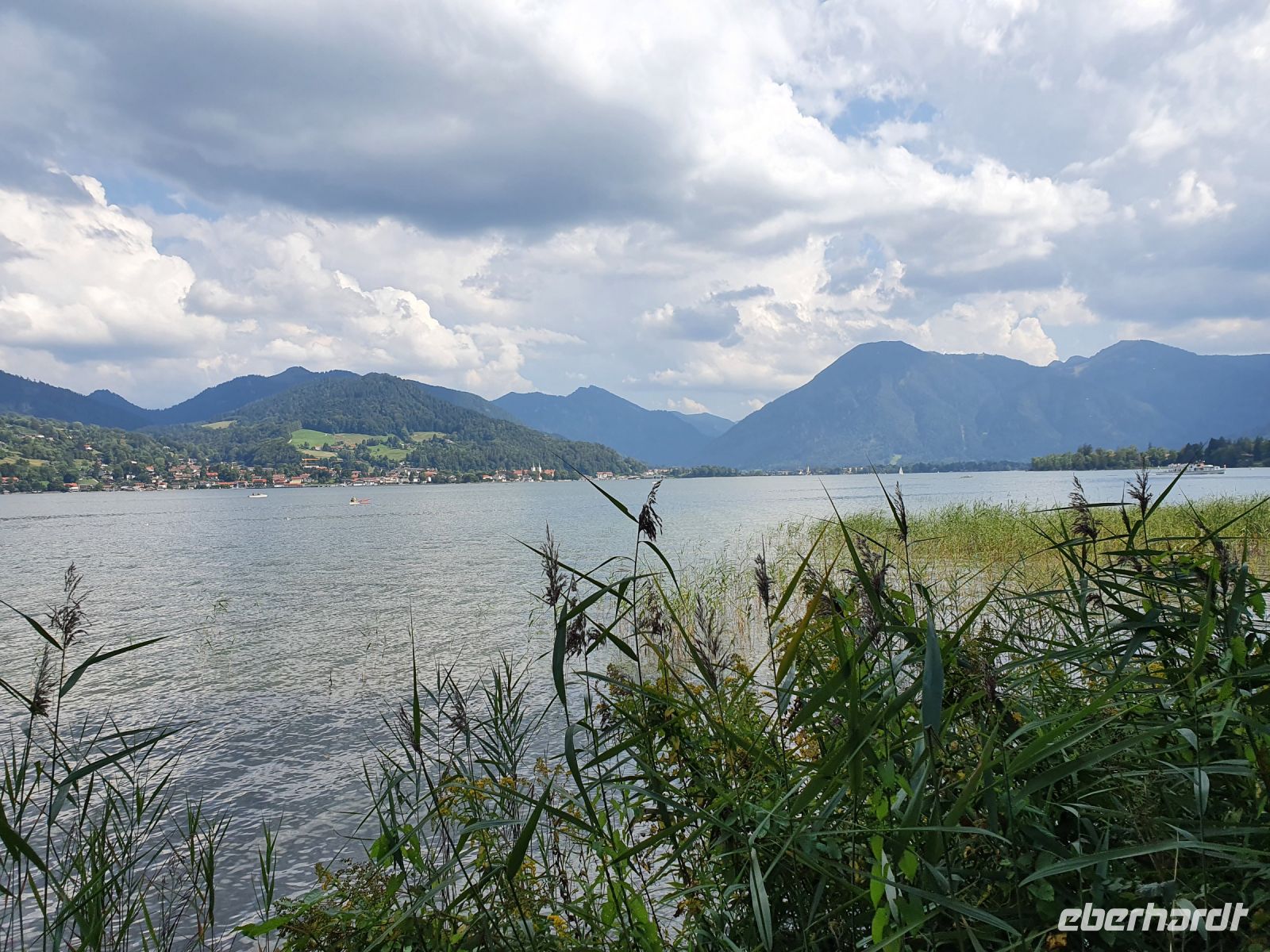 Nach einem sehr guten Frühstück trafen wir uns alle an der Bushaltestelle gegenüber von unserem Hotel und fuhren nach Gmund zum Bahnhof. Dort war der offizielle Beginn unserer Alpenüberquerung und so wurden viele Fotos geschossen. Dann ging es los, durch die Gassen von Gmund, über die Mangfall, den einzigen Abfluss des Tegernsees, und weiter immer am Seeufer entlang. Wir querten die Hauptstrasse und liefen über Wiesen steil nach oben zum Tegernseer Höhenweg. Dort waren viele Wanderer unterwegs und wir genossen die herrlichen Ausblicke über den See hinüber nach Bad Wiessee. Steil ging es dann hinunter nach Tegernsee, vorbei am Rathaus zum historischen Bräustüberl. Für Alpenüberquerer ist die Mittagspause dort ein Muss und obendrein gab es den ersten Stempel fürs Stempelheft. Nach der Mittagspause wanderten wir weiter immer am Ufer des Tegernsees entlang bis nach Rottach Egern zum Hotel Überfahrt und dort nahmen wir das Schiff über den Tegernsee zurück nach Bad Wiessee. Nach einer Pause in der italienischen Eisdiele wanderten wir hinauf zum Freihaus Brenner und oben weiter bis zum Aussichtspunkt Prinzenruh. Bad Wiessee und unser Hotel lagen uns zu Füssen und der Blick über den Tegernsee entschädigte für die steilen Wege. Zum Abendessen gingen wir in die "Königslinde", ein traditionelles Lokal mit Biergarten am See. Wir wählten unsere Gerichte aus der Speisekarte und bis zum Hauptgang hielt das Wetter auch aus. Dann kam der angesagte Gewitterregen und so flüchteten wir nach drin für Nachtisch und Espresso.