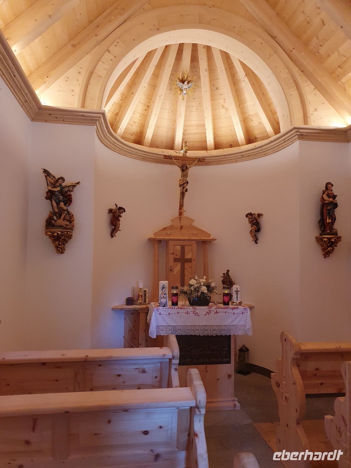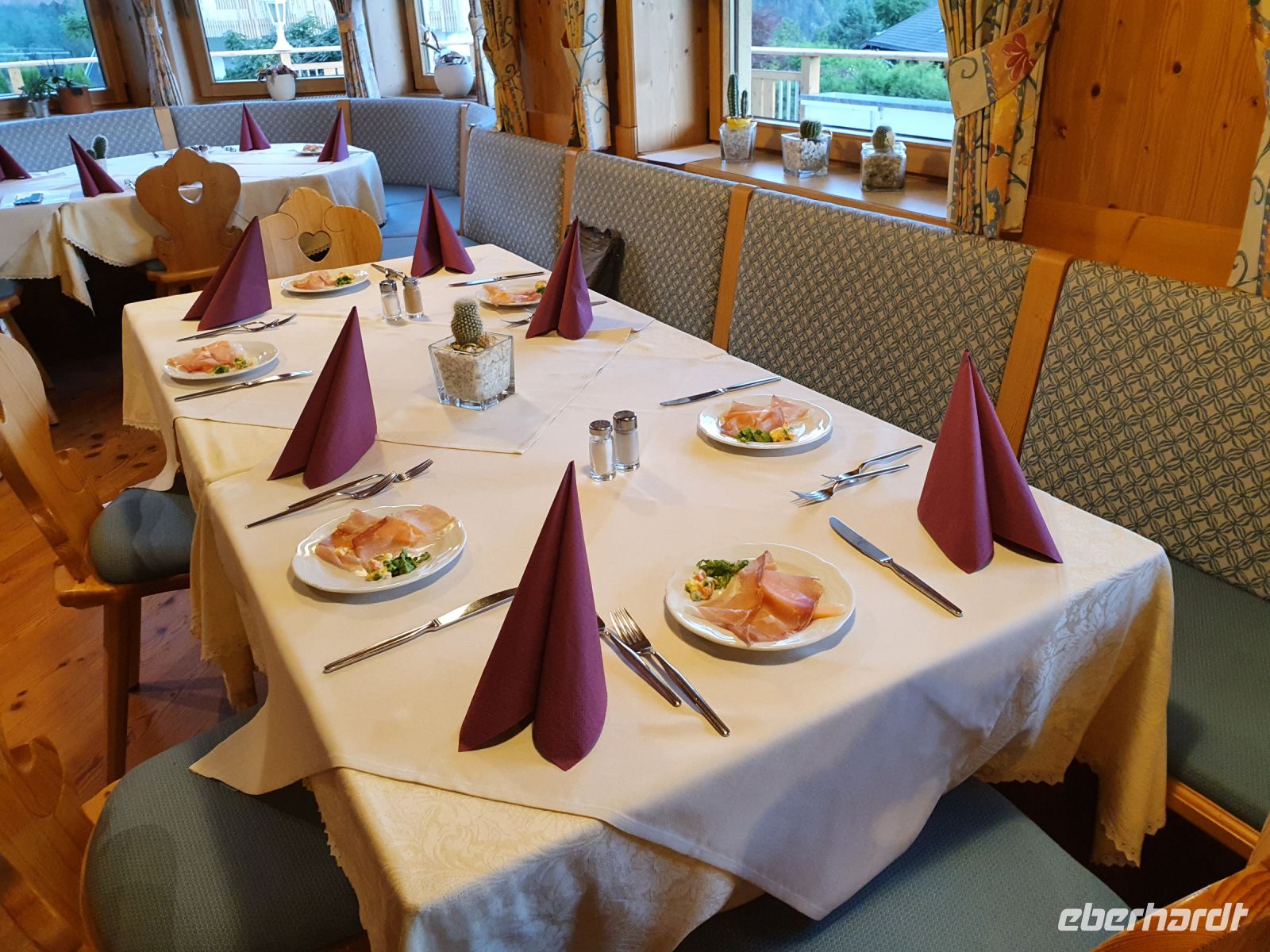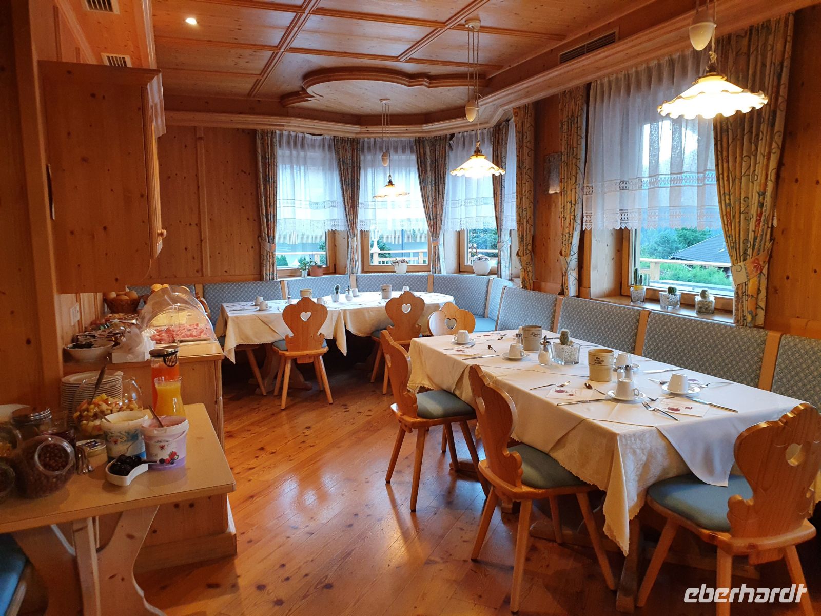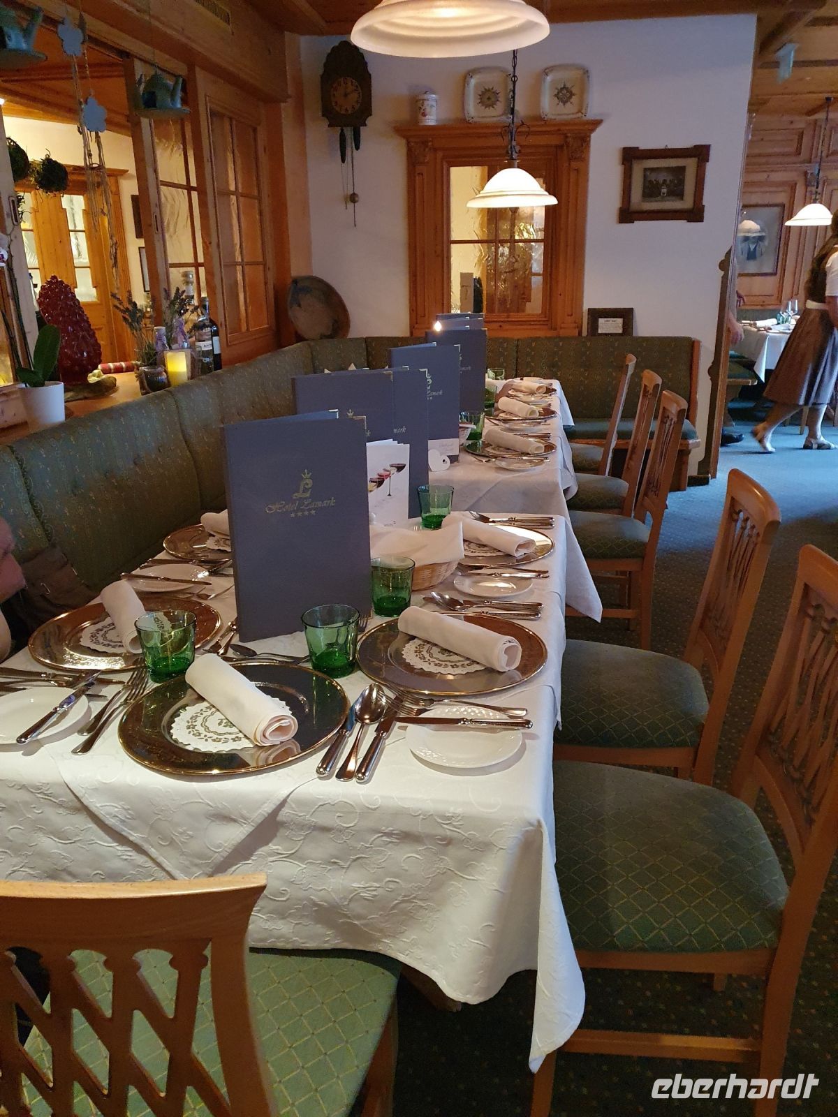 Gut gestärkt liefen wir nach dem Frühstück das kurze Stück zur Spieljochseilbahn und fuhren hinauf auf 1860 m Höhe. Dort begannen wir unsere Wanderung zunächst auf den Gipfel des Spieljochs. 2 Gäste gingen dann den Familienwanderweg bis zur Gartalm und alle anderen nahmen den Weg über den schroffen Grat bis hinauf auf das Onkeljoch in 2066 m Höhe. Da oben standen wir vor dem Kellerjoch mit der kleinen Bergkapelle dahinter und bei dem grandiosen Anblick kam der Wunsch auf, auch gleich noch über das doppelgipfliche Kellerjoch ( 2344 m ) zu wandern. Aber das hätte unseren Tagesplan gesprengt und es wäre keine Zeit mehr für den traumhaft schönen Wellnessbereich im Hotel Lamark geblieben. So liefen wir auf dem Höhenweg weiter in Richtung Gartalm. Schon bald kam die Gartalm unter unserem Weg in Sicht und dann standen viele Serpentinen nach unten an bis wir die Gartalm erreichten. Unterwegs sahen einige Gäste ein Kreuzotter und die Wirtin der Alm berichtete uns später, dass es dort recht viele gibt. An der Gartalm besuchten wir zuerst das "Honighaus" mit dem Denkmal für Bär Bruno und danach liessen wir uns die Leckereien schmecken. Der Wirt erzählte uns recht ausführlich, was sich mit Bruno auf seiner Alm so zugetragen hatte. Nach der ausgiebigen Rast verlief unser Weg immer am Berghang entlang mit vielen Blaubeeren und Preiselbeeren. Das verlockte immer wieder zum naschen. Später liefen wir auf einem wurzelreichen Weg durch den Wald, über sumpfige Wiesen und schliesslich kamen wir zum Loassattel. Von dort blickt man nach Innsbruck und auf die Nordkette und am Wegesrand gibt es eine Relaxzone mit Bank und Hängematten. Das war Anlass, nochmal eine Pause einzulegen. Der weitere Weg nach Hochfügen ist breit und wir kamen gut voran. Schon 15 Uhr erreichten wir den Ort und unser Hotel und so blieb noch viel Zeit zum Ausruhen und zum Nutzen der Sauna und des Schwimmbades. Unser Abendessen, bestehend aus 5 Gängen, passte gut zum Bergfest und war sehr schmackhaft. Im Hotel Lamark kocht der österreichische Fernsehkoch Alexander Fankhauser.