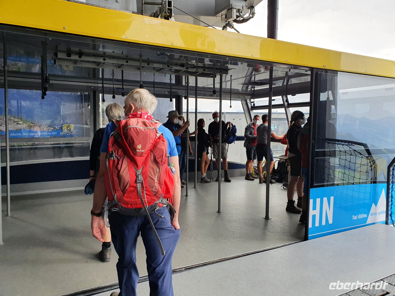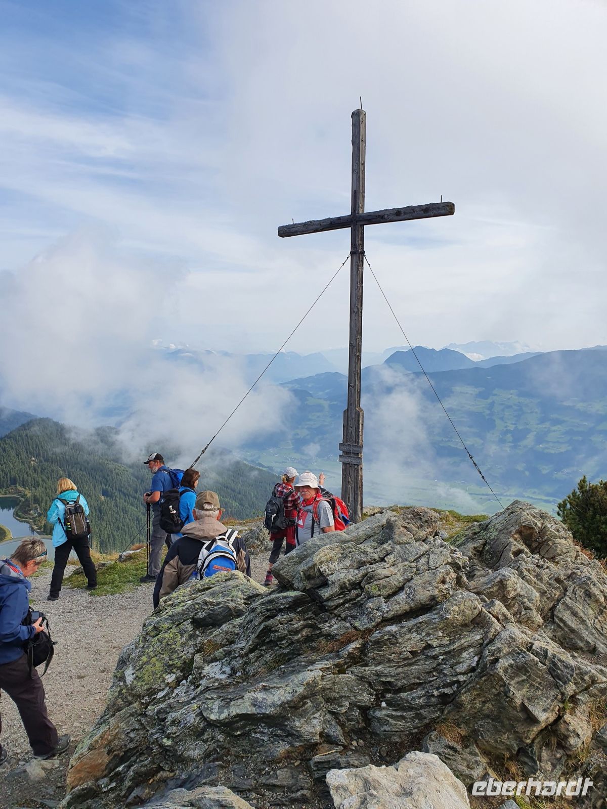 Alle Wanderer gingen mit zur Seilbahn und gemeinsam schwebten wir hinauf auf das Ahornplateau auf 1955 m. Dort oben bieten sich viele Wandermöglichkeiten an. Fast alle kamen mit auf die Wanderung zur Edelhütte auf 2238 m Höhe und genossen die tolle Aussicht auf die Ahornspitze und runter ins Zillertal. Dort wurden wir auch gut verpflegt und nahmen zurück einen anderen Weg mit wieder anderen Ausblicken. Am Ahornplateau entschlossen sich dann noch 6 Wanderer auf den Filzenkogel mit 2227 m zu steigen und nochmals einen tollen Ausblick zu haben. Über dem Stilluptal wurden die Wolken leider immer zahlreicher und verhießen nichts Gutes für unseren nächsten Wandertag. Beim Abstieg trafen wir wieder auf eine große Ziegenherde und unten am Plateau erkundeten wir alle Sehenswürdigkeiten am Rundwanderweg. Zum Abschluss kehrten wir zu Kaffee und Kuchen im Panoramarestaurant ein. Mit der Seilbahn gings dann wieder hinunter nach Mayrhofen und auf dem Weg zum Hotel gab es genügend Möglichkeiten zum Shoppen und Einkehren. Zum Abendessen liefen wir nur ein kurzes Stück bis zum Hotel Berghof und dort konnten wir im überdachten Freirestaurant zu Abend essen. Dabei hatten wir viel Spass mit der Musik.