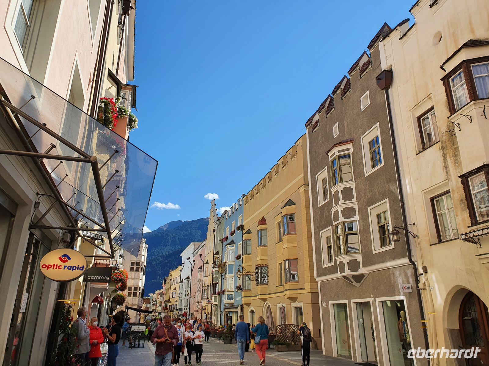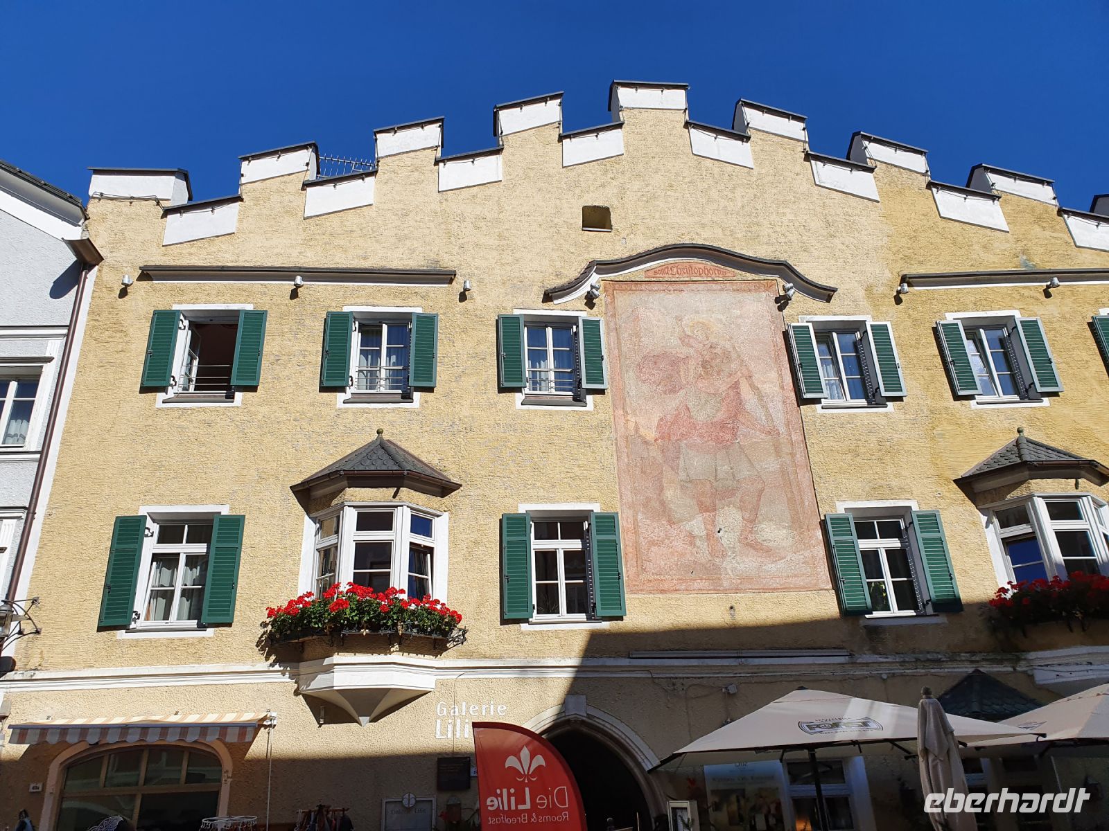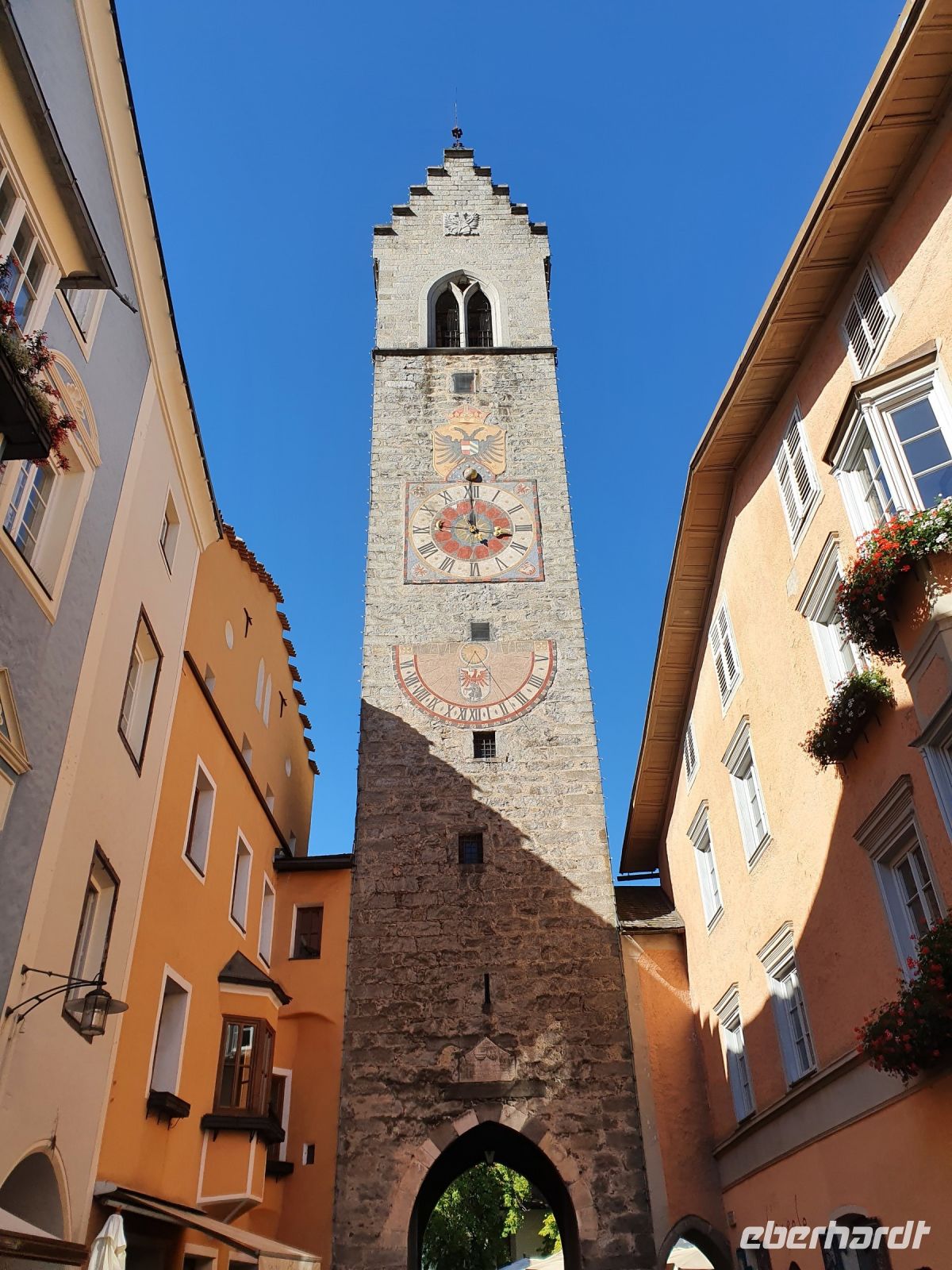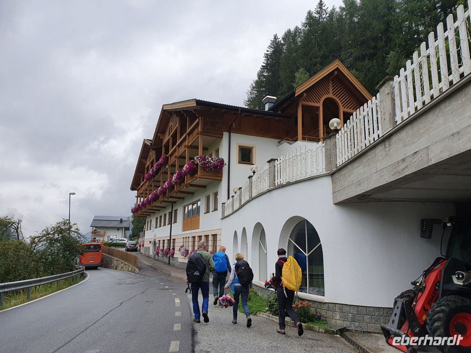 Ganz entspannt nahmen wir unser letztes gemeinsames Frühstück wieder in der kleinen Stube ein, brachten unsere Koffer nach unten und gingen dann mit einer Wanderfreundin zum Bahnhof, denn sie reiste wieder mit der Bahn . Ein schöner Spaziergang führte uns weiter zum Brixener Tor in Sterzing und ab dort war schon der rote Tepich für die Touristen ausgerollt. Es gab viele Verkaufsstände von verschiedenen Vereinen und es waren sehr viele Menschen unterwegs. Wir erledigten die letzten Einkäufe und schlenderten danach wieder hinauf zum Hotel Sonnenheim. Gegen Mittag holte uns ein Kleinbus ab und brachte uns nach Österreich zum Wipptaler Hof an der Brenner Autobahn. Kurz darauf traf der Eberhardt Bus ein und die Gäste stiegen um in Kleinbusse zum Gardasee und unsere Gruppe fuhr zusammen mit den Eberhardt Urlaubsgäste vom Gardasee und aus dem Stubaital nach Hause. Es herrschte ein starker Rückreiseverkehr und so kamen wir nicht ganz zügig voran. Auch waren die Parkplätze mit LKW überbelegt und unsere Fahrer hatten Mühe, einen Busparkplatz zu finden. So erreichten wir alle mit etwas Verspätung unsere Ausstiegsstellen.