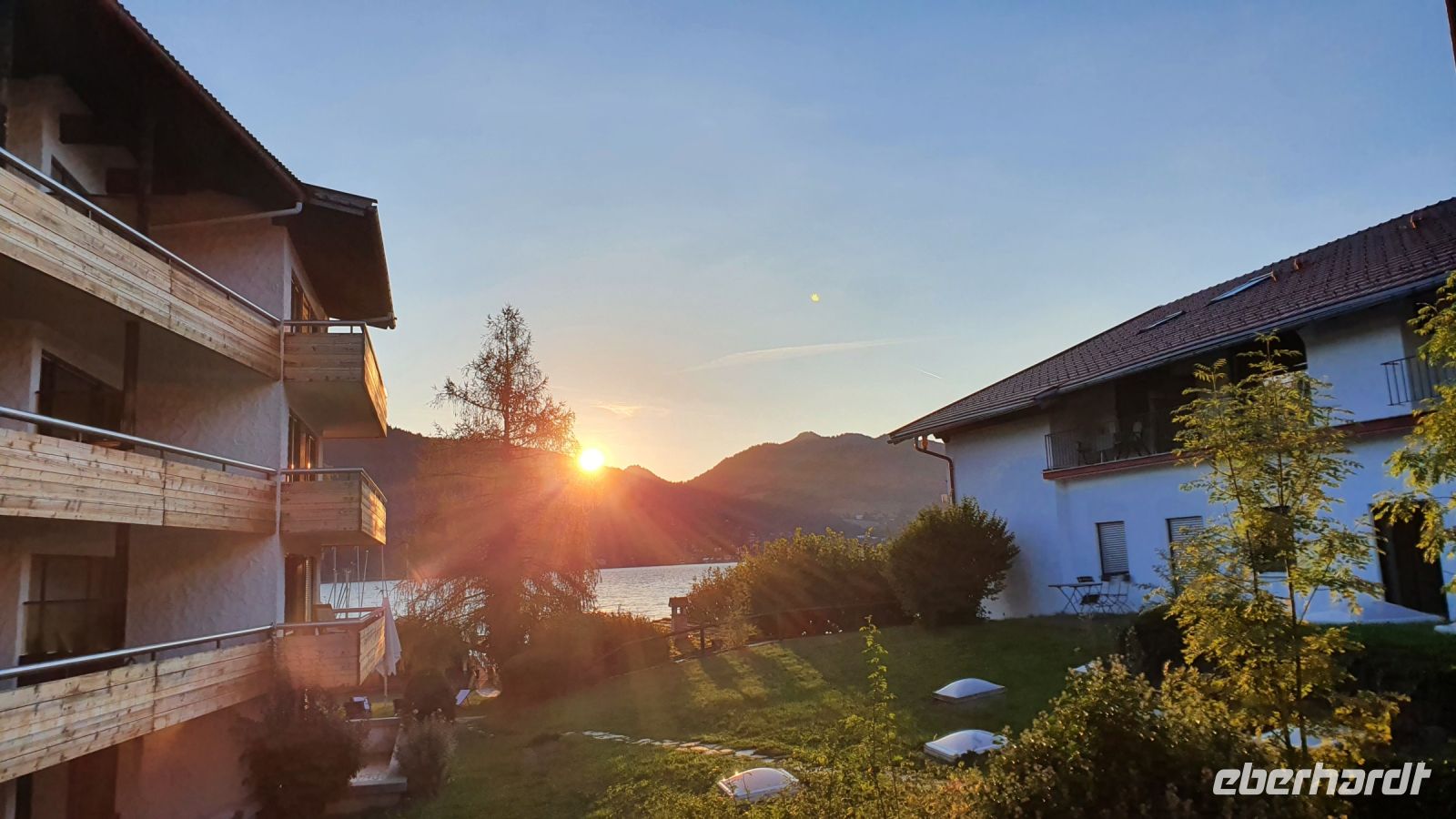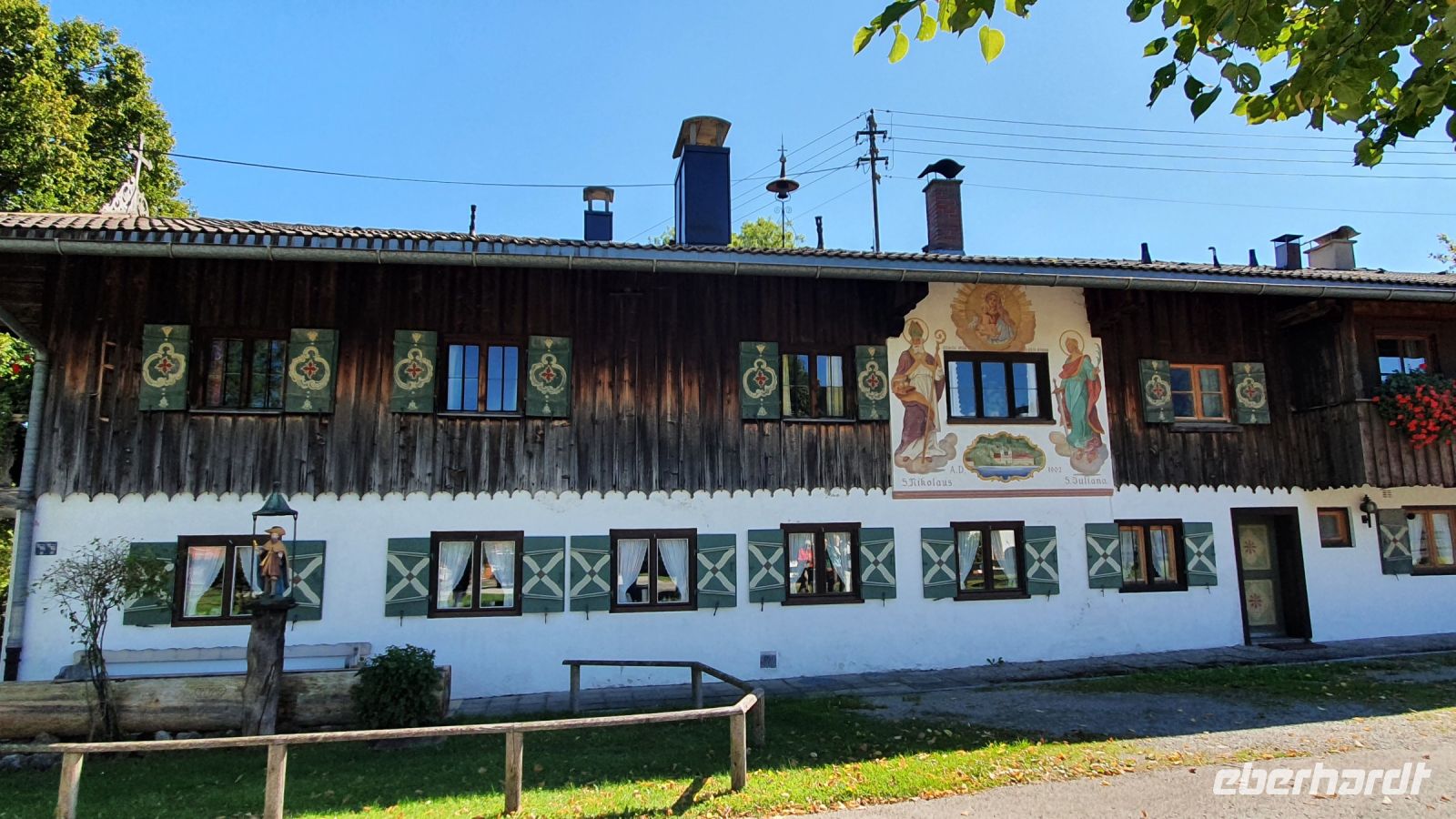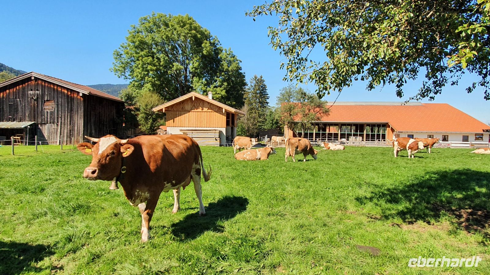 Die meisten Gäste unserer Wandergruppe nutzten für die An- und Abreise den Urlauber Pendel Bus von Eberhardt Travel. Wir wurden direkt zum Hotel Terrassenhof in Bad Wiessee gebracht und konnten so den Nachmittag schon für einen ersten Rundgang entlang des Tegernsees nutzen. Bei Sonnenschein und guter Sicht spazierten wir bis nach Alt Wiessee, wo es noch mitten im Kurort alte Bauernhöfe mit ihren Tieren auf der Weide gibt. Auch die Maria Himmelfahrts Kirche auf einem Hügel besuchten wir und auf dem Rückweg kehrten wir im Eis Cafe San Marco ein. Unterwegs trafen wir die beiden individuell angereisten Gäste und ein ganz mutiger Herr unserer Gruppe ging schwimmen im Tegernsee. Zum Abendessen trafen wir uns wieder im Quirin Stüberl unseres Hotels und genossen unser zuvor ausgewähltes 3-Gang-Menue. Danach gab es umfassende Informationen zu den einzelnen Etappen unserer Alpenüberquerung und bei einem Glas Wein machten wir uns untereinander bekannt. Nun konnte es losgehen !