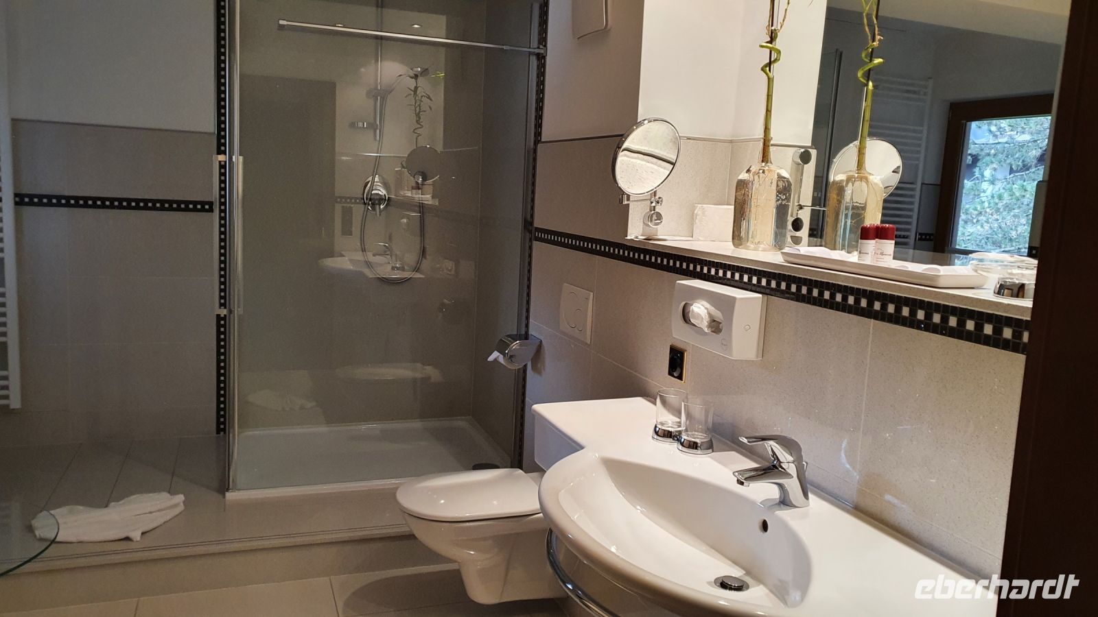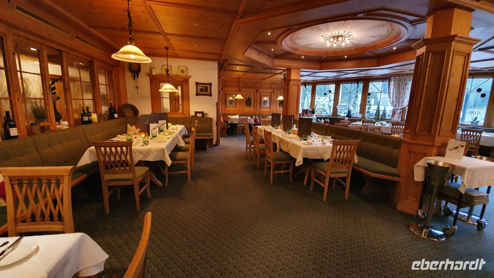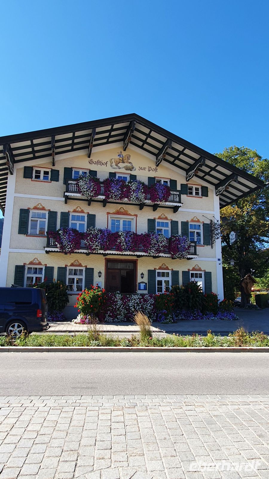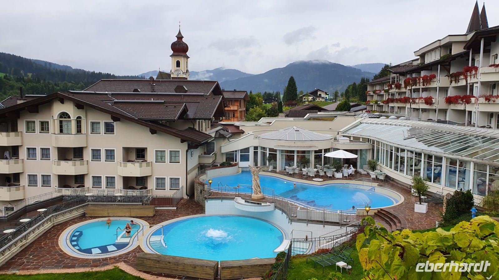 Die meisten Gäste unserer Wandergruppe nutzten für die An- und Abreise den Urlauber Pendel Bus von Eberhardt Travel. Wir wurden direkt zum Hotel Terrassenhof in Bad Wiessee gebracht und konnten so den Nachmittag schon für einen ersten Rundgang entlang des Tegernsees nutzen. Bei Sonnenschein und guter Sicht spazierten wir bis nach Alt Wiessee, wo es noch mitten im Kurort alte Bauernhöfe mit ihren Tieren auf der Weide gibt. Auch die Maria Himmelfahrts Kirche auf einem Hügel besuchten wir und auf dem Rückweg kehrten wir im Eis Cafe San Marco ein. Unterwegs trafen wir die beiden individuell angereisten Gäste und ein ganz mutiger Herr unserer Gruppe ging schwimmen im Tegernsee. Zum Abendessen trafen wir uns wieder im Quirin Stüberl unseres Hotels und genossen unser zuvor ausgewähltes 3-Gang-Menue. Danach gab es umfassende Informationen zu den einzelnen Etappen unserer Alpenüberquerung und bei einem Glas Wein machten wir uns untereinander bekannt. Nun konnte es losgehen !