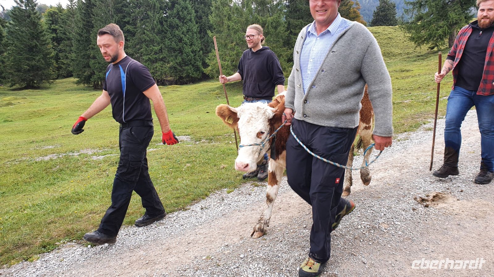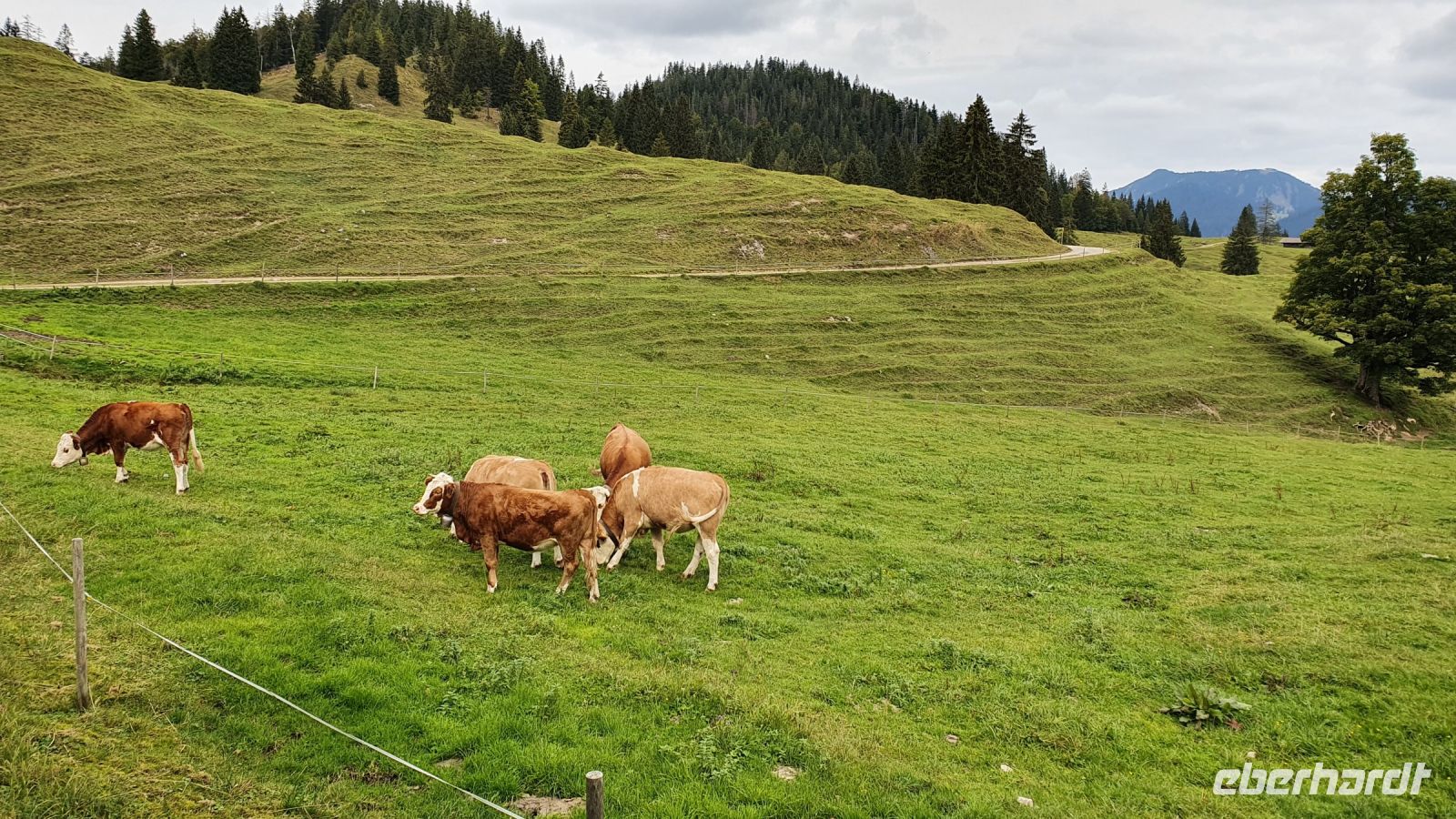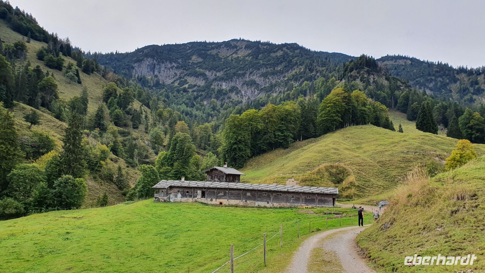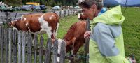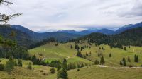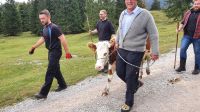 Mit gepackten Koffern standen wir zur Abholung bereit. Wir fuhren zum Parkplatz Klamm hinter Kreuth und begannen unseren Aufstieg über die ehemalige Weltmeisterrodelbahn hinauf zur Königsalm. Unten im Tal war alles für den Viehabtrieb vorbereitet, aber uns kamen nur 4 Bauern mit einer Kuh entgegen. Das Tier musste wohl was Besonderes sein ? Auf der Königsalm gab es dann den ersten Stempel des Tages, frische Buttermilch und alles was des Wanderer Herz so erfreut. Nun ging unser Weg steil bergan zum Graseck und von dort weiter immer wieder mit recht steilen Passage bis zum Sattel unter dem Schildenstein. Unterwegs kamen uns Jugendliche mit Mountain Bikes entgegen. Vom Sattel hatten wir einen guten Blick hinunter zum Achensee und auf markante Berge im Unnützmassiv und auf den Guffert. Nach Passieren der deutsch-österreichischen Grenze sahen wir bald oben am Hang die Blaubergalm und nach einem letzten steilen Anstieg war das Ziel unserer Mittagspause erreicht. Das Wetter war gut und so sassen wir draussen auf langen Bänken mit Blick zum Hang, wo einige Murmeltiere ganz in der Nähe zu beobachten waren. In der Blaubergalm gab es ein reichliches Mittagsangebot und den zweiten Stempel. Noch ein kurzer Abstecher hinauf zum Gipfelkreuz und dann begann schon der lange Abstieg hinunter ins Achental. Wir wanderten auf einem Forstweg immer in Kehren 800 Höhenmeter bergab und auch das war eine Herausforderung. Eine Dame erlitt einen Schwächeanfall und wurde mit Unterstützung der anderen Wanderer hinunter ins Tal gebracht. Herzlichen Dank nochmals allen Helfern ! Unten im Tal holten uns zwei Taxen ab und brachten uns das letzte Stück nach Achenkirch ins Hotel Post. Dort erwartete unsere Wanderer ein Service auf fünf Sterne Niveau. Leider waren wir nur eine Nacht in diesem Traumhotel und man kann ja auch nicht mehr als essen !!