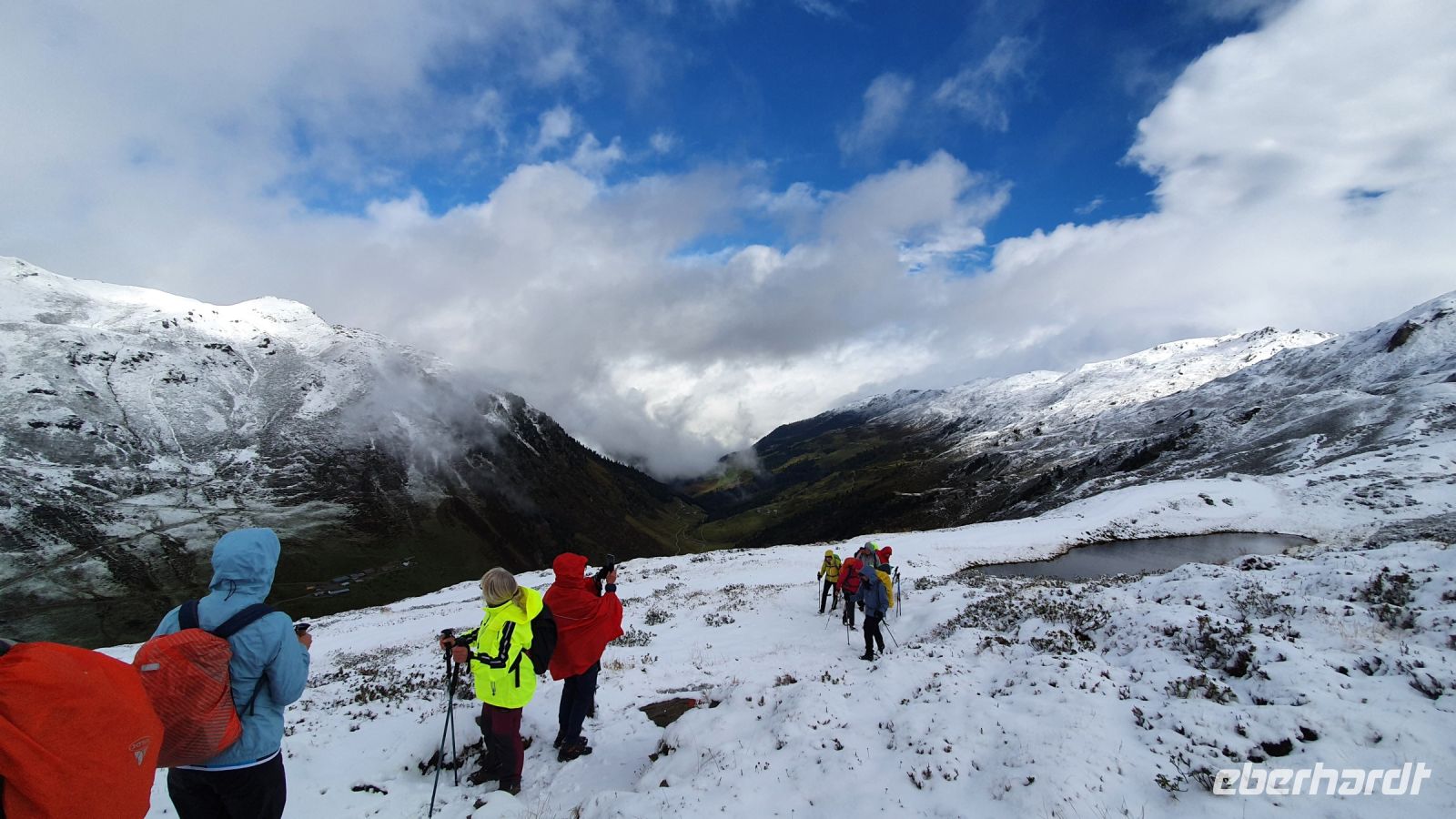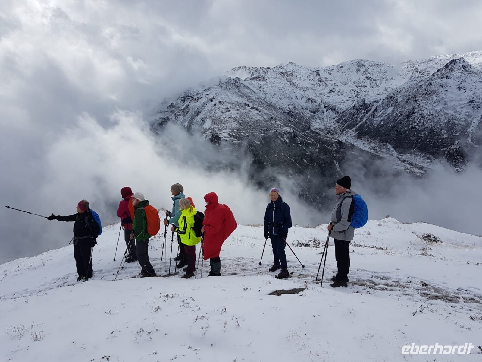 Eine Alpenüberquerung ist kein Spaziergang und sie wird sehr stark vom Wetter beeinflusst. Wir durften alles erleben, Sonne am Tegernsee, Wind und Regen, Schnee, dicken Nebel, fantastische Wolkenspiele und leuchtende Schneegipfel in der Sonne. Es gibt kein schlechtes Wetter, nur unpassende Kleidung, aber in unserer Gruppe waren alle auf jedes Wetter vorbereitet. So konnten auch alle die Wandertage genießen und ich kann euch allen nur meine größte Bewunderung aussprechen, daß ihr so tapfer mit mir durch alle Witterungsunbilden gewandert seid und so viel Freude über die Wetterüberraschungen empfunden habt. Es hat mir sehr viel Spass gemacht, mit euch die Alpen zu überqueren, auch wenn ich manchmal am Vortag noch nicht wusste, wie der nächste Tag ablaufen würde. Diese Alpenüberquerung wird auch mir noch lange in guter Erinnerung bleiben.