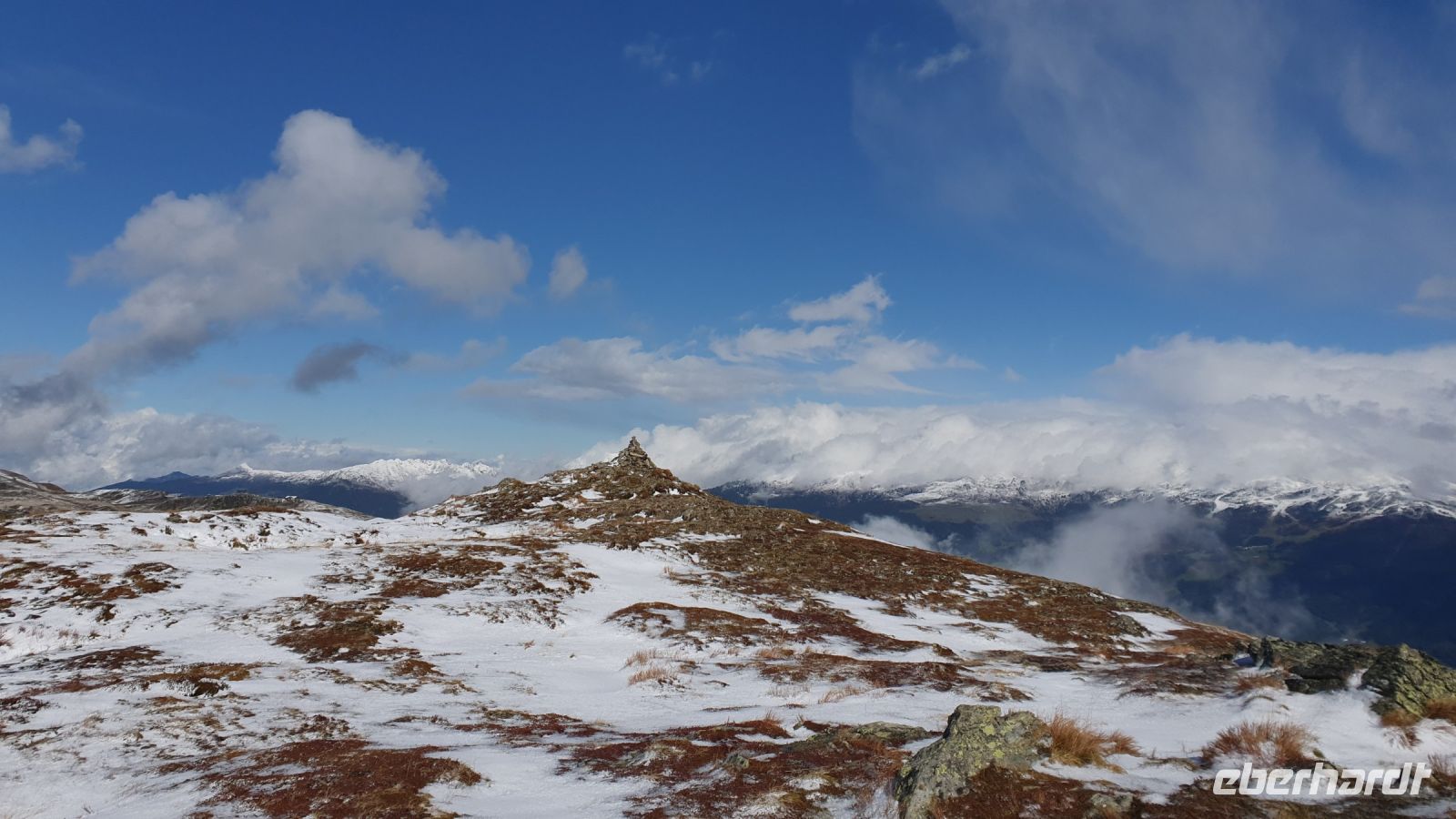 Aufwachen am Morgen und gleich wieder verschiedene Wetter Apps "konsultieren" und nun war zwar weiter Schneefall angesagt, aber für den kommenden Tag noch schlechteres Wetter. Beim Frühstück verkündete ich deshalb meinen Wanderern, dass wir doch losgehen und nicht nach Mayrhofen fahren. 3 Gäste entschieden sich, dennoch Bus und Bahn nach Mayrhofen zu nehmen und alle anderen starteten mit mir zur Wanderung vorbei an den Gehöften der Pfundsalm hinauf zum Sidanjoch. Über Nacht hatte es schon geschneit und unterwegs beim Aufstieg wurden wir immer wieder von leichten Schnee- und Regenschauern begleitet. Auch war es nicht ganz leicht, immer den richtigen Weg im Schnee zu finden, denn wir waren die ersten, die losgelaufen waren. Kurz vor dem Sidanjoch schlossen 4 Wanderer zu uns auf und nun hatten wir wenigstens Gesellschaft von einer tiroler Bergführerin mit 3 Damen. Oben am Kamm nach dem Sidanjoch rissen die Wolken auf und die Sonne setzte die frisch verschneiten Berge ins rechte Licht. Wir waren alle überglücklich und freuten uns, dass unser Mut, doch Loszugehen, eine solche Belohnung erfuhr. Bald sahen wir dann auch schon die Rastkogelhütte vor uns und kehrten ein zu einer ausgiebigen Mittagsrast. Während unserer Mittagspause gab es draussen immer wieder ein Wechselspiel von Wolken und Sonne. Als wir aufbrachen, waren wir von dicken Wolken umgeben und sahen nur 1-2 m weit. So beschloss ich, die weiteren Gipfel auszulassen und den unten verlaufenden bequemen Weg zum Melchboden zum gehen. Aber dann plötzlich waren die Wolken weg und die Gipfel wieder zu sehen. So gingen dann schliesslich 8 Wanderer mit mir steil bergan hinauf zum Mitterwandskopf auf 2280 m Höhe und damit zum höchsten Punkt unserer AÜ. Weiter über den Rauhenkopf und Arbiskopf erreichten wir schliesslich den Melchboden, wo uns die anderen Wanderer erwarteten. Eigentlich war die Mautstrasse hinauf zum Melchboden gesperrt worden, aber unsere Taxis kamen, holten uns ab und brachten uns ins Hotel Maria Theresia nach Mayrhofen. Zum Abendessen gingen wir gemeinsam ins nahe gelegene Hotel Berghof und danach machten einige Gäste mit mir noch einen Rundgang durch das beleuchtete Zentrum von Mayrhofen. Für den nächsten Tag war mal wieder Regen angesagt und so nahmen wir uns einen Besuch in der Erlebnis Sennerei in Mayrhofen vor.