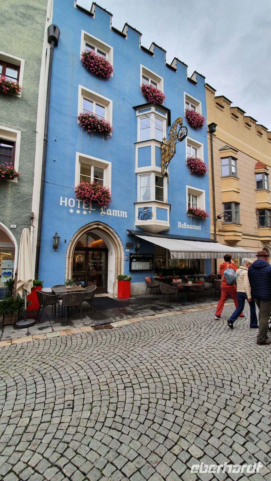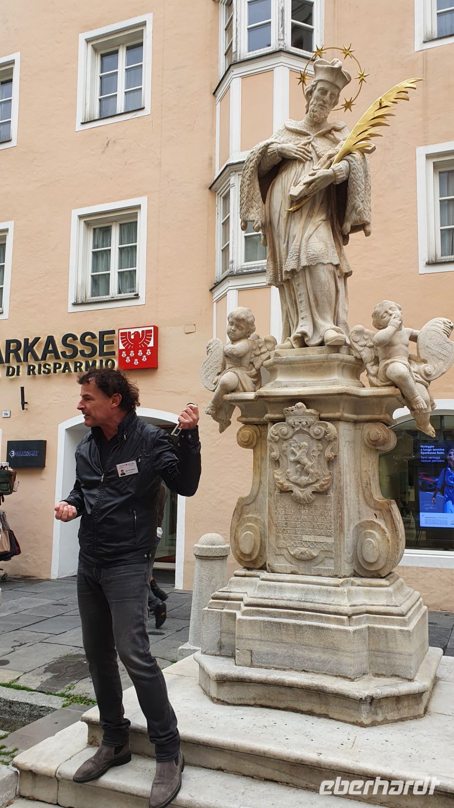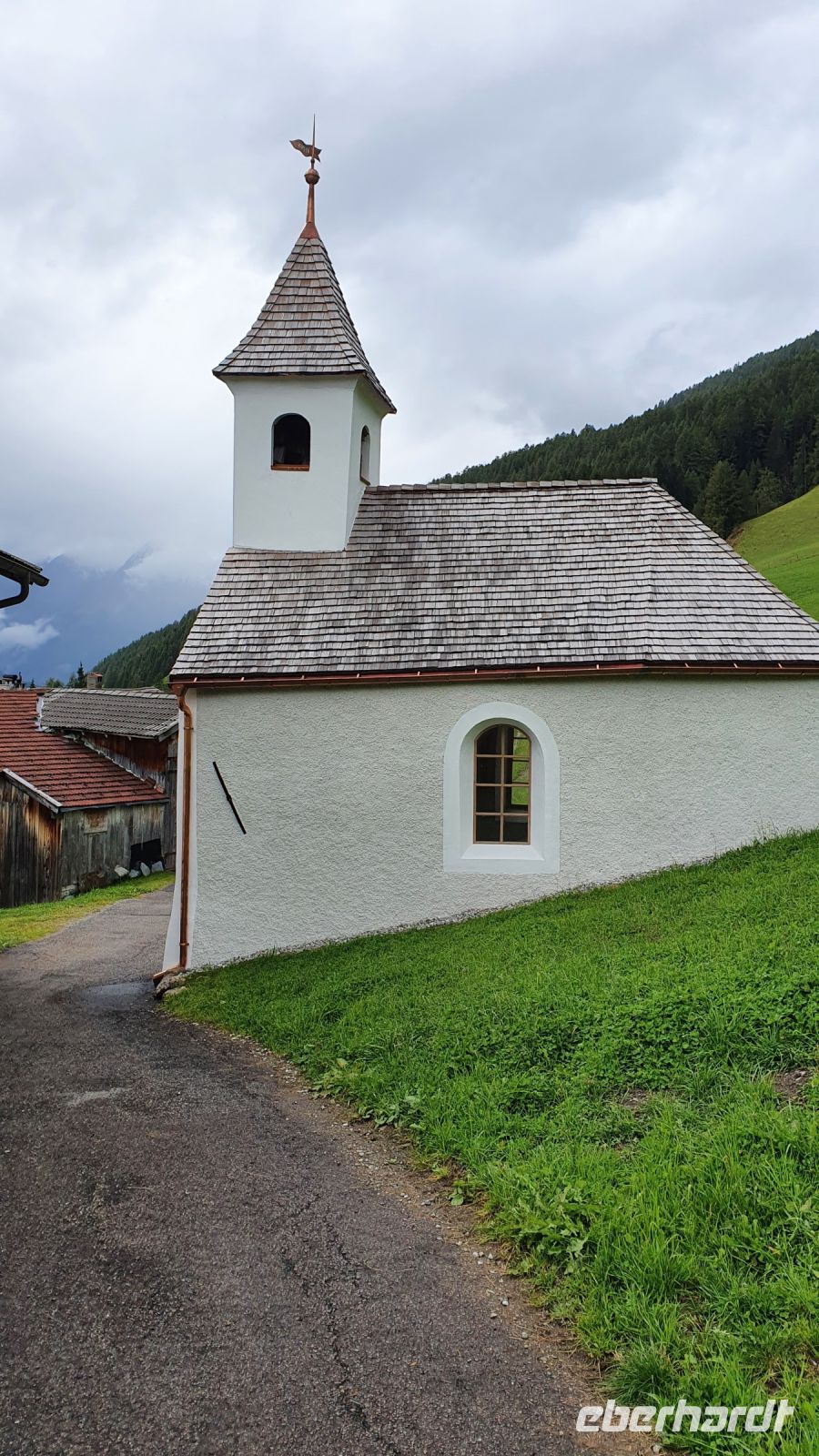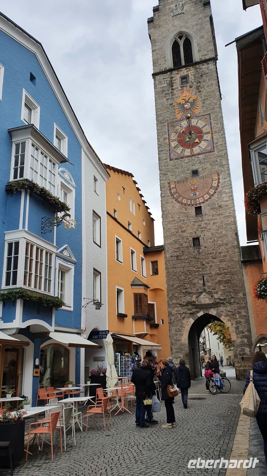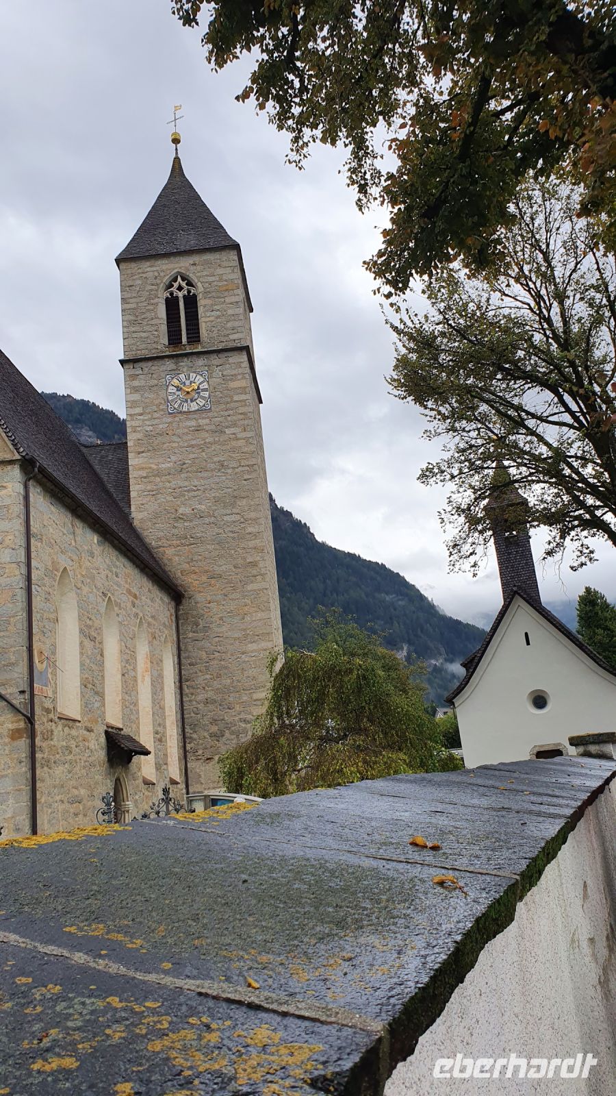 Noch einmal Koffer an die Rezeption bringen und Wanderschuhe schnüren zur letzten Etappe unserer Alpenüberquerung. Wir wanderten direkt vom Hotel Kranebitt durch Kematen mit schönen alten Bauernhäusern, vorbei an der Kirche mit Friedhof immer leicht bergab. Unser Wanderweg führte zunächst an einer wenig befahrenen Strasse entlang, später durch den Wald und in die Schlucht des Pfitschbaches, vorbei an glücklichen Kühen und kleinen Kirchen und dann endlich war der Blick frei bis zum Talende bei Wiesen. Leider setzte kurz vor Wiesen wieder der Regen ein und so machten wir unsere Mittagspause in Wiesen in der Pizzeria Monika. Dort gab es leckere Pizza und italienischen Wein oder Bier dazu. Nach unserer Mittagspause hatte der Regen aufgehört und so wanderten wir das letzte Stück hinauf nach Flains, genossen die erste schöne Aussicht auf Sterzing und wanderten steil bergab unserem Ziel entgegen. Bei der Touristinformation Sterzing holten wir unseren letzten Stempel ab. Dann nahmen wir Platz beim Zwölferturm und es gab einen HUGO und das Wanderabzeichen zur Alpenüberquerung. Unser Hotel Lamm für die letzte Nacht war nur wenige Meter entfernt und nach dem Checkin und Auswahl des Abendessens trafen wir uns wieder zu einer Stadtführung mit Egon. Er zeigte uns die Fresken in der Heiliggeist Kirche, den Nepoumuk Brunnen und das Rathaus mit dem Mitrastein und der Ratsstube. Selbst für mich gab es da noch Neues zu entdecken. Vor dem Abendessen im Hotel Lamm erhielt jeder Wanderer sein Wanderdiplom mit den persönlichen Angaben für jeden Teilnehmer. Danach freuten wir uns auf das letzte gemeinsame Abendessen der Reise.