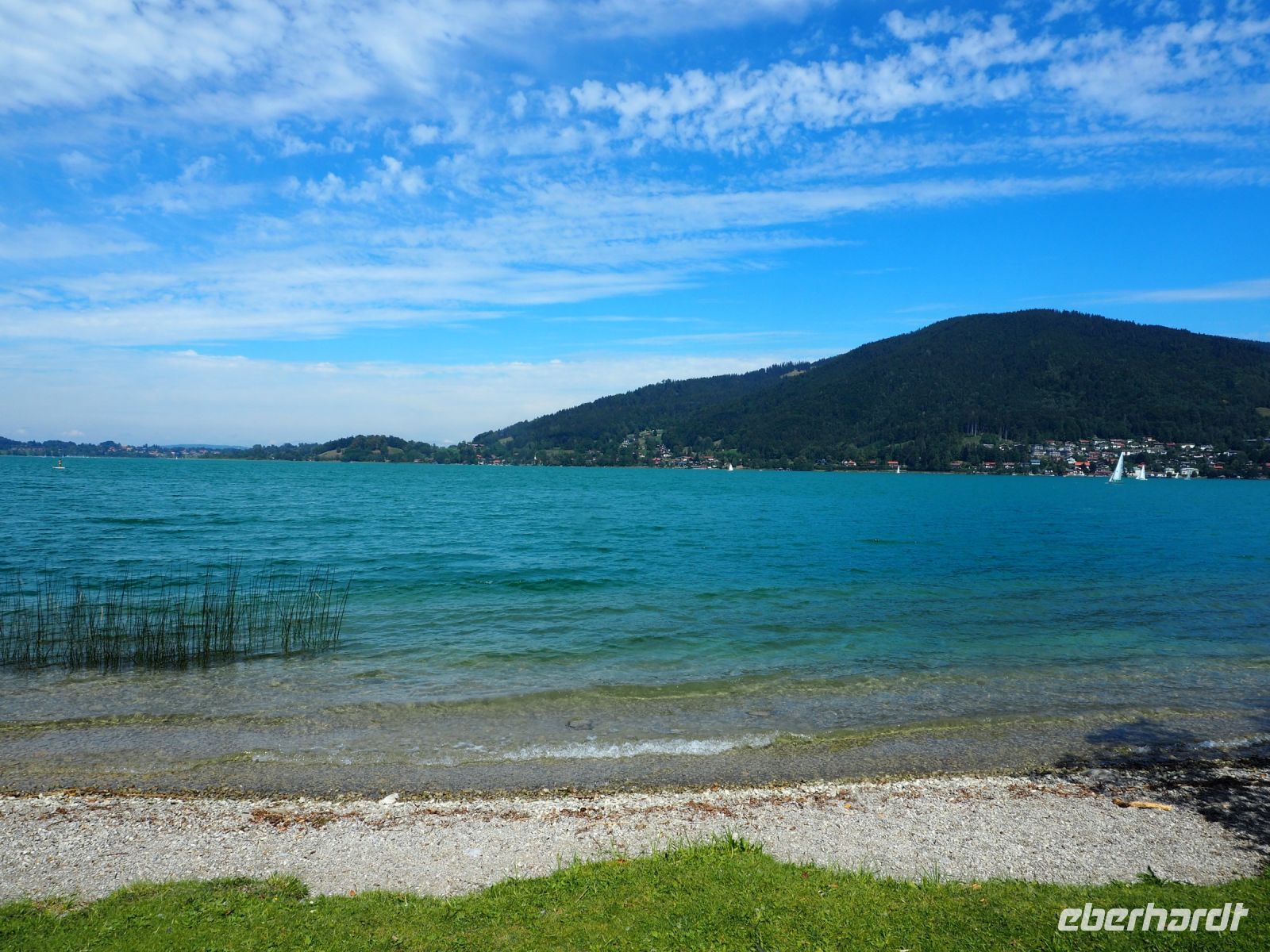 Nachdem wir Gmund hinter uns gelassen hatten, ging es zunächst am See entlang und dann stieg der Weg langsam an. Dadurch dass der idyllische Tegernseer Höhenweg ungefähr 100 m über dem See verläuft, hatte man schöne Ausblicke über den See und hinüber nach Bad Wiessee.