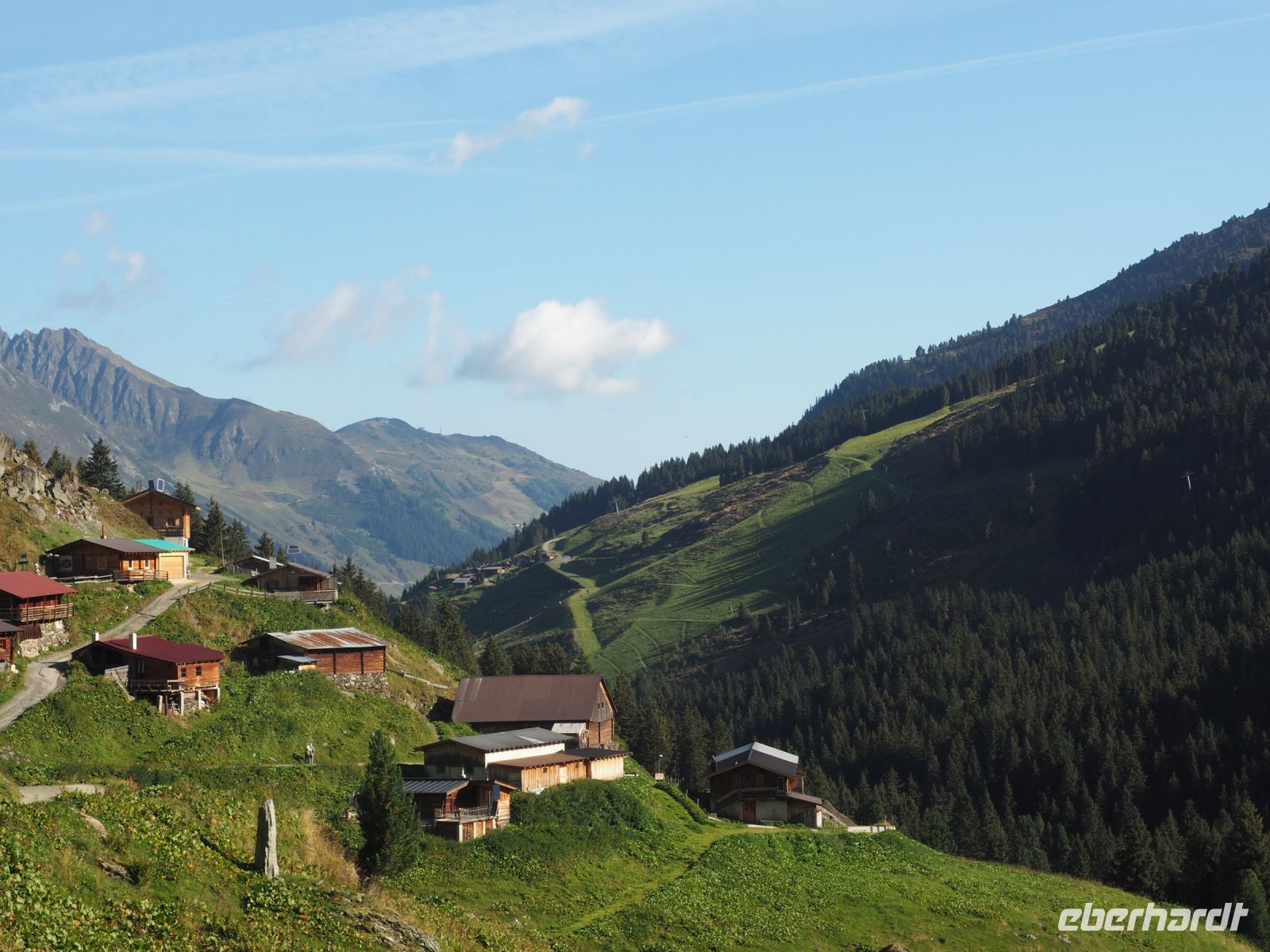 Leider mussten wir dann auch dieses kleine Paradies wieder verlassen, denn es lag noch ein weiter Weg vor uns. Durch Wald und über die Almwiesen der Tuxer Alpen wanderten wir mit kleinen Pausen bis zu unserem Hotel in Hochfügen. Das letzte Wegstück hatte sich hingezogen und so waren alle froh, sich im Wellnessbereich des Hotels Lamark entspannen zu können. Und manch einer gönnte sich auf der Terrasse im Licht der untergehenden Sonne noch ein Gläschen Wein.