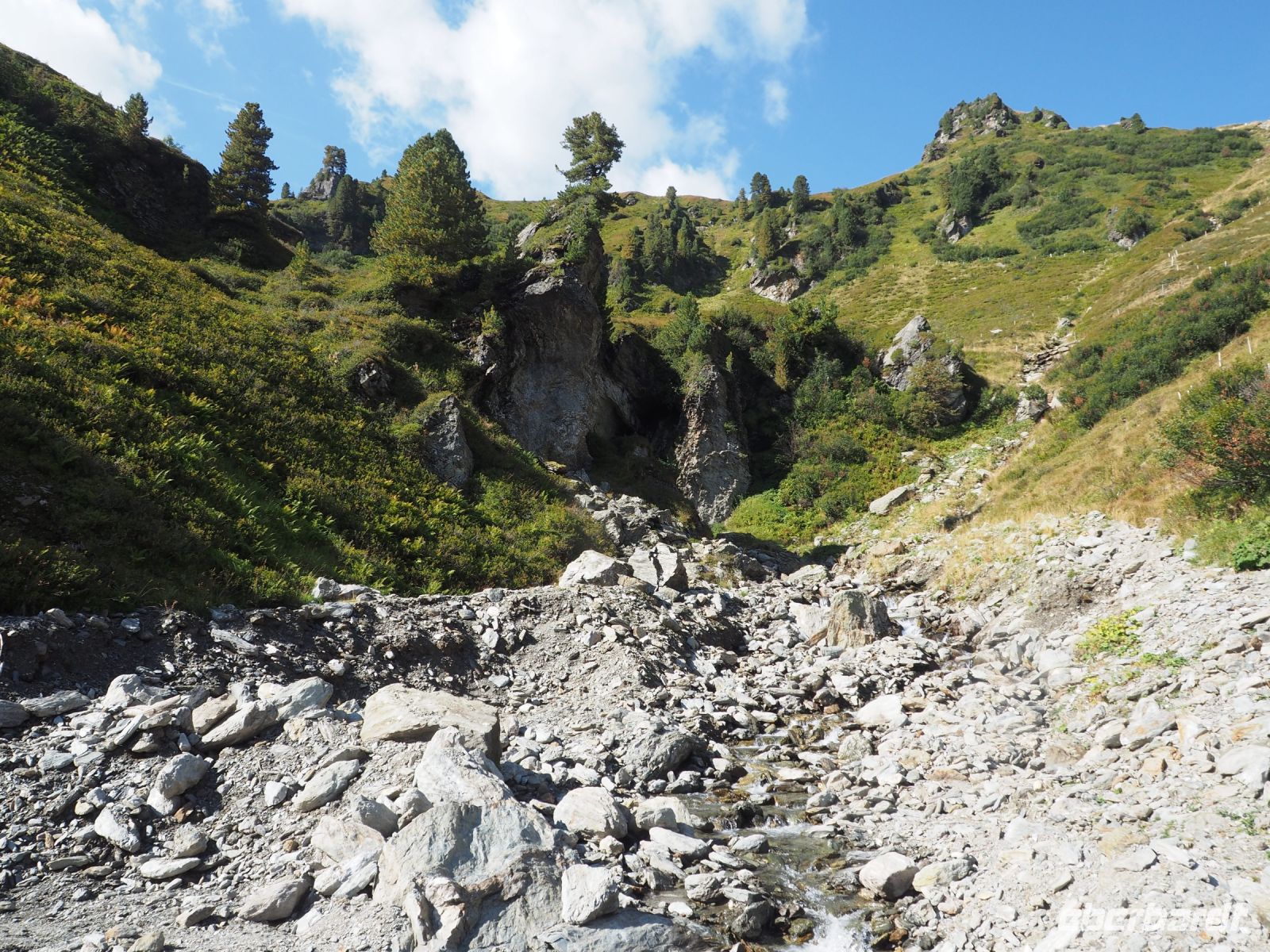 Zunächst ging es noch sehr gemütlich am Ufer des Stausees entlang, der mit einer 131 hohen Staumauer aufwartet. Sanft ansteigend erreichten wir schon bald die Lavitzalm auf 2.095 m Höhe. Die Landschaft war spektakulär. Eine von einem Gletscherbach geschaffene Ebene mit kleinen Gebirgsbächen und Wasserfällen begleitete uns. Auf der Lavitzalm legten wir eine kleine Pause ein, zumal es dort ein sehr interessantes Museum gab, das über Gesteinsschichten am Berg und Bergsteiger informierte.
