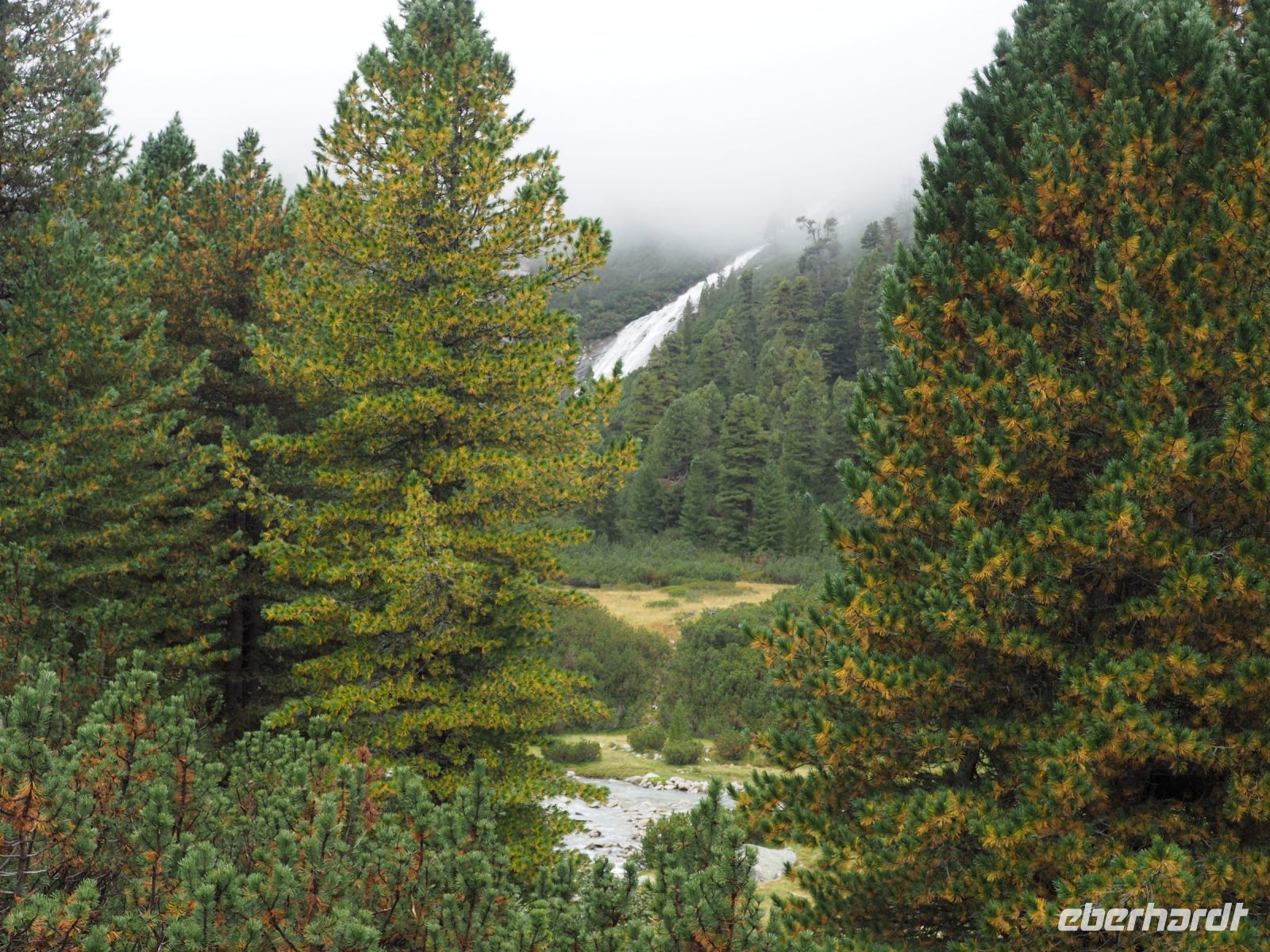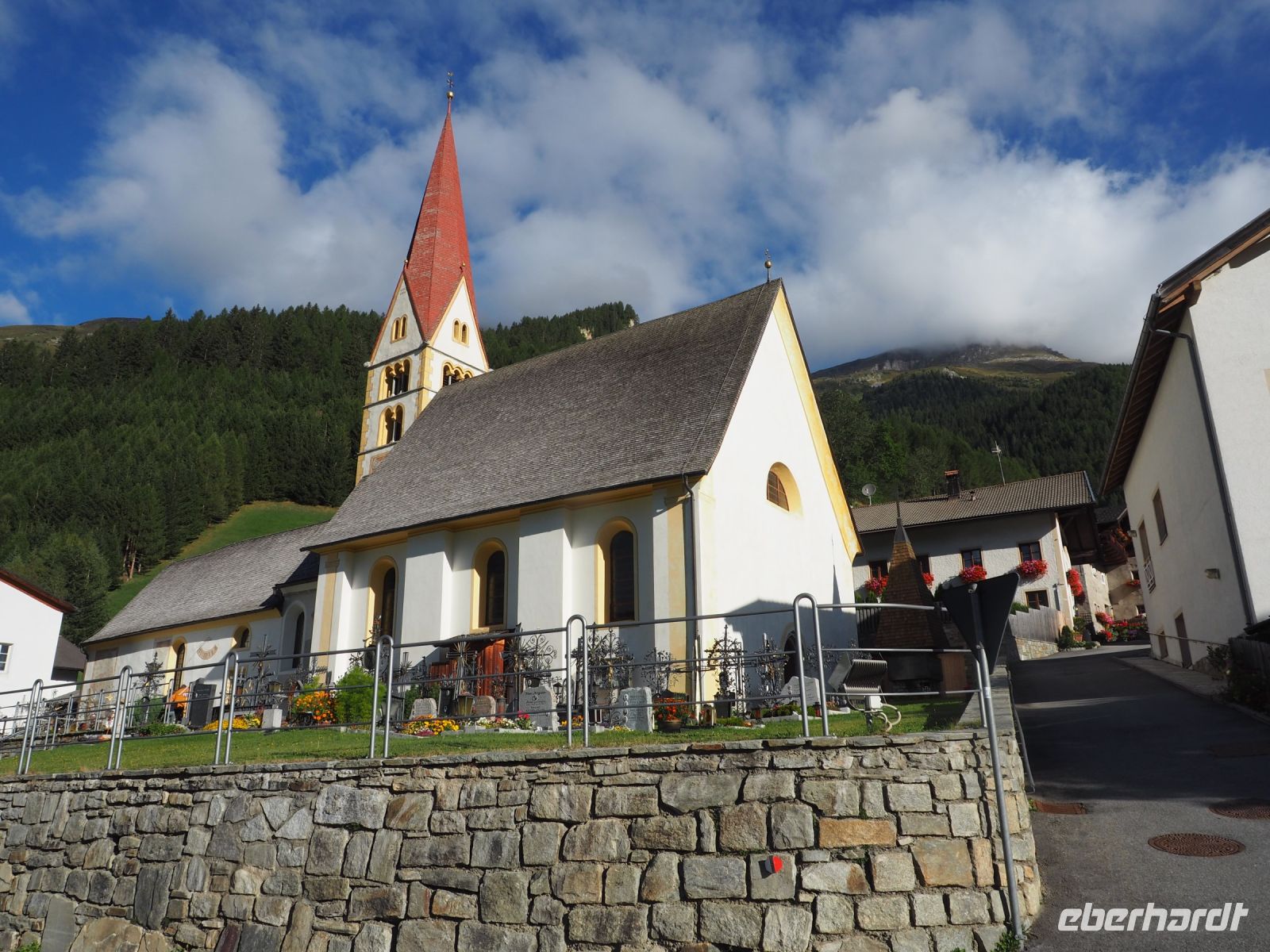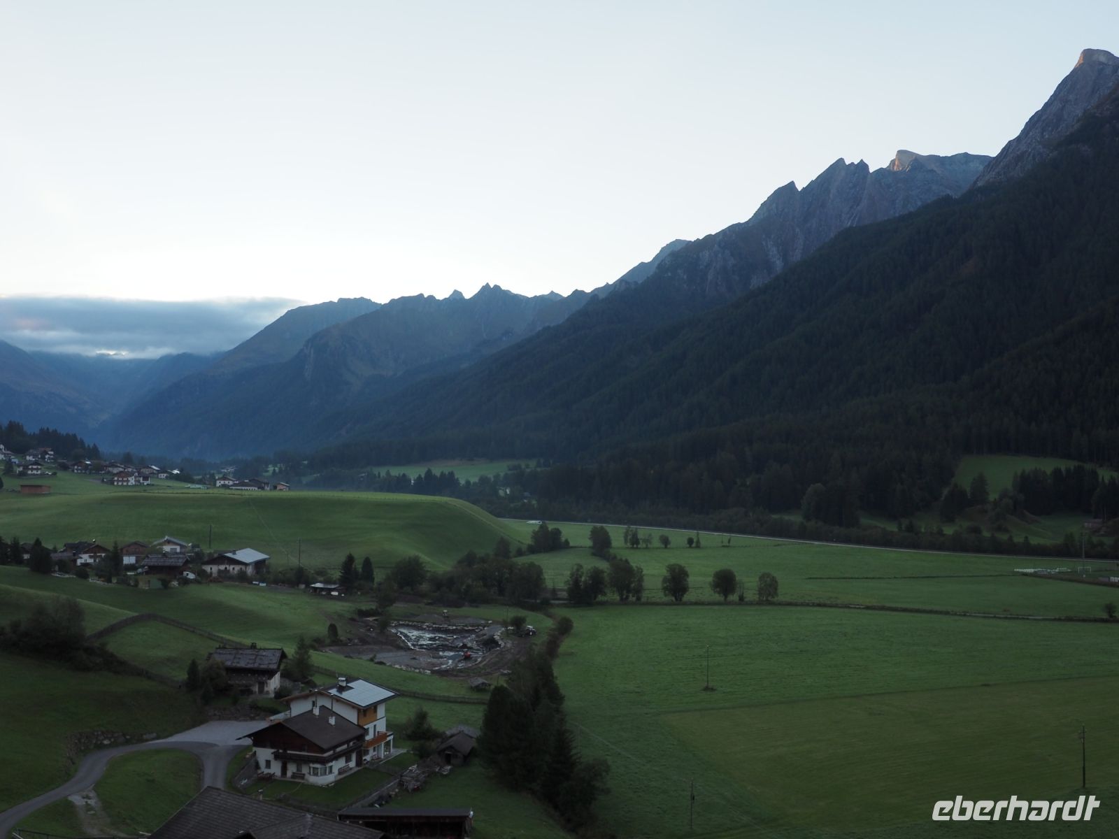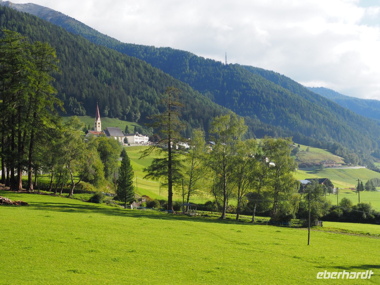 Bei bestem Wetter traten wir unsere letzte Wanderung nach Sterzing an. Ein relativ leichter Weg führte uns nach Afens, wo wir an einer kleinen Kapelle eine Rast einlegten. Teils an der Straße entlang und dann wieder begleitet vom Pfitschbach näherten wir uns langsam Sterzing an. Morgens hatten wir immer noch den Alpenhauptkamm im Blick, später dann zeigten sich schon die Umrisse der Ortschaften im Tal bis hin nach Sterzing.