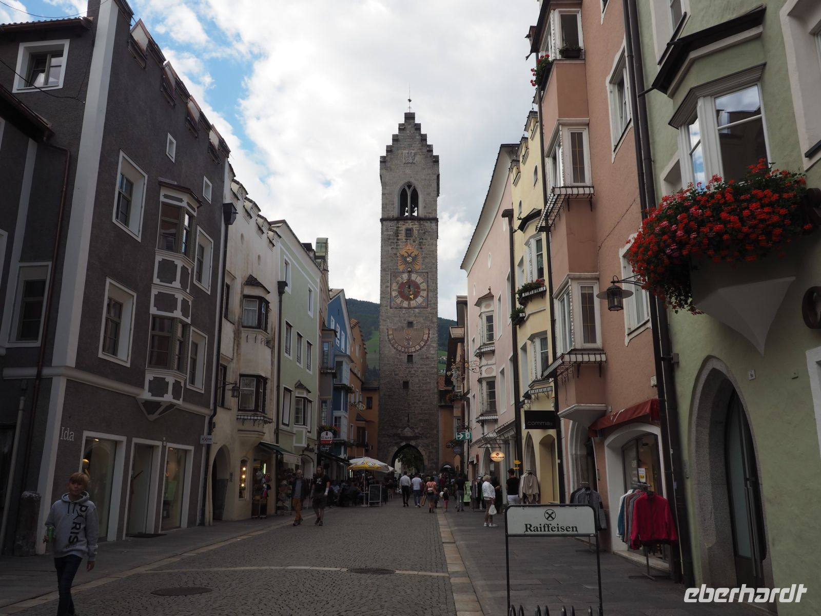 Ein hübsches Städtchen, dieses Sterzing. Ganz typisch sind die Arkaden, in denen man auch bei schlechtem Wetter bummeln oder draußen im Café sitzen kann. Aber heute zum Abschluss unserer Tour war nochmals schönstes Wetter, jedenfalls noch bis zum Abend.