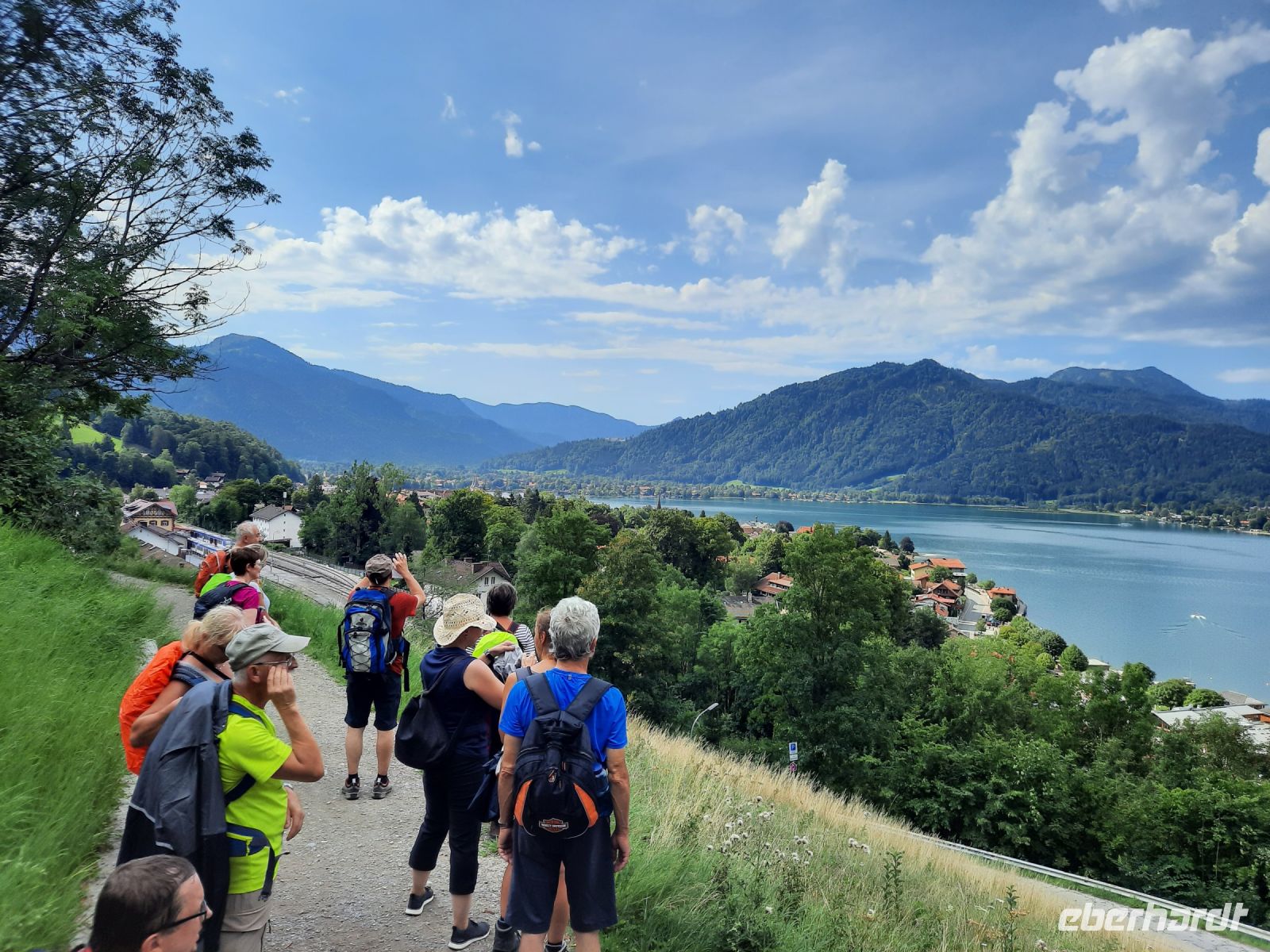 Der perfekte Start für unsere erste Tour war in Gmund am Bahnhof. Stetig schlängelte sich der Panoramaweg, vom See beginnend bergauf. Dieser Wanderweg ermöglichte uns immer wieder reizende Ausblicke auf den See. In leichtem auf und ab erreichten wir die Katholische Pfarrei „ST.Quirinus“ – ein stattlicher Kirchenbau aus dem 11. Jahrhundert. Dort im urigen Braustüberl kehrten wir ein zu einer zünftigen Jause. Mit dem Motorboot fuhren wir entspannt zurück nach Bad Wiessee.