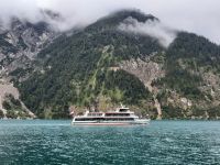 Nach dem Frühstück ging es am Fuß des Karwendel Gebirges, auf dem flachen Wege am Ostufer des Achensees entlang. Da der Regen nicht aufhörte sahen wir nur zeitweise die Spiegelung der Silhouette des Rofangebirges in See. Nach ca. 2 Stunden erreichten wir das Atoll Achensee, es ist die Tourist Information vom gesamten Achensee. Nach einer Pause setzen wir die Wanderung fort durch den beschaulichen Ort Maurach. Im Anschluss nahmen wir den Bus bis Jenbach im Inntal. Die schöne, alte Zilltertal Bahn fuhr uns gemütlich bis Fügen ins Zillertal. Im Hotel Kosis kamen wir in den Genuss eines fantastischen Büffets für regionale Köstlichkeiten von Tirol.