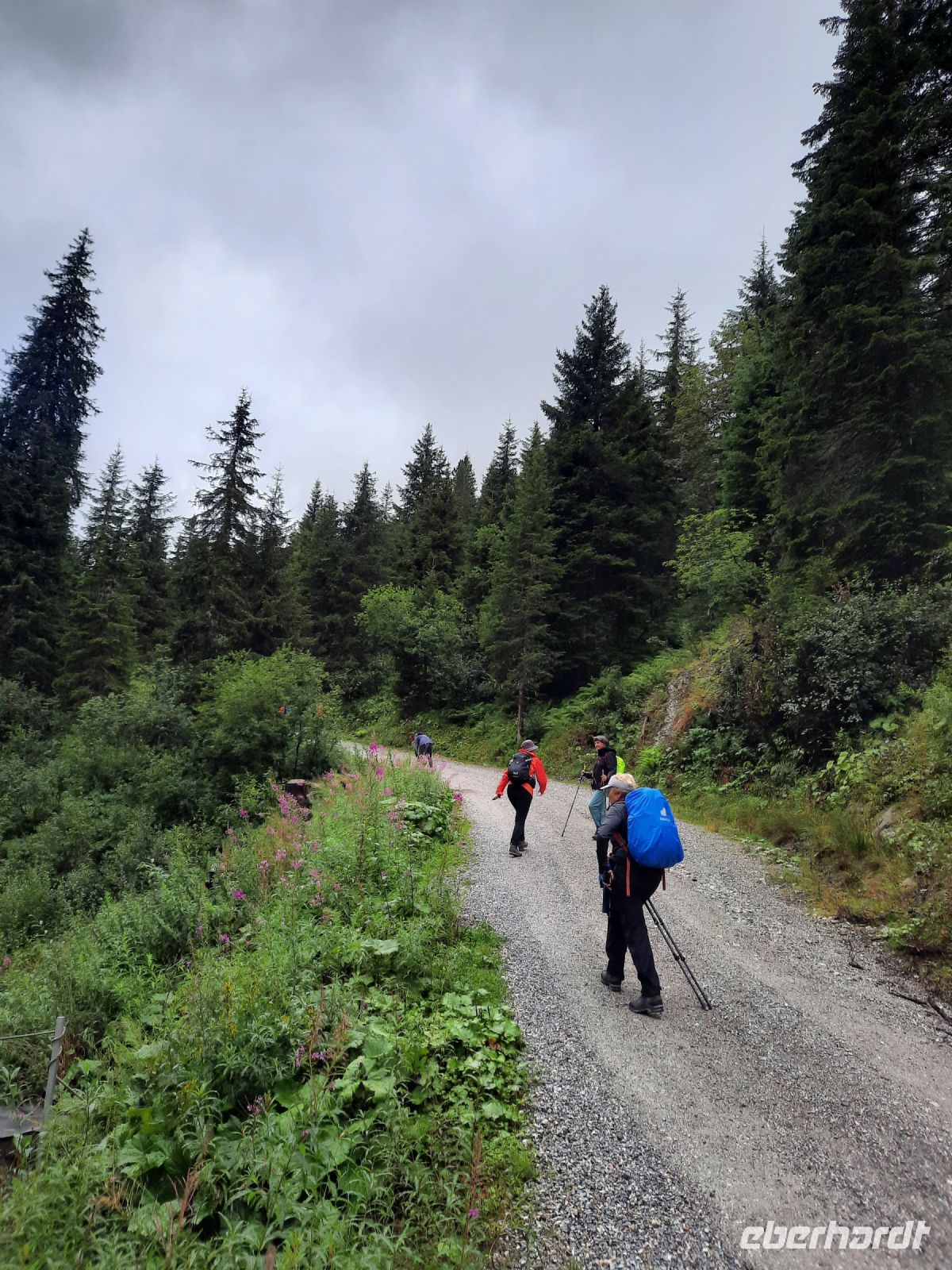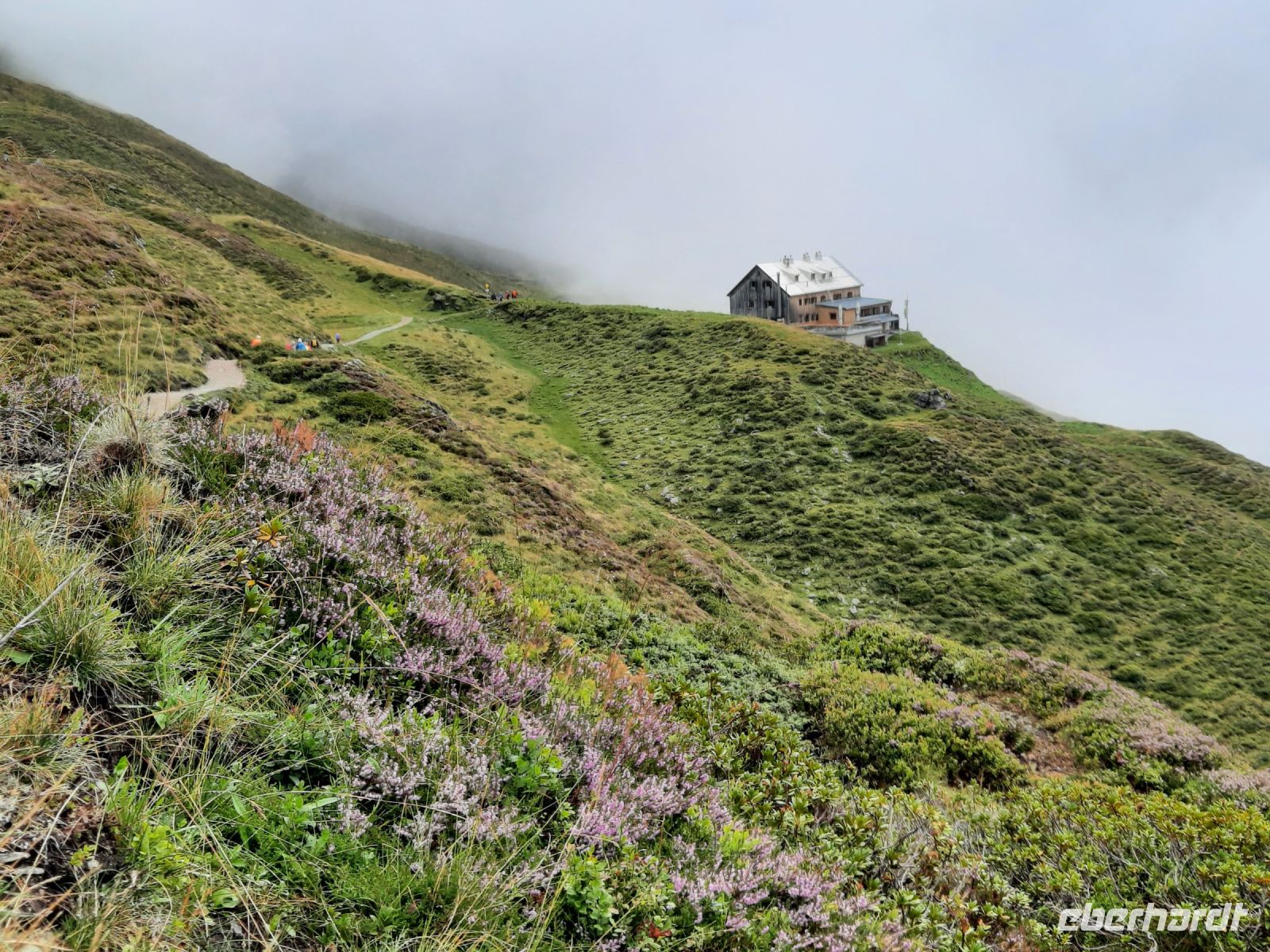 Hochfügen liegt auf 1.480 Höhenmeter. Kein Regen, nur etwas Nebel begleitete uns in den Morgenstunden und so war es nicht zu warm für den ersten Anstieg zur Viertelalm (Hochleger). Von dort aus war es noch eine reichliche Stunde bis zur Rastkogelhütte. Der wunderschöne Höhenweg, mit verschiedenen Bachläufen und die unzähligen Gipfel der Zillertaler Alpen, boten uns ein abwechslungsreiches Spektrum. Der gelbe Bach-Steinbrech in Kombination mit der lila blühenden Heide am Wasserfall, bildete eine farbliche Harmonie. Für Körper – Geist- und Seele ist es einfach eine Wohltat, diese Schönheiten der Natur zu bestaunen! Gegen Mittag erreichten wir die Rastkogelhütte auf 2.117 Höhenmeter. Somit waren wir 637 Höhenmeter gewandert, die uns die eine oder andere Schweißperle auf die Stirn zauberte. Auf zur wohlverdienten Pause und uns schmeckte das Bier / Radler besonders gut. Der Abstieg über den Gipfel Arbiskopf war nicht möglich, da sich die Gipfel in dichtem Nebel befanden. Nach ca. 1,5 Stunden erreichten wir die Jausenstation „Melchboden“ . Dort an der Zillertal Höhenstraße wurden wir mit dem Taxi abgeholt und nach Mayrhofen chauffiert. In Mayrhofen im Restaurant „Berghof“ beendeten wir den erlebnisreichen Tag mit Zillertaler Köstlichkeiten.