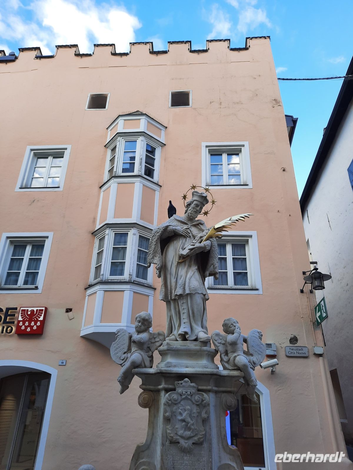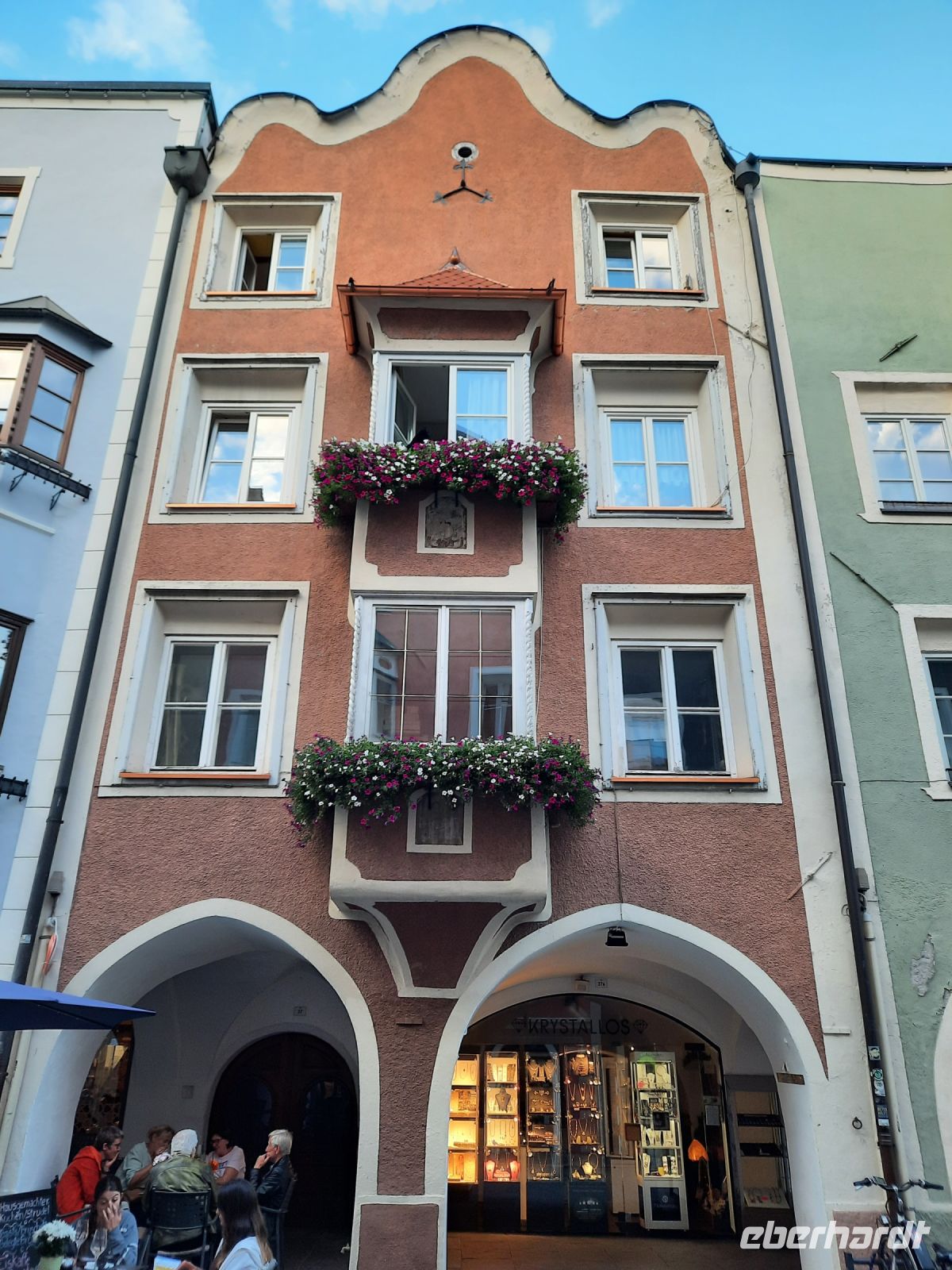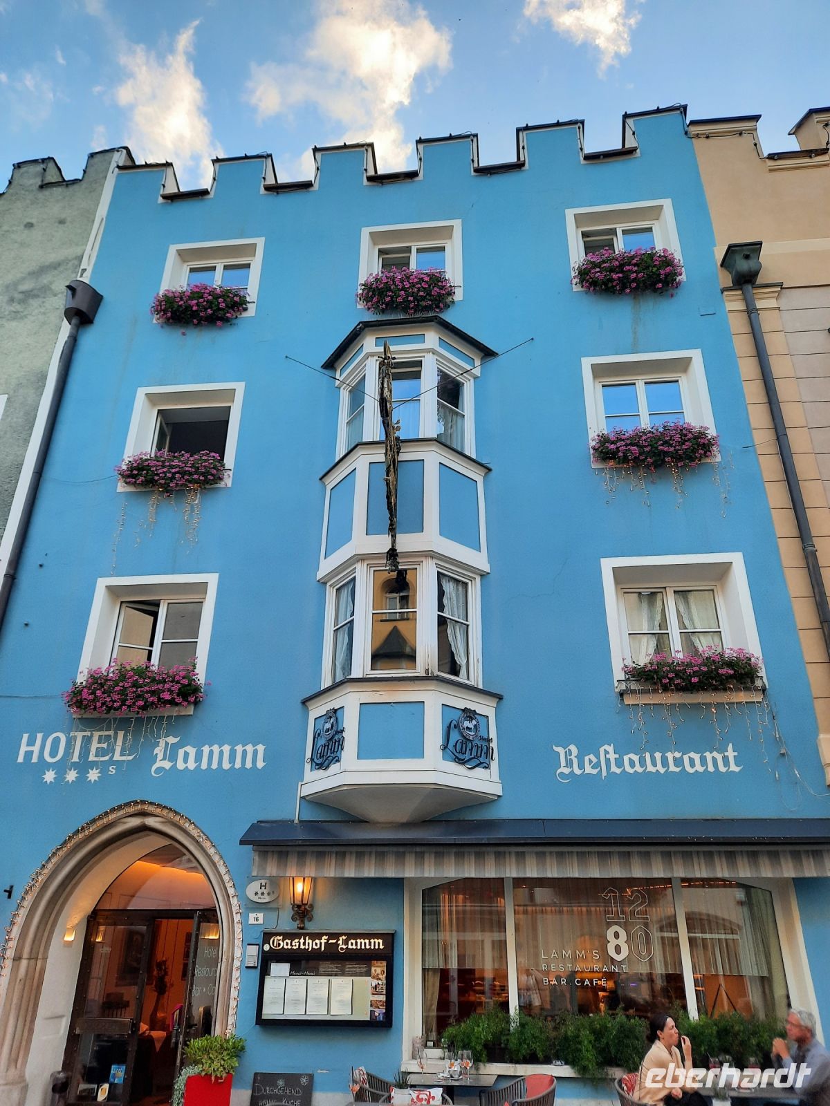Auf zu unserer letzten Etappe, die direkt hinter dem Hotel „Kranebitt“ begann. Zuerst passierten wir einen Steinbruch. Weitere kleine Ortschaften folgten wie: Ried und Afens mit einer kleinen Kapelle. Das Pfitscher Tal schmiegt sich harmonisch unterhalb der Olperer Gruppe ein, die wiederum zu den Tuxer Alpen zählt. Meistens führte der Weg am Pfitscher Bach entlang, bis wir Prati (Wiesen) erreichten. Von dort aus war es nur noch ½ Stunde bis Flains (Flaines). Geschafft, wir meisterten den Abstieg von 650 Höhenmetern und blickten von einer Aussichtsplattform auf die Alpinstadt Sterzing. Der letzte Stempel im Alpenpass wurde gesetzt und einen Aperol gab es am 12 er Turm in Sterzing. Nun stand dem Bummel in der beliebten Fußgänger Zone von Sterzing nichts mehr im Wege und Dolce Vita wurde in vollen Zügen genossen! Am Ende der Fußgängerzone befand sich unser rustikal – schickes Boutique Hotel Steindl’s mit Bergblick. Unser gemeinsames Abendessen im Kolping schmeckte hervorragend und genüsslich ließen wir den Abend ausklingen.