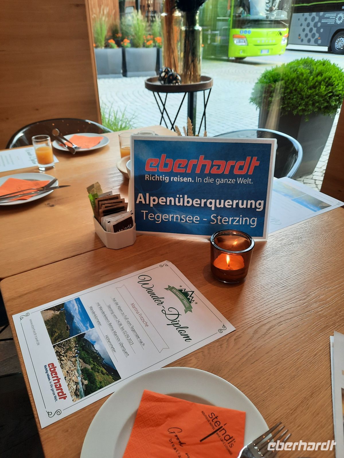Nach einem reichlichen, fantastischen Frühstück und die Verteilung der Wanderdiplome, hieß es leider Abschied nehmen von Südtirol und ein Bus brachte uns gegen Mittag nach Steinach am Brenner. Mit viel Freude im Gepäck und gewanderten 115 km fuhren wir zügig in Richtung Heimat. Ich würde mich sehr freuen, Euch bei der einen oder anderen Wanderung wieder zu treffen, Eure Betina