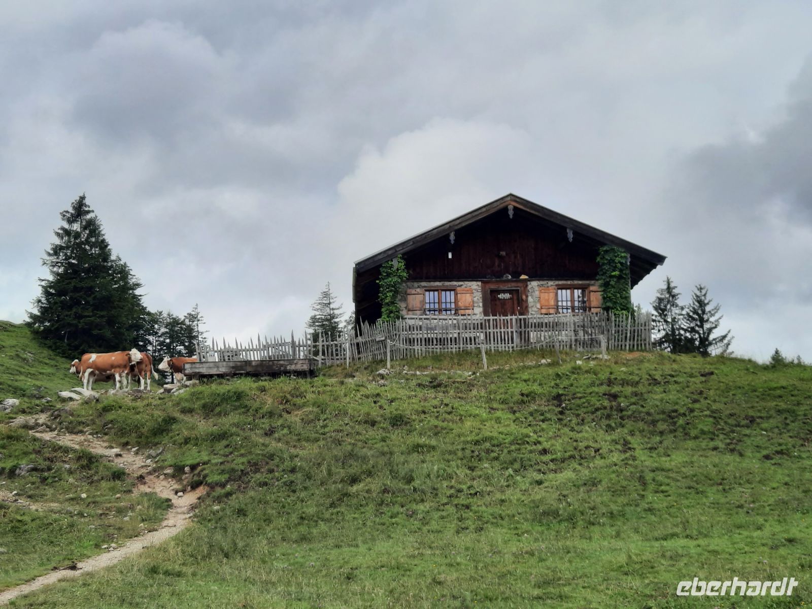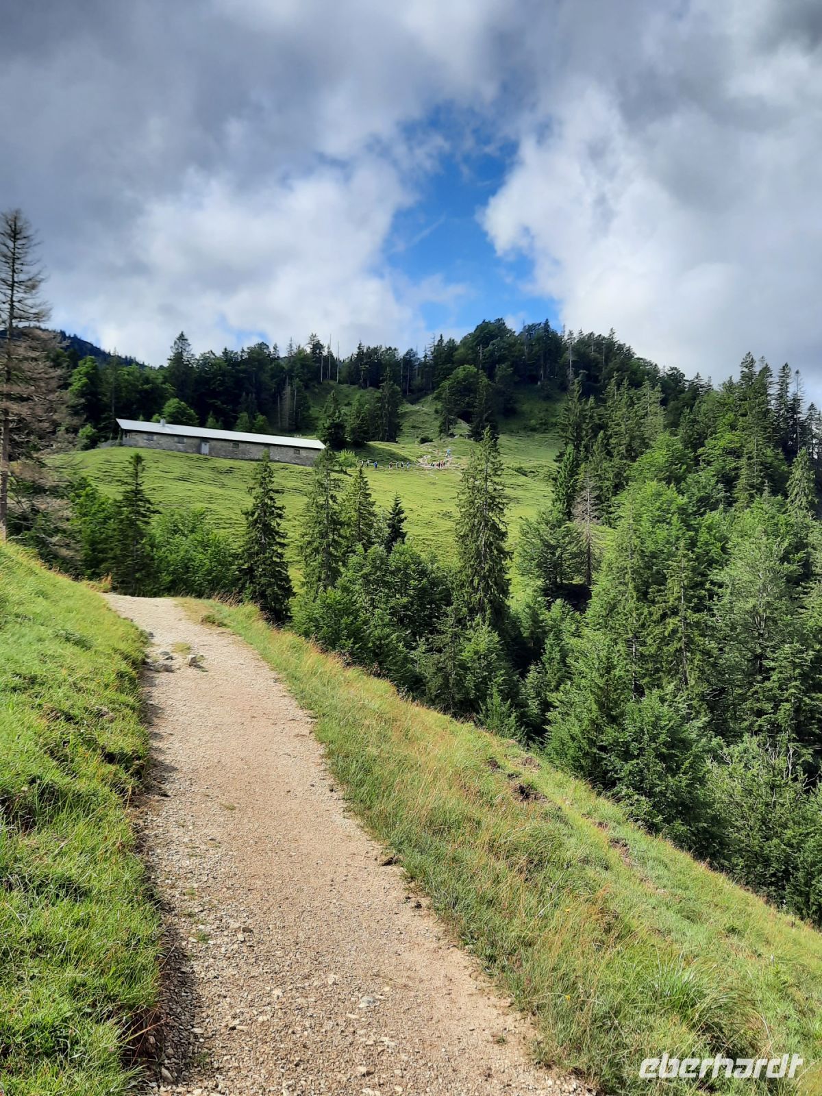 Vom Siebenhütten Parkplatz in der Nähe von Wildbad Kreuth startete unsere zweite Tour. Durch einen Buchenmischwald ging es stetig bergauf bis zur Goaßalm auf 1.1113 m (erbaut 1816). Weitere 500 Höhenmeter folgten, bis wir den Sattel vom Schildenstein erreichten. Die spärlich markierte deutsch-österreichische Grenze erreichten wir gegen Mittag. Im anschließenden offenen Almgelände wanderten wir zur Blaubergalm auf 1.540 m. Ein urig bewirtschafteter Bauernhof, nur mit regionalen Produkten, lud zu einer Verschnaufspause ein. Frisch gestärkt ging es weiter durch einen Nadelwald auf einer breiten Forststraße hinunter zum Klammbach. Dieser führte uns nach 2,5 Stunden nach Achenwald – einem Ortsteil von Achenkirch. Dort holte uns ein Taxi ab und fuhr uns zum Fischerwirt nach Achenkirch. Eine anstrengende Tour war geschafft und wir erholten uns vorzüglich im Deluxe Hotel Fischerwirt am Achensee.