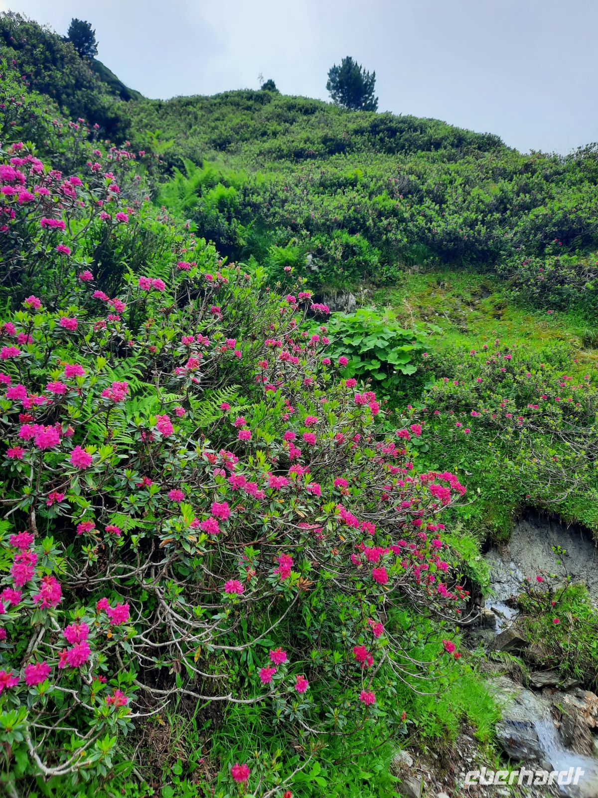 Hochfügen liegt auf 1.480 Höhenmeter. Kein Regen, nur etwas Nebel begleitete uns in den Morgenstunden und so war es nicht zu warm für den ersten Anstieg zur Viertelalm (Hochleger). Von dort aus war es noch eine reichliche Stunde bis zur Rastkogelhütte. Der wunderschöne Höhenweg, mit verschiedenen Bachläufen und die unzähligen Gipfel der Zillertaler Alpen, boten uns ein abwechslungsreiches Spektrum. Der gelbe Bach-Steinbrech in Kombination mit der lila blühenden Heide am Wasserfall, bildete eine farbliche Harmonie. Für Körper – Geist- und Seele ist es einfach eine Wohltat, diese Schönheiten der Natur zu bestaunen! Gegen Mittag erreichten wir die Rastkogelhütte auf 2.117 Höhenmeter. Somit waren wir 637 Höhenmeter gewandert, die uns die eine oder andere Schweißperle auf die Stirn zauberte. Auf zur wohlverdienten Pause und uns schmeckte das Bier / Radler besonders gut. Der Abstieg über den Gipfel Arbiskopf war nicht möglich, da sich die Gipfel in dichtem Nebel befanden. Wir nahmen einen Pfad, der sich harmonisch durch Alpenrosen und niedrig wachsende Kiefern schlängelte. Nach ca. 1,5 Stunden erreichten wir die Jausenstation „Melchboden“. Dort an der Zillertal Höhenstraße wurden wir mit dem Taxi abgeholt und nach Mayrhofen chauffiert. In Mayrhofen im Restaurant „Berghof“ beendeten wir den erlebnisreichen Tag mit Zillertaler Köstlichkeiten.