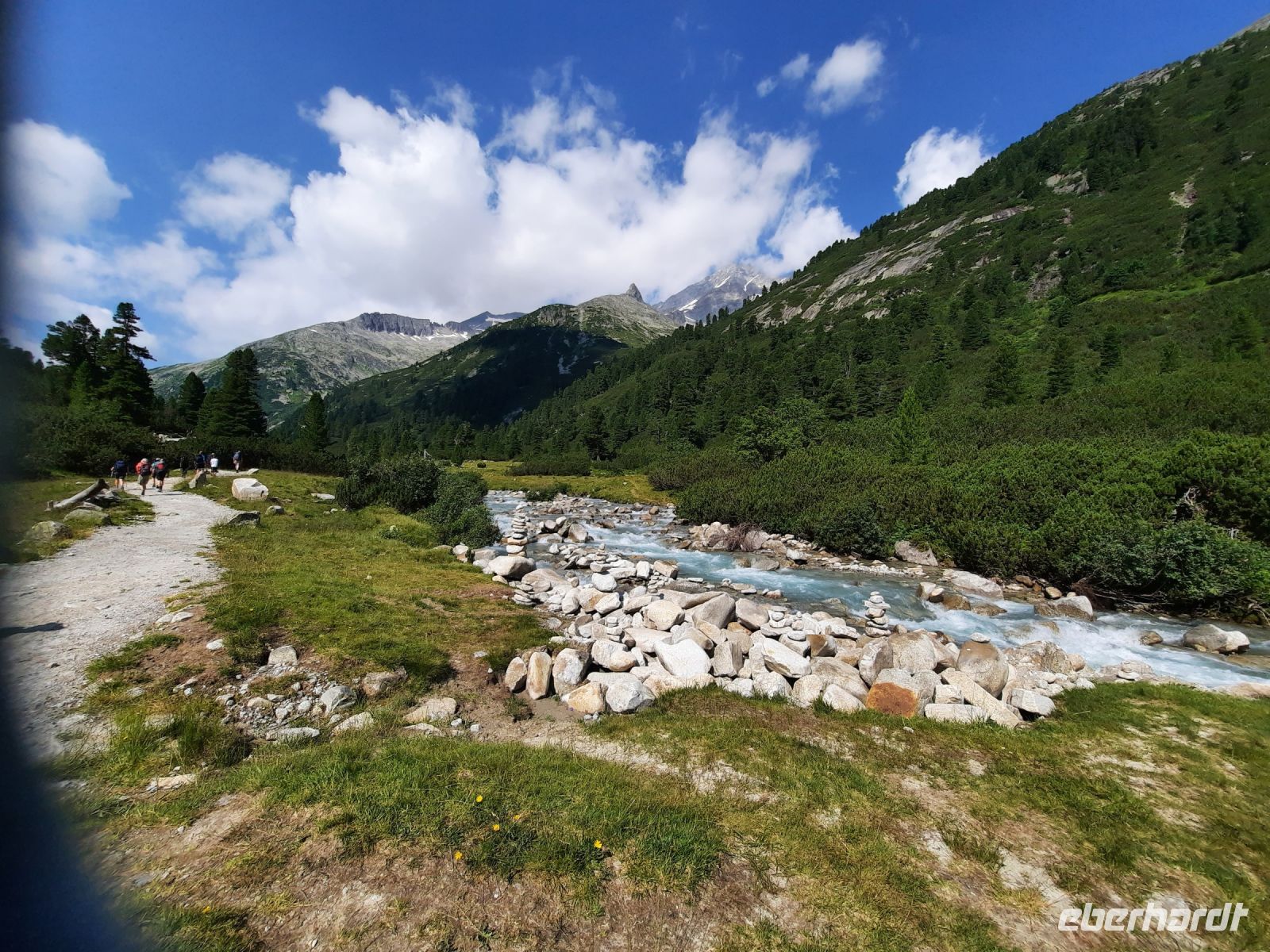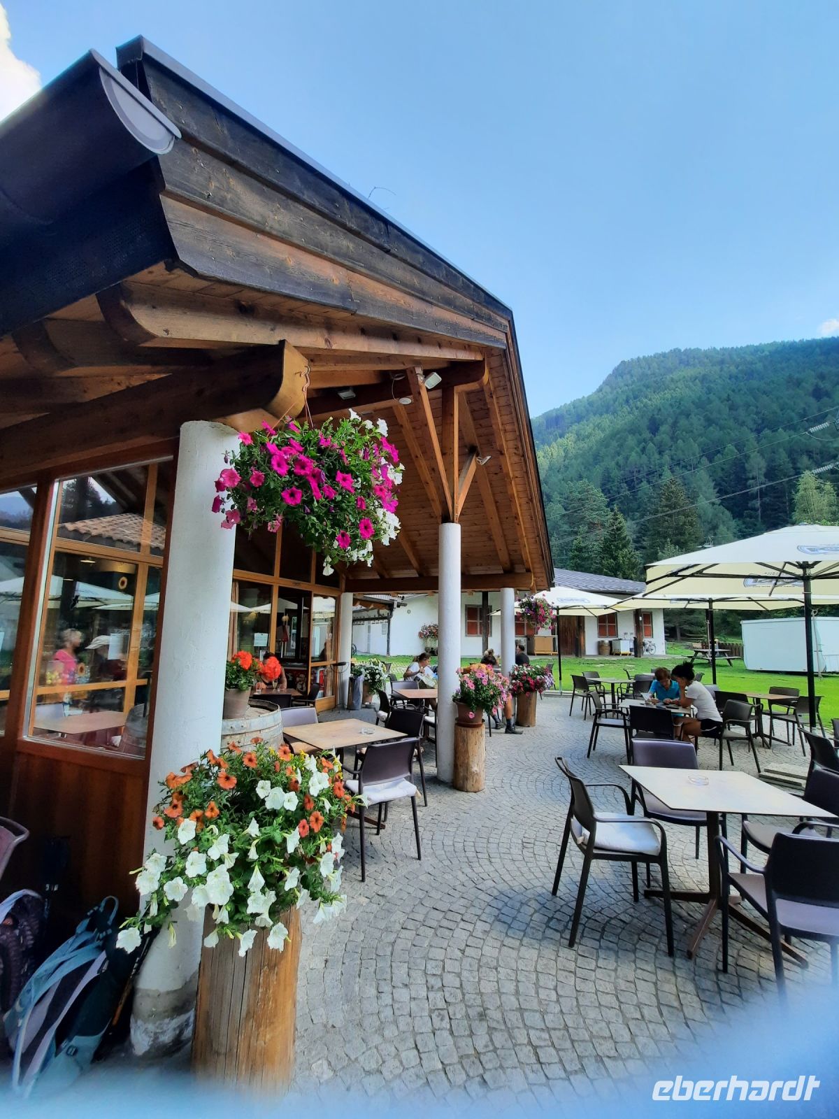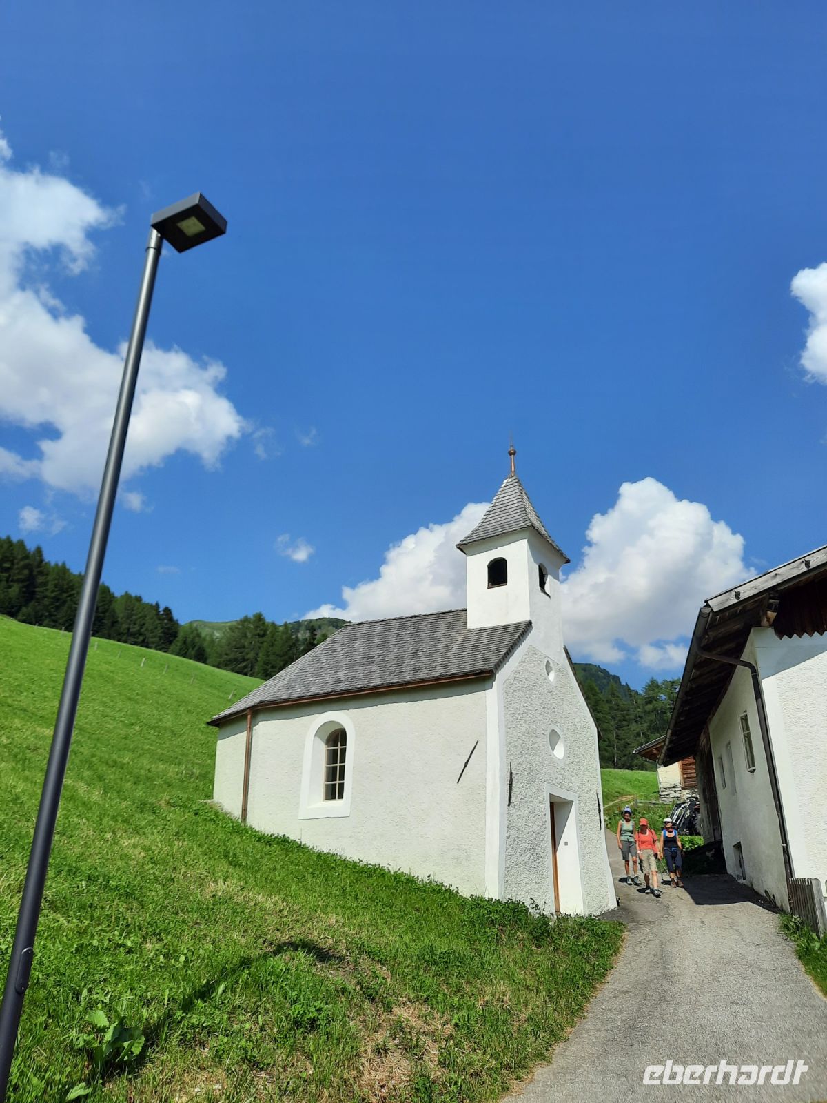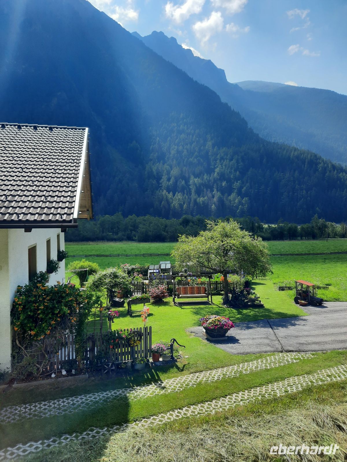 Auf zu unserer letzten Etappe, die direkt hinter dem Hotel „Kranebitt“ begann. Zuerst passierten wir Kematen, eine kleine verträumte Ortschaft. Es folgte ein Steinbruch und ein schattiger Mischwald. Weitere kleine Ortschaften folgten wie: Ried und Afens mit einer kleinen Kapelle. Da die starken Gewitter er letzten Tage den Wanderweg versperrten, mussten wir ca. 1 Std. eine Umgehungsstraße nutzen. Das Pfitscher Tal schmiegt sich harmonisch unterhalb der Olperer Gruppe ein, die wiederum zu den Tuxer Alpen zählt. Meistens führte der Weg am Pfitscher Bach entlang, bis wir Prati (Wiesen) erreichten. Von dort aus war es nur noch 1 Stunde bis Sterzing.