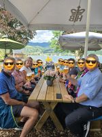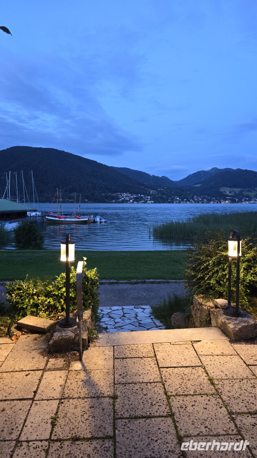 Trotz der Wetterkapriolen entschloss sich ein Großteil der Gruppe, nach der langen Busfahrt einen Spaziergang zu wagen. Belohnt wurden wir mit strahlendem Sonnenschein und einem Tisch im Biergarten. Bei einem kühlen Getränk genossen wir den wunderschönen Ausblick auf den Tegernsee und nutzten die Gelegenheit, uns schon ein wenig besser kennenzulernen.