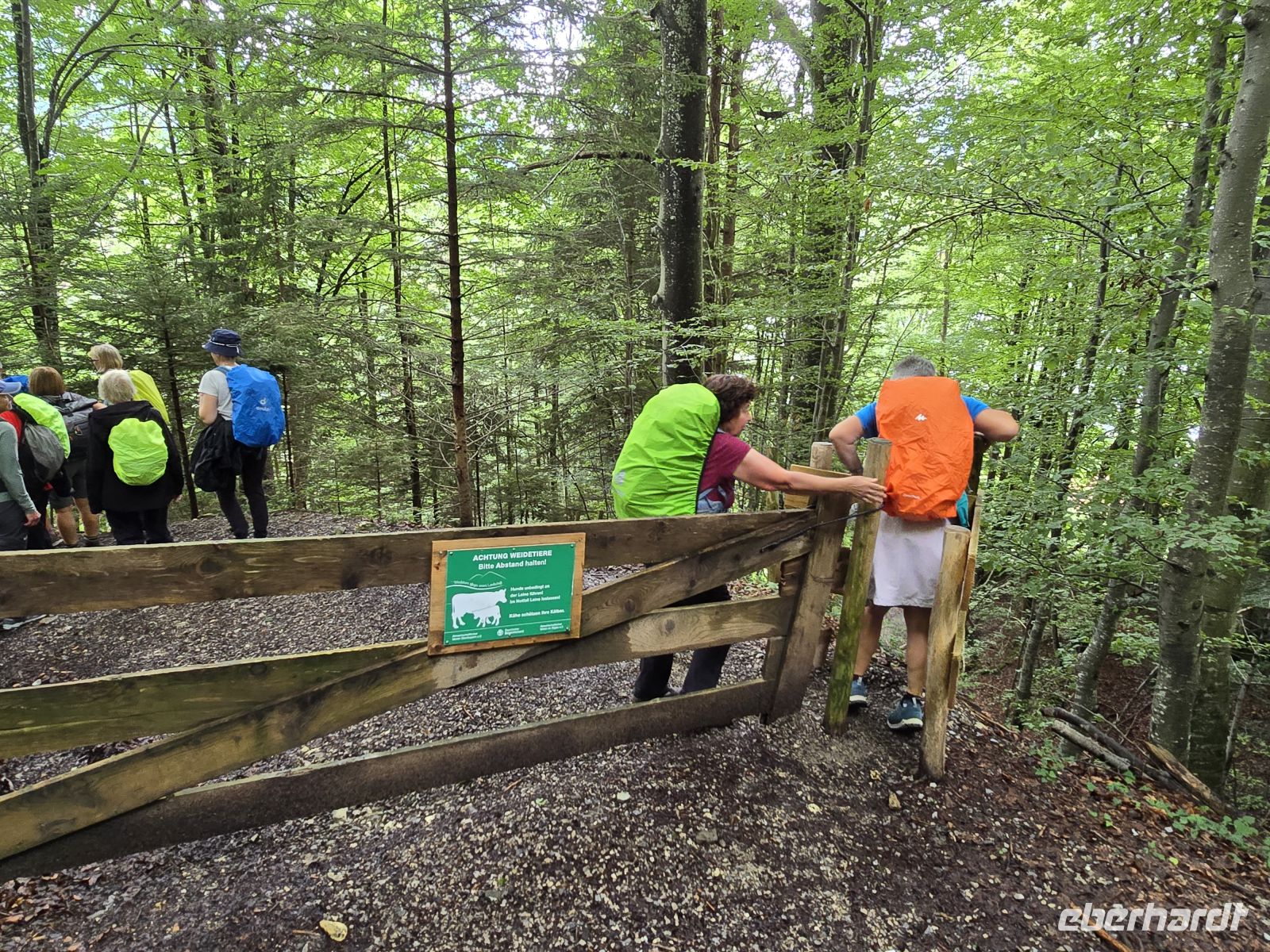 Heute hieß es Abschied nehmen vom Tegernsee. Frisch gestärkt nach einem wieder reichhaltigen Frühstück, begann heute die erste anspruchsvolle Etappe. Mit Taxis wurden wir in ca. 15 Minuten nach Wildbad Kreuth gebracht. Hier startete unsere Wanderung bei strömendem Regen, welcher uns aber die gute Laune und Vorfreude nicht verderben konnte. Nach und nach verstummten die Gespräche, der Aufstieg durch Wälder, über Weiden und natürlich über Stock und Stein kostete uns allen viel Kraft. Durch den Regen schwitzten wir doppelt so viel unter unseren Regenjacken. Spaßeshalber nannten wir diesen Tag den Wackentag der Alpen. Schlamm, viel Matsch und als Musik das Glockengeläut der Kühe, aber auch wundervolle kleine Wasserfälle säumten unseren Weg. Kurz vor der Blaubergalm überquerten wir die Grenze zu Österreich. Auf 1540 Metern Höhe erreichten wir schließlich komplett durchnässt die Blaubergalm und genossen in gemütlicher Runde ein leckeres Mittagessen. Frisch gestärkt und vor allem umgezogen und mit nun wieder trockener Kleidung, stiegen wir noch mal kurz hoch zum Gipfelkreuz und machten uns dann auf den Abstieg zum Klammbach ins Tal. Immer entlang des Bachs wanderten wir nach Achenwald, wo uns unser bestellter Transfer nach Achenkirch in unser heutiges Hotel, den Fischerwirt, erwartete. Auch hier konnten wir uns wieder in der Sauna unsere müden Muskeln durchwärmen lassen.