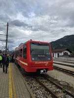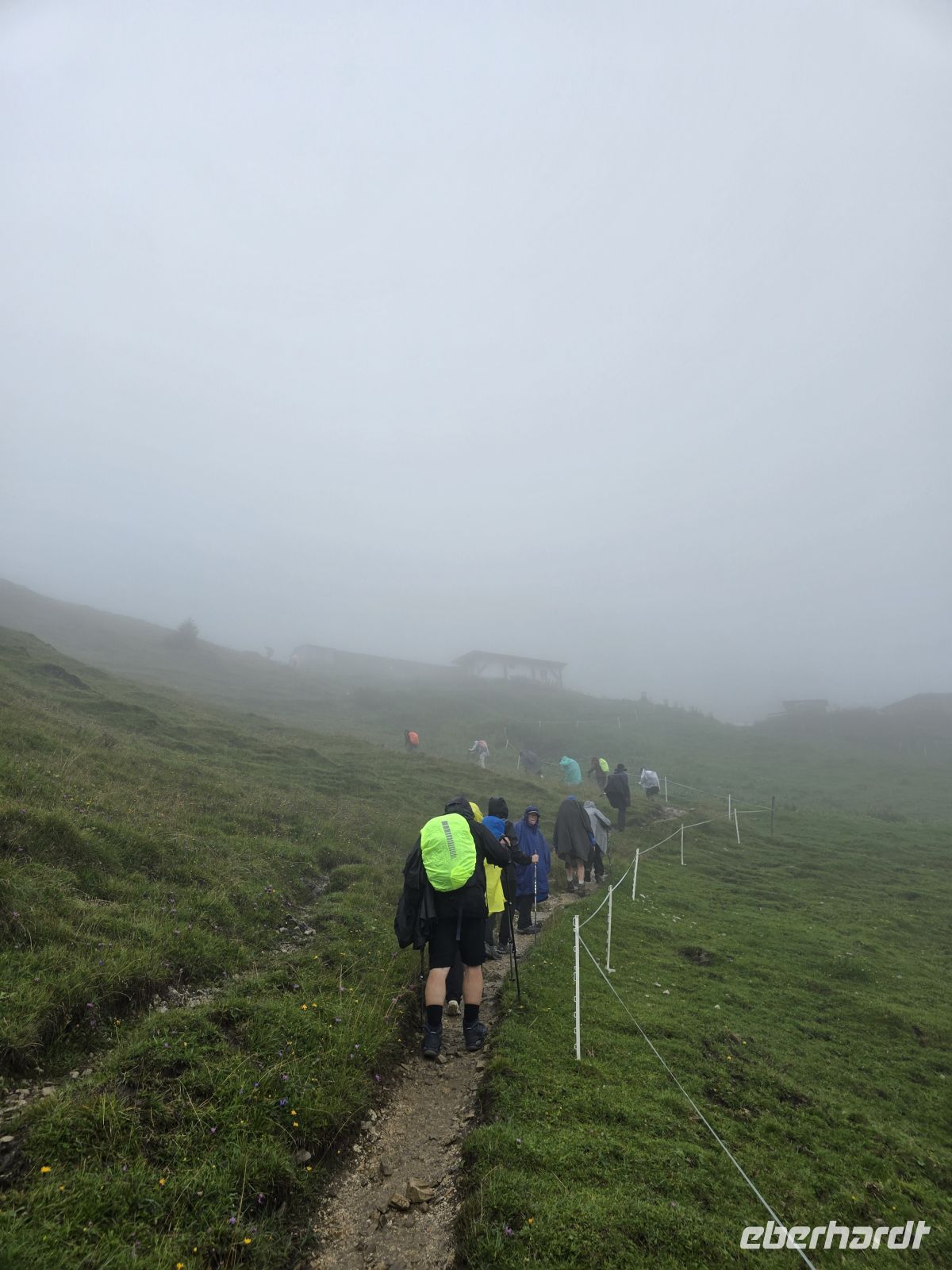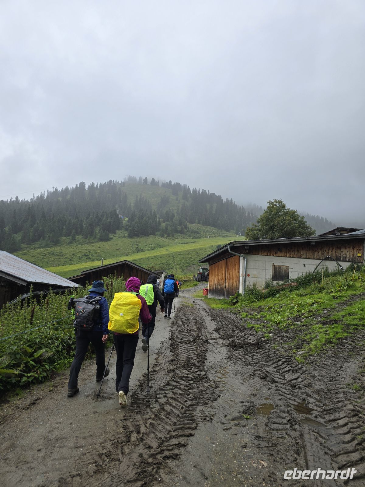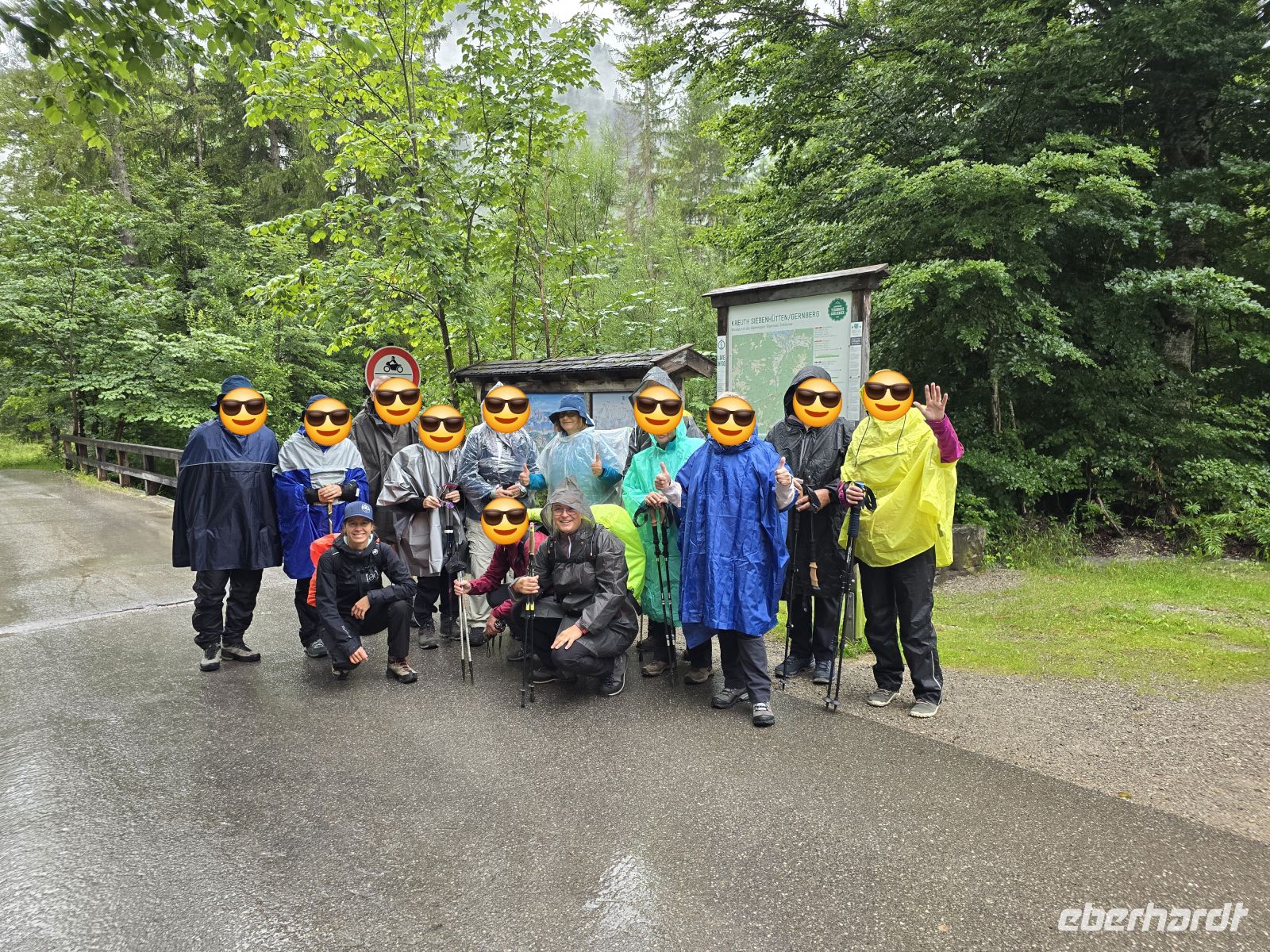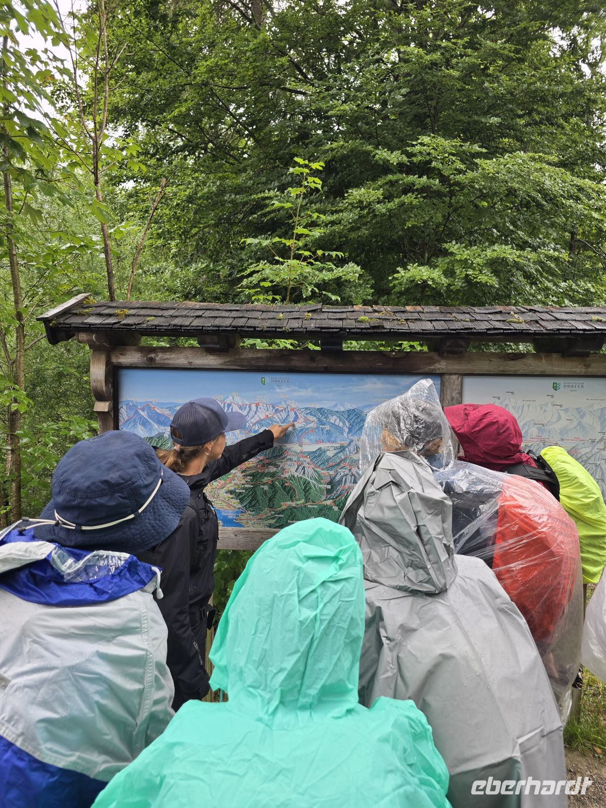 Frisch gestärkt vom reichhaltigen Frühstück lernten wir heute Morgen unsere Bergführerin Laura kennen. Nach einer kurzen Vorstellung liefen wir – wie nicht anders zu erwarten – erstmal durch den Regen zur nahegelegenen Bushaltestelle und fuhren mit dem öffentlichen Nahverkehr nach Gmund.
